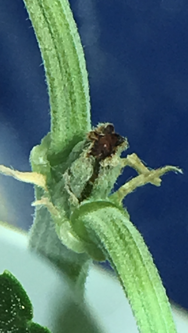 WELL it was 95 outside yesterday and the A/C went out. To keep the temperature low I raised the light in hindsight this wasn't a good idea, I probably should have just turned the light off. Acid Dough "A" reached for the light and now has about a 3" stem below the "water leaves". Is there anything I can do besides LST?
