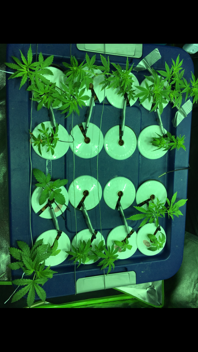 Click image for larger version  Name:	IMG_0156.PNG Views:	1 Size:	924.7 KB ID:	105197 Got the three feminized Acid Dough seeds on Wednesday (6/14/17). Placed in Ph'd rock wool blocks in a humidity dome. First one popped out on 6/15/17 and was placed under the cfls with the vegging bagseed. A few clones were taken from 4 of the healthiest of the bagseed (still not showing sex 3 weeks since germination) to fill the 7 empty slots in the flower chamber. As soon as the clones root I will change to the LED's (12/12) and put the acid dough in the veg chamber so the clones won't have time get topped. All the original bagseed has been topped and defoliated to give two colas. The plan is to manifold the acid dough while I let the bagseed flower.
