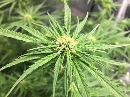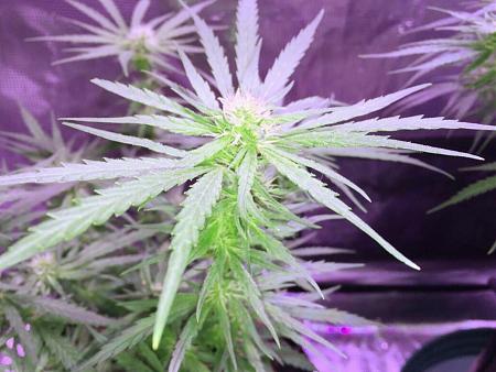 During her veg period, her leaves were so big and fat and now they all got skinny and veiny too, but I can't be sure if that's the LED lights playing my eyes or what. Need eyes!!