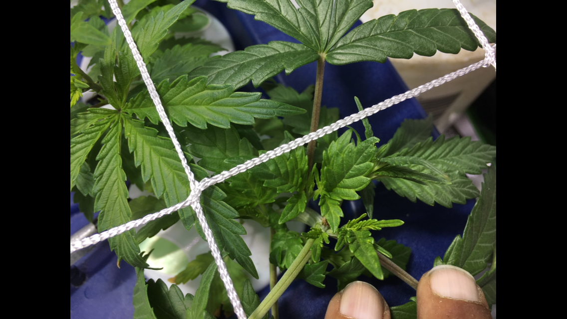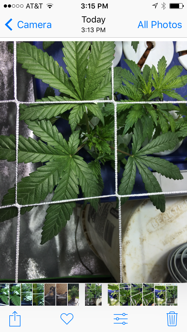 Once Elvis 🕺 began to grow she lost apical dominance (hope I got that right) after the second node. Then she began creating odd leaves on one side (5,7,9 fingers) and even leaves (8,10) on the other. After about 6 nodes I super cropped her to encourage side growth. She responded be growing 2 sprouts (to be colas) from each node!!!!!!