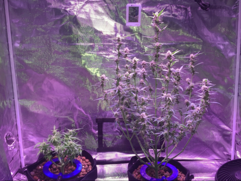 So, it's been almost like 1 month and 2 weeks for these 2 Purple Ryder Autos since Germination. They are seriously starting to look like different strains. The feed out of the same reservoir, at the same time, in the same tent; pretty much all conditions are the same. But looks at them now.