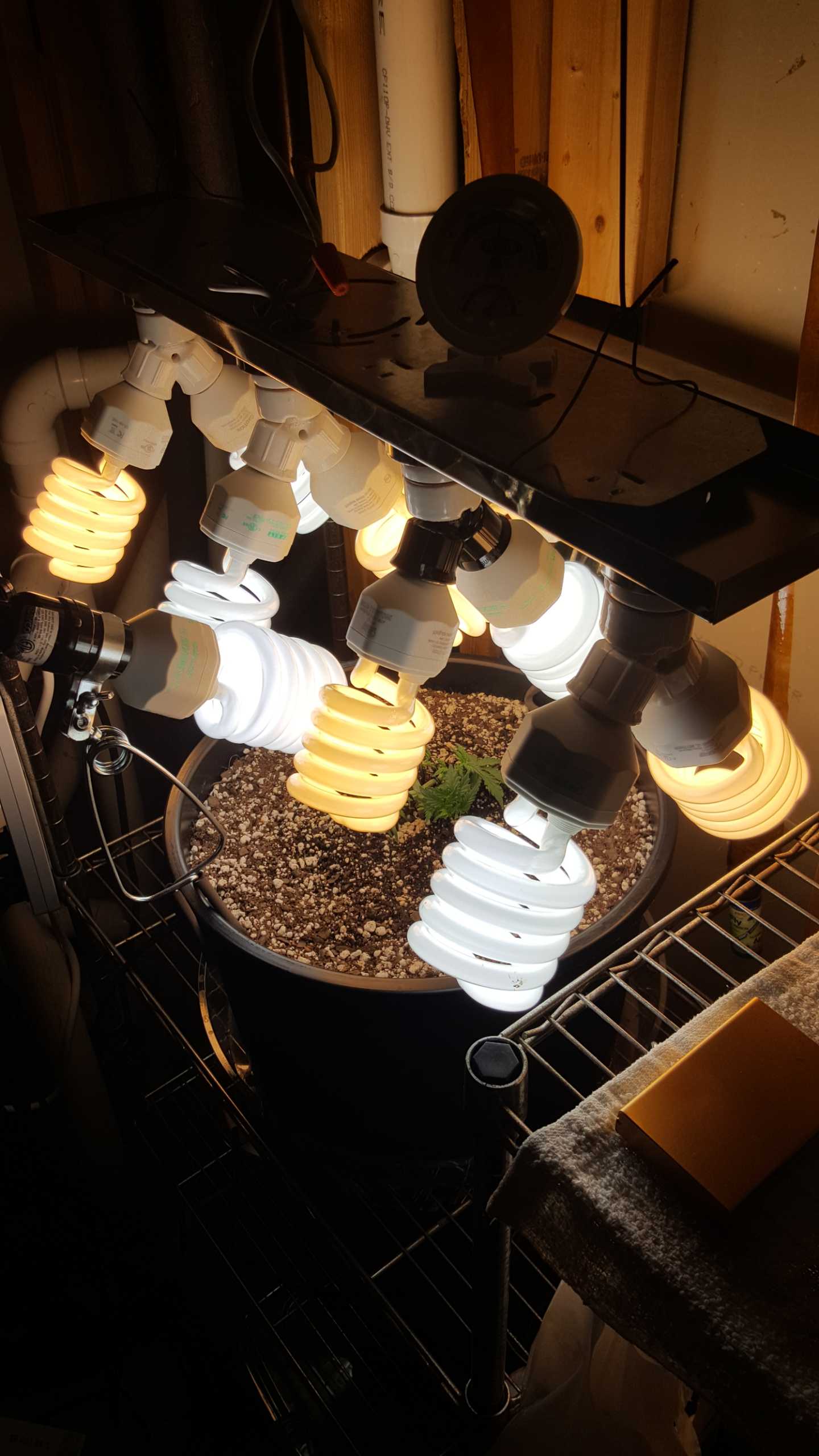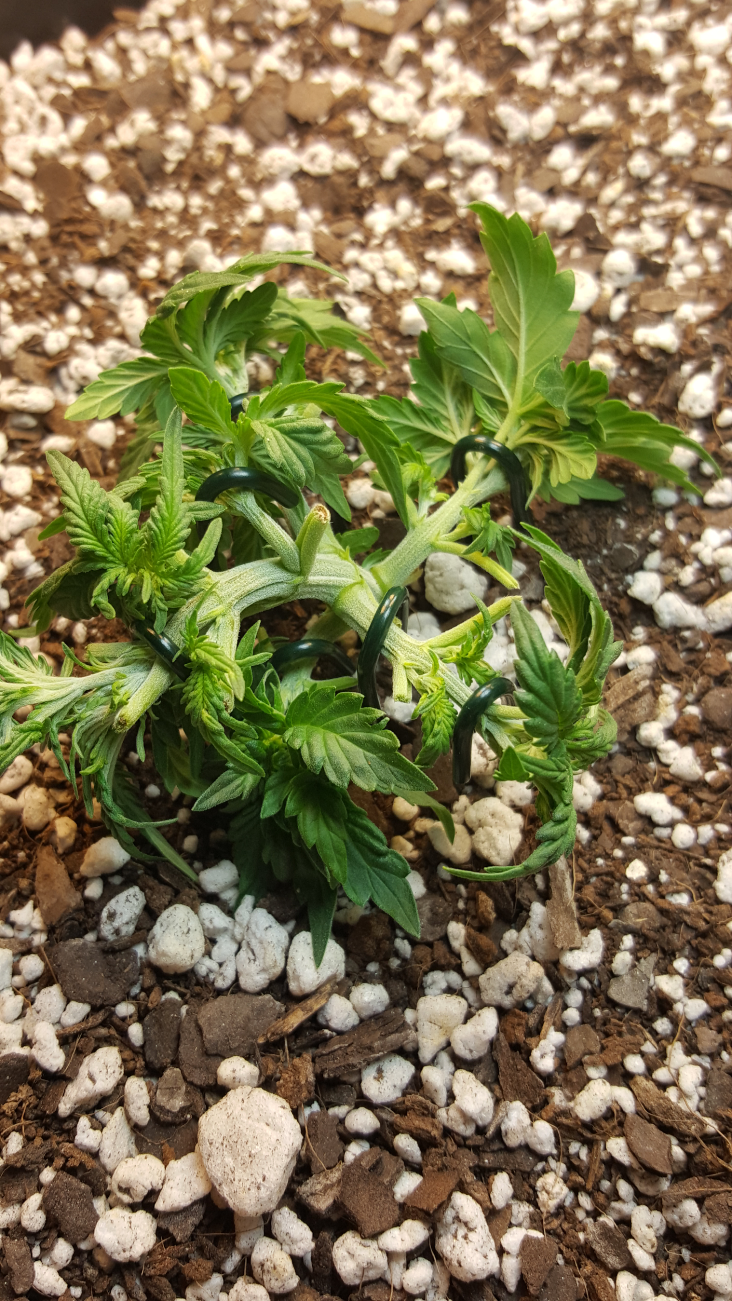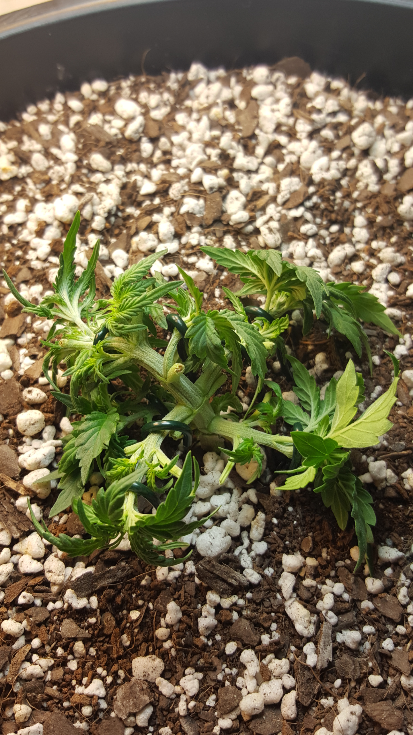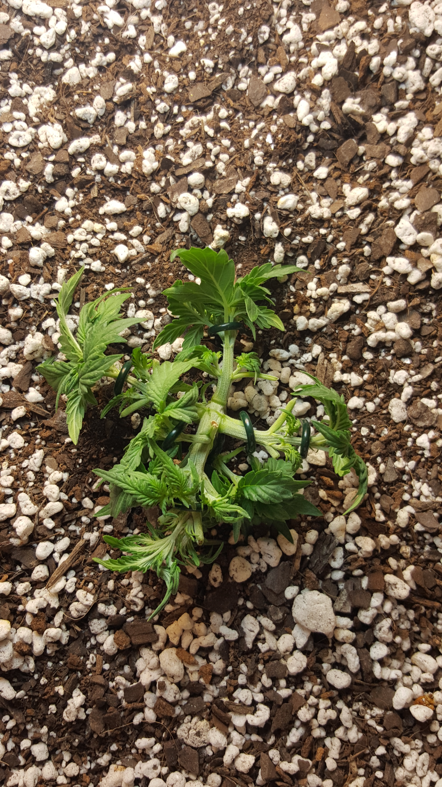 Well I have decided to not top and to not fimm her....I did however decide to keep her defoliated and to bind the hell out of her. Today was also her third nute feeding at full strength and also her first root blaster. Right now she has 8 forty watt cfls on her.She is 17 days old from sprout.