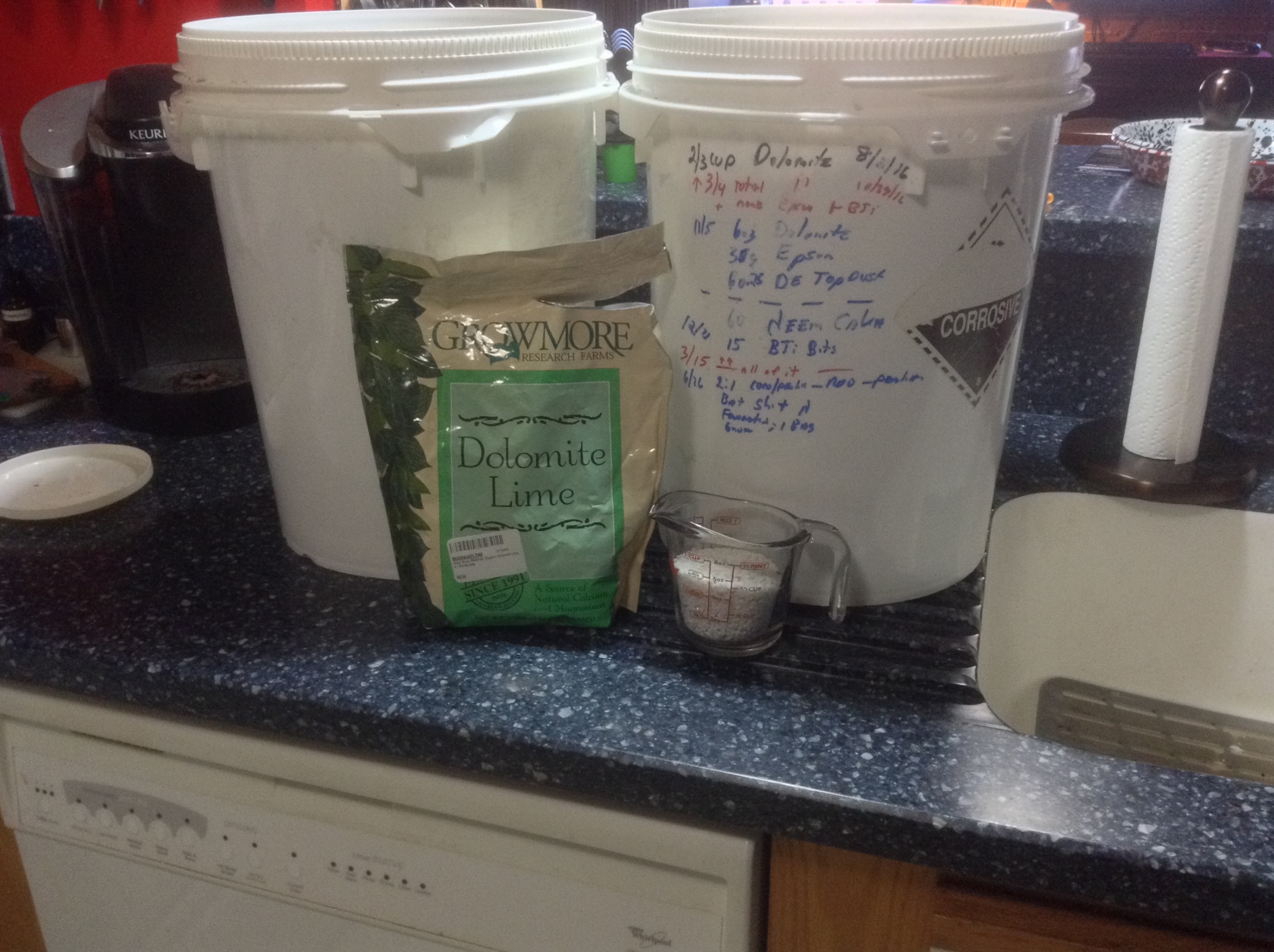 Click image for larger version  Name:	IMG_2327.JPG Views:	1 Size:	2.49 MB ID:	112950 Add 3/4 cup of Dolomite Lime to each 5 gallon pail.