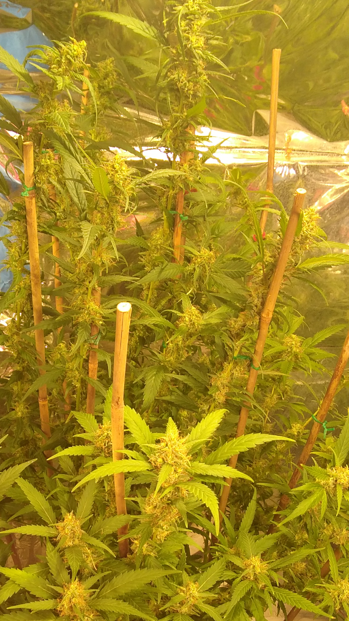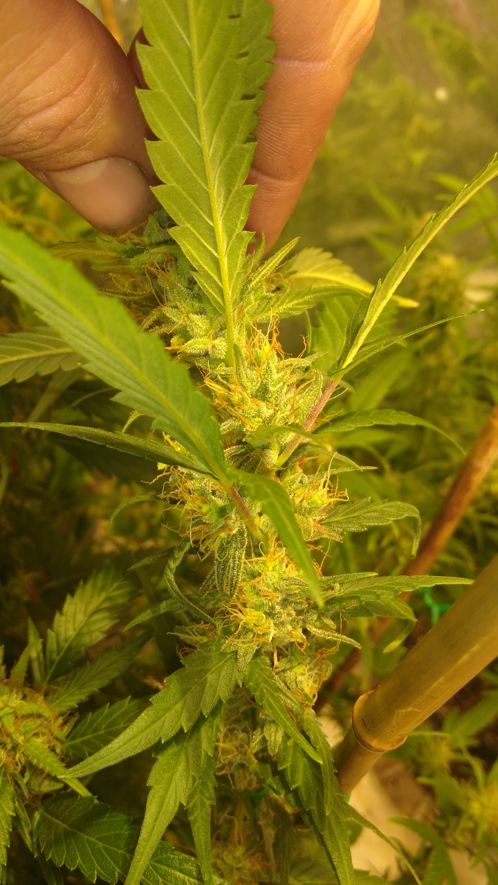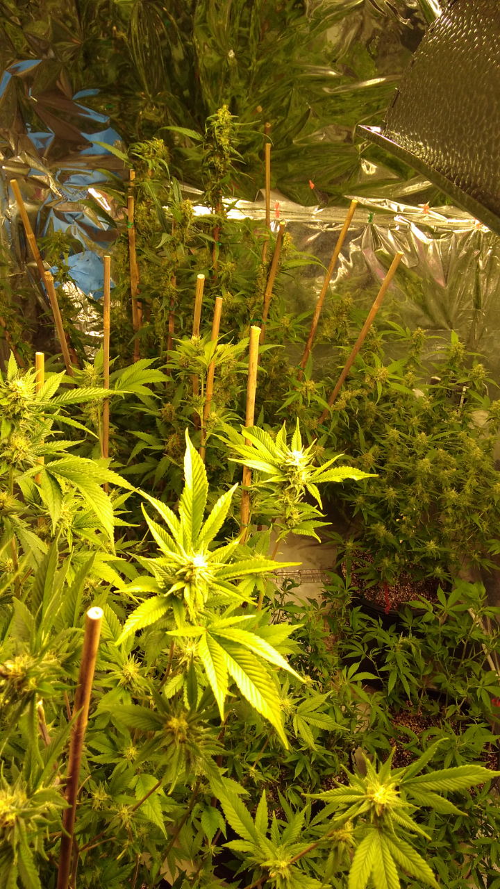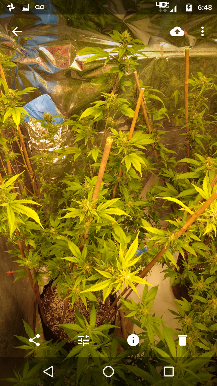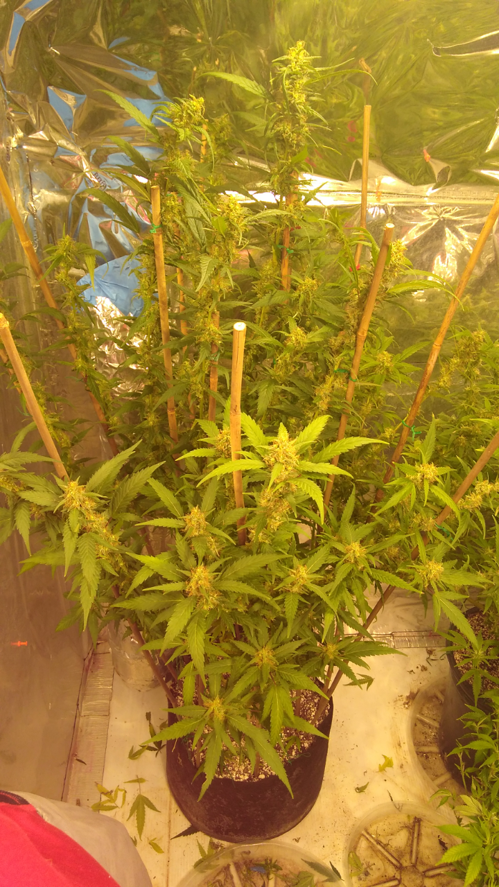 Thanks!! Although doesn't seem like it lmao, freakin jungle in there lol, hopefully the lights aren't to close.. can't move the lights any higher lol, an the 2 ofem are as tall as I am damn near .. the tallest buds come to my eye lvl an I'm 5'10 so there pretty big.. I had to stake the; one plant real good cause the buds are already to heavy lol not a bad problem lol an the trichs are like woah!! Very impressed with this ogk she's a beast.. an it was the only bag seed I ran.. lol both were females.. luckily I took clones of her.. she's one of my favs