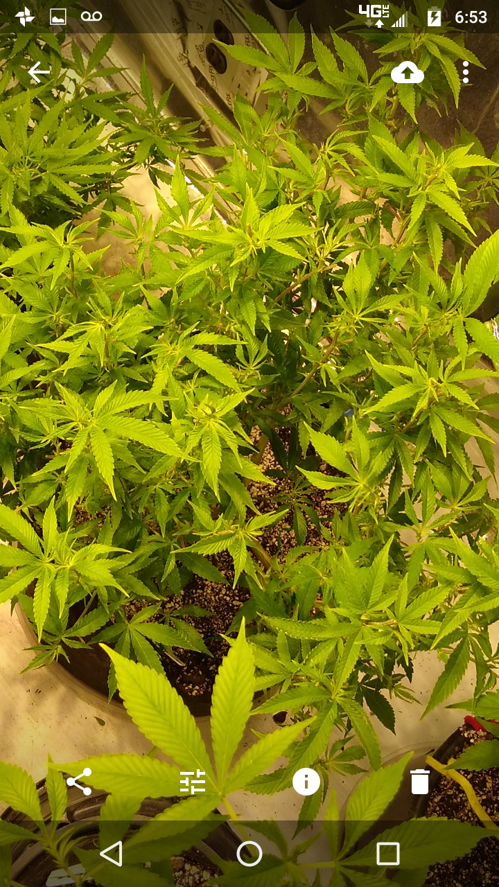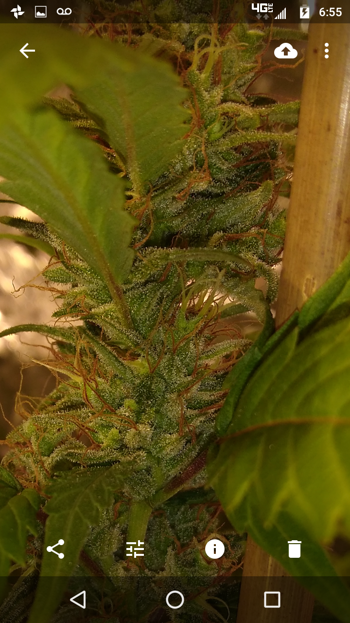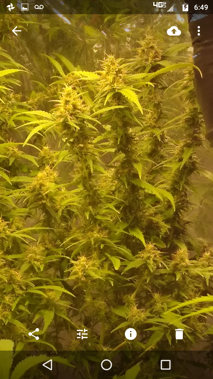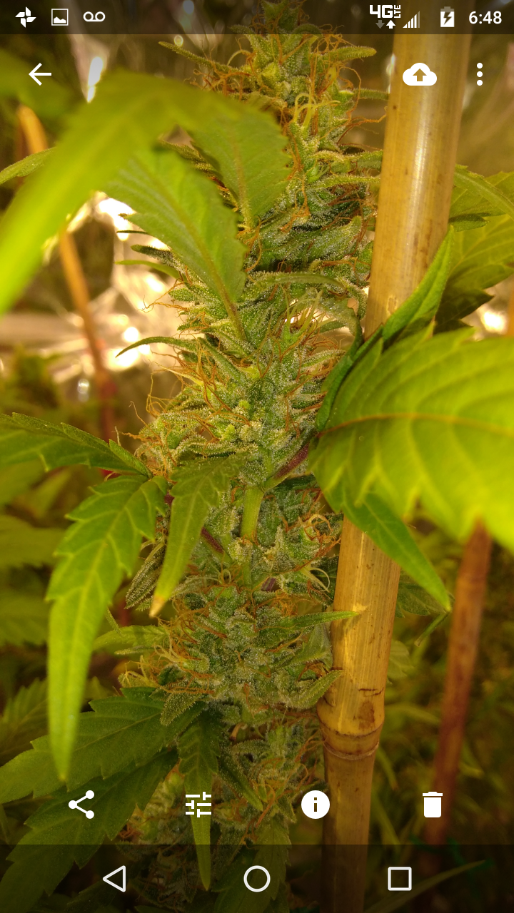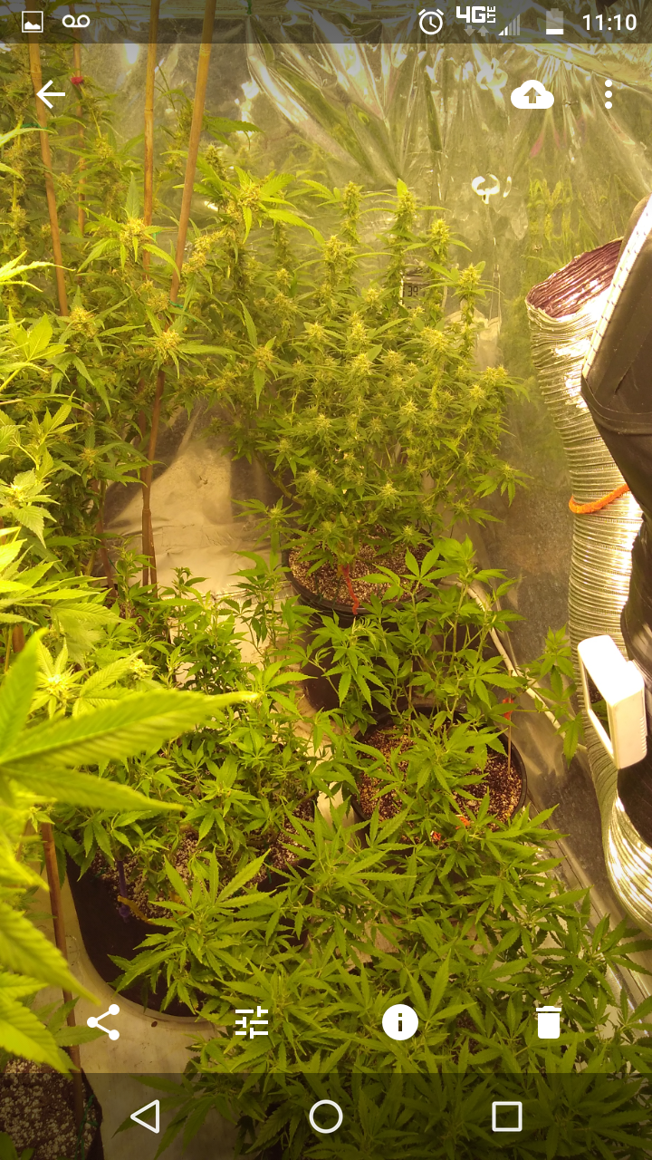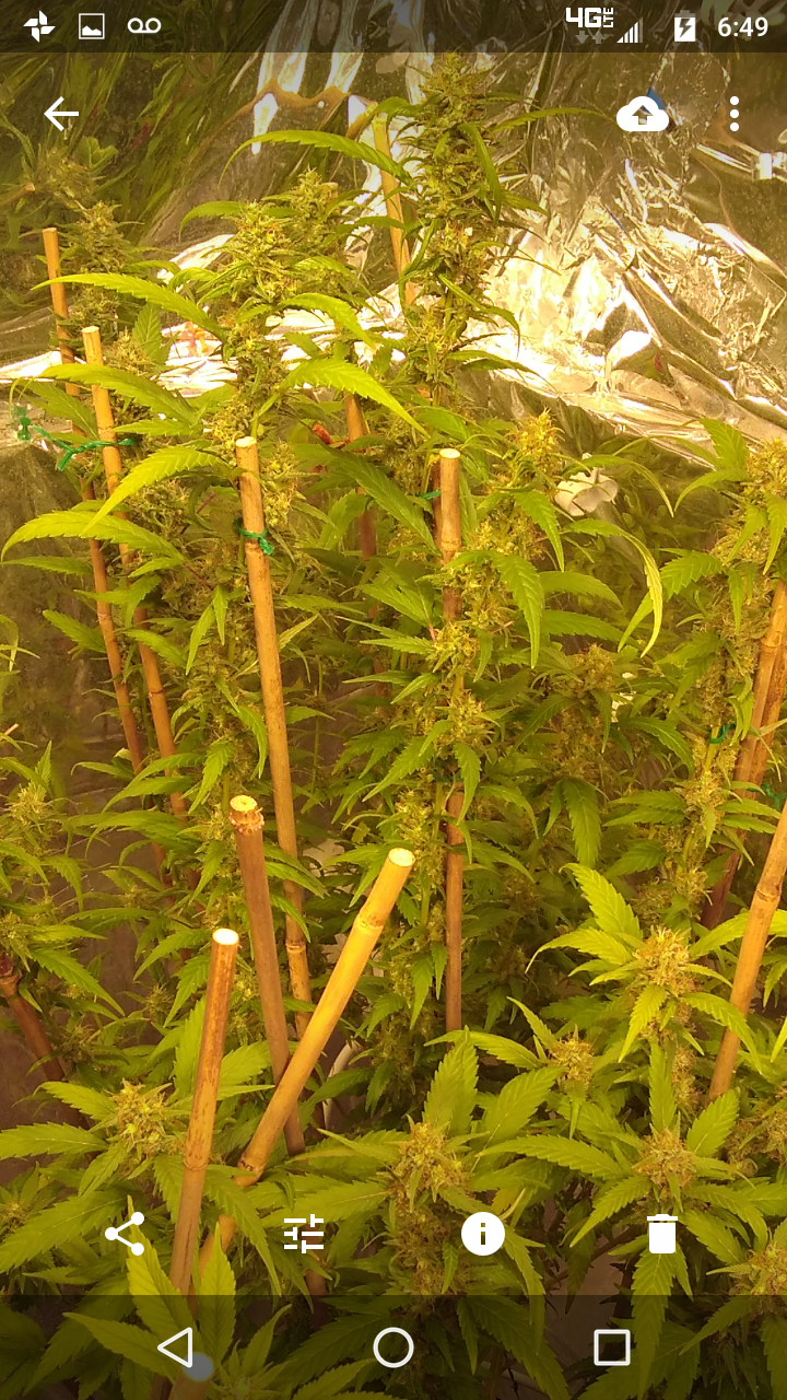 Thanks!! Although doesn't seem like it lmao, freakin jungle in there lol, hopefully the lights aren't to close.. can't move the lights any higher lol, an the 2 ofem are as tall as I am damn near .. the tallest buds come to my eye lvl an I'm 5'10 so there pretty big.. I had to stake the; one plant real good cause the buds are already to heavy lol not a bad problem lol an the trichs are like woah!! Very impressed with this ogk she's a beast.. an it was the only bag seed I ran.. lol both were females.. luckily I took clones of her.. she's one of my favs