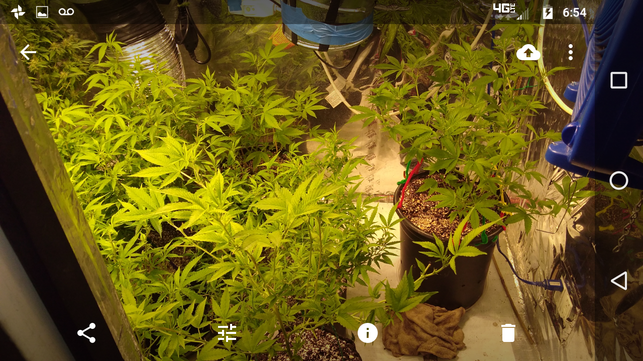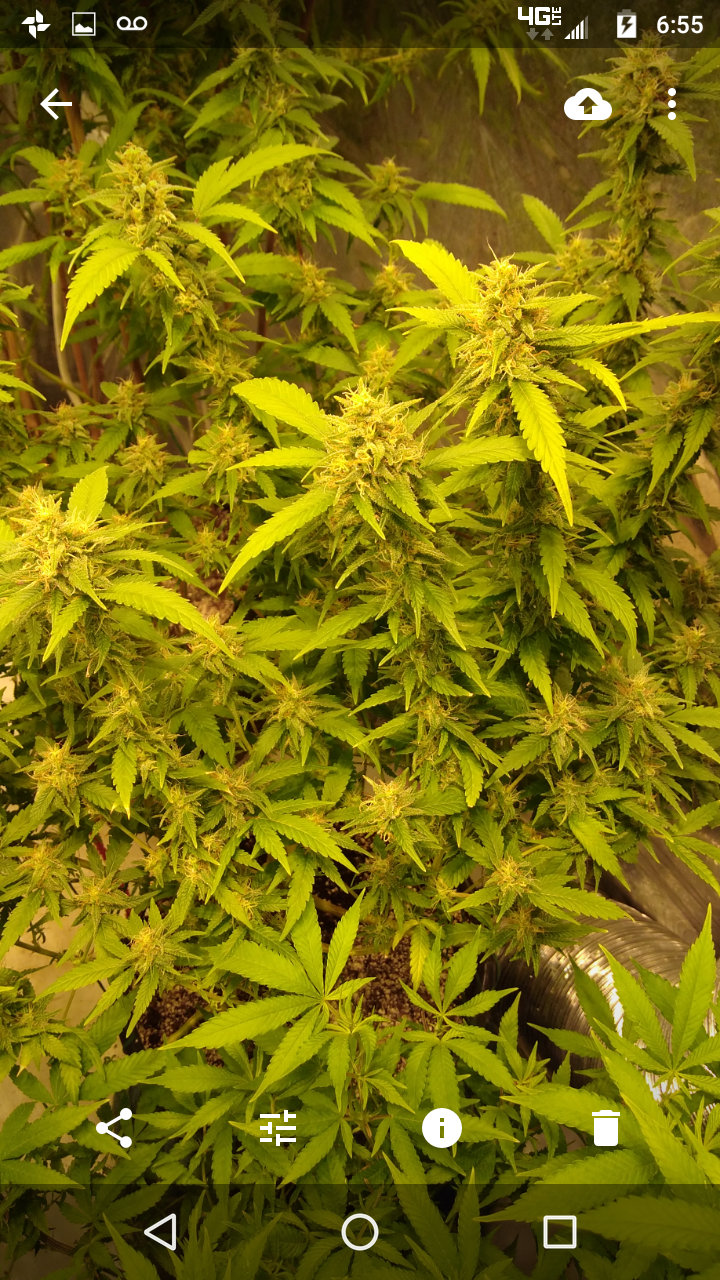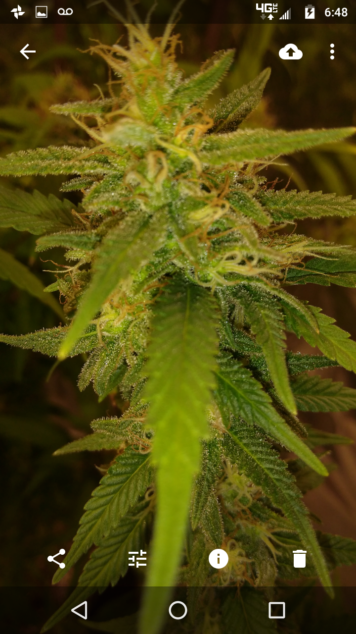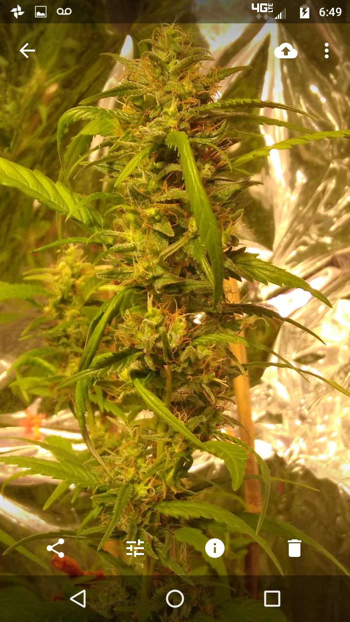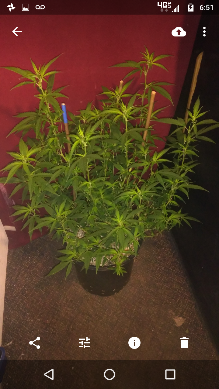 Thanks!! Although doesn't seem like it lmao, freakin jungle in there lol, hopefully the lights aren't to close.. can't move the lights any higher lol, an the 2 ofem are as tall as I am damn near .. the tallest buds come to my eye lvl an I'm 5'10 so there pretty big.. I had to stake the; one plant real good cause the buds are already to heavy lol not a bad problem lol an the trichs are like woah!! Very impressed with this ogk she's a beast.. an it was the only bag seed I ran.. lol both were females.. luckily I took clones of her.. she's one of my favs