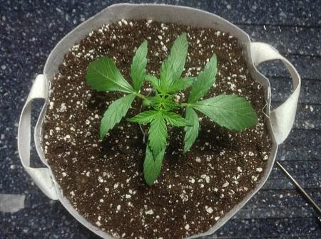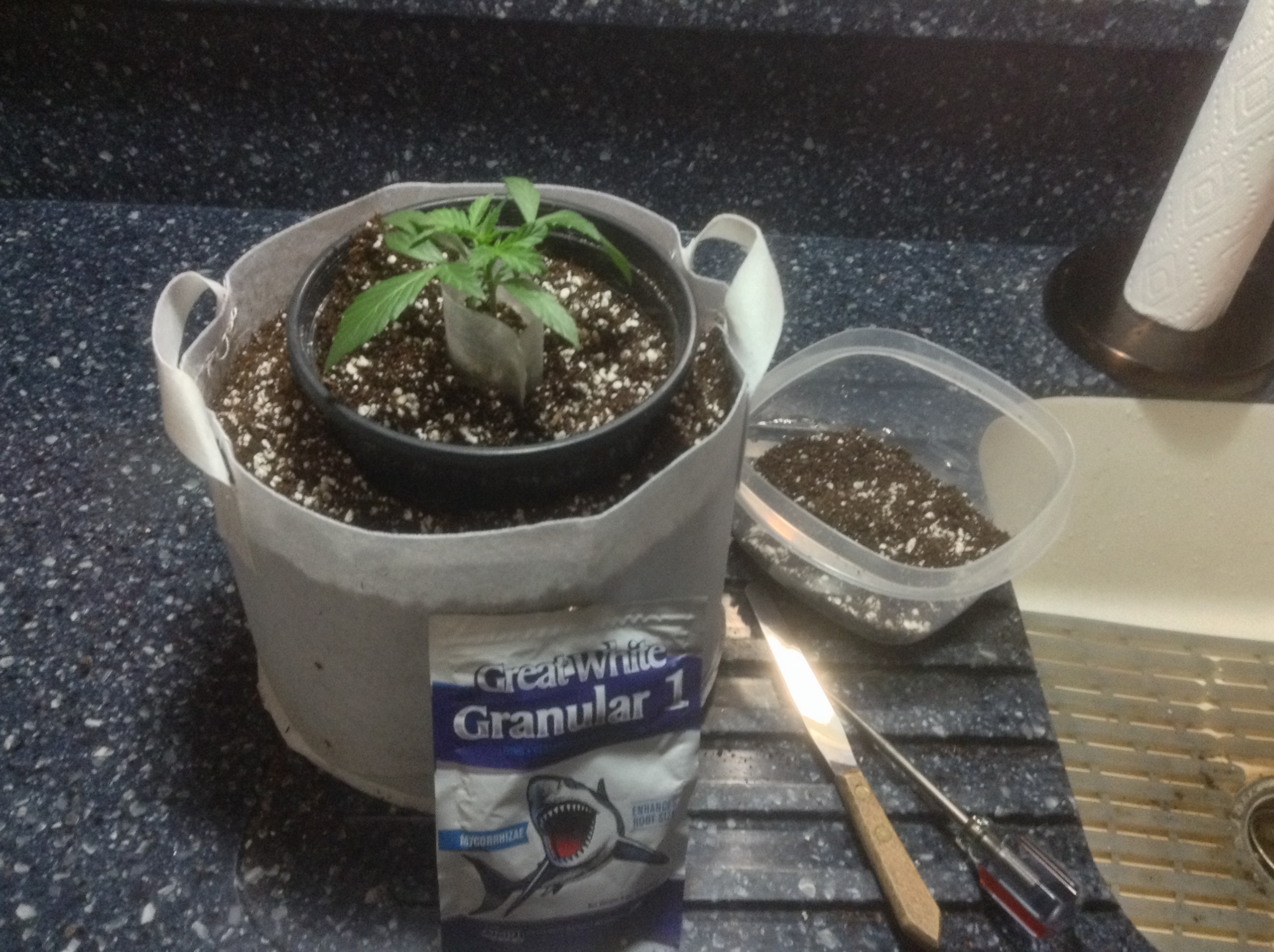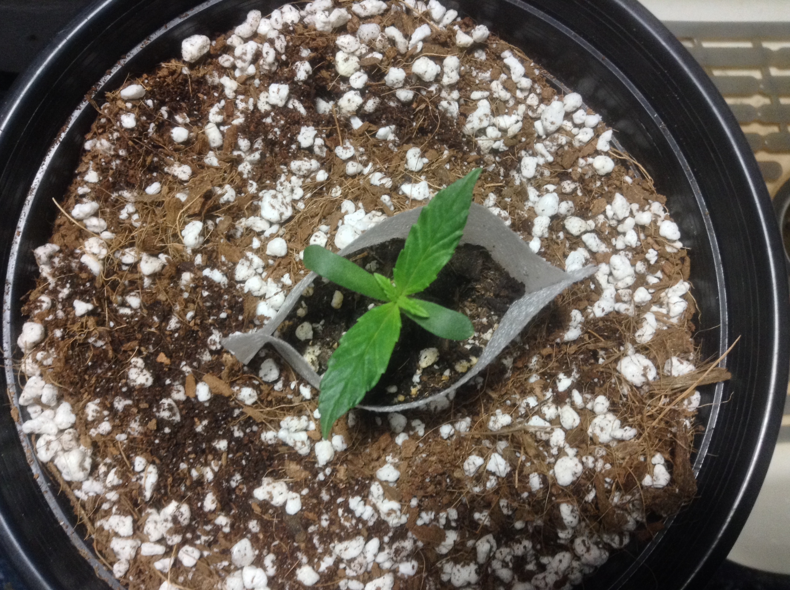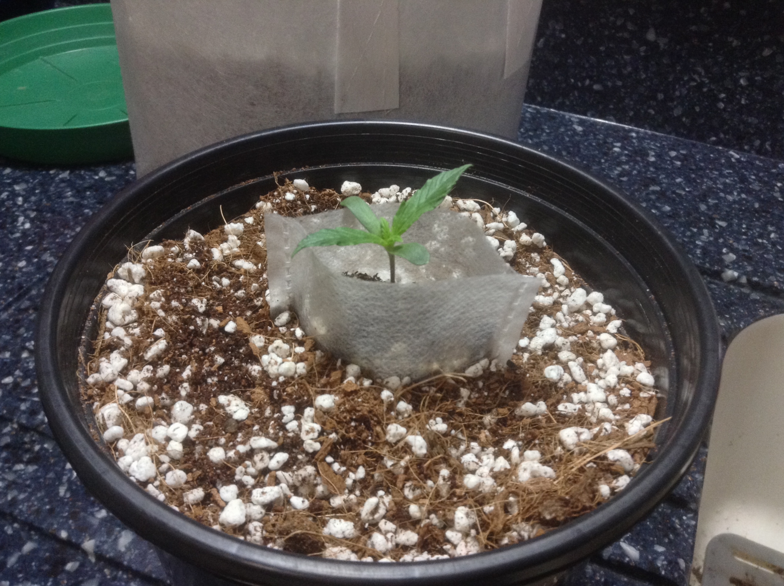 1 gal nursey pot with MotherEarth Coco/perlite 70/30 outside of germbag