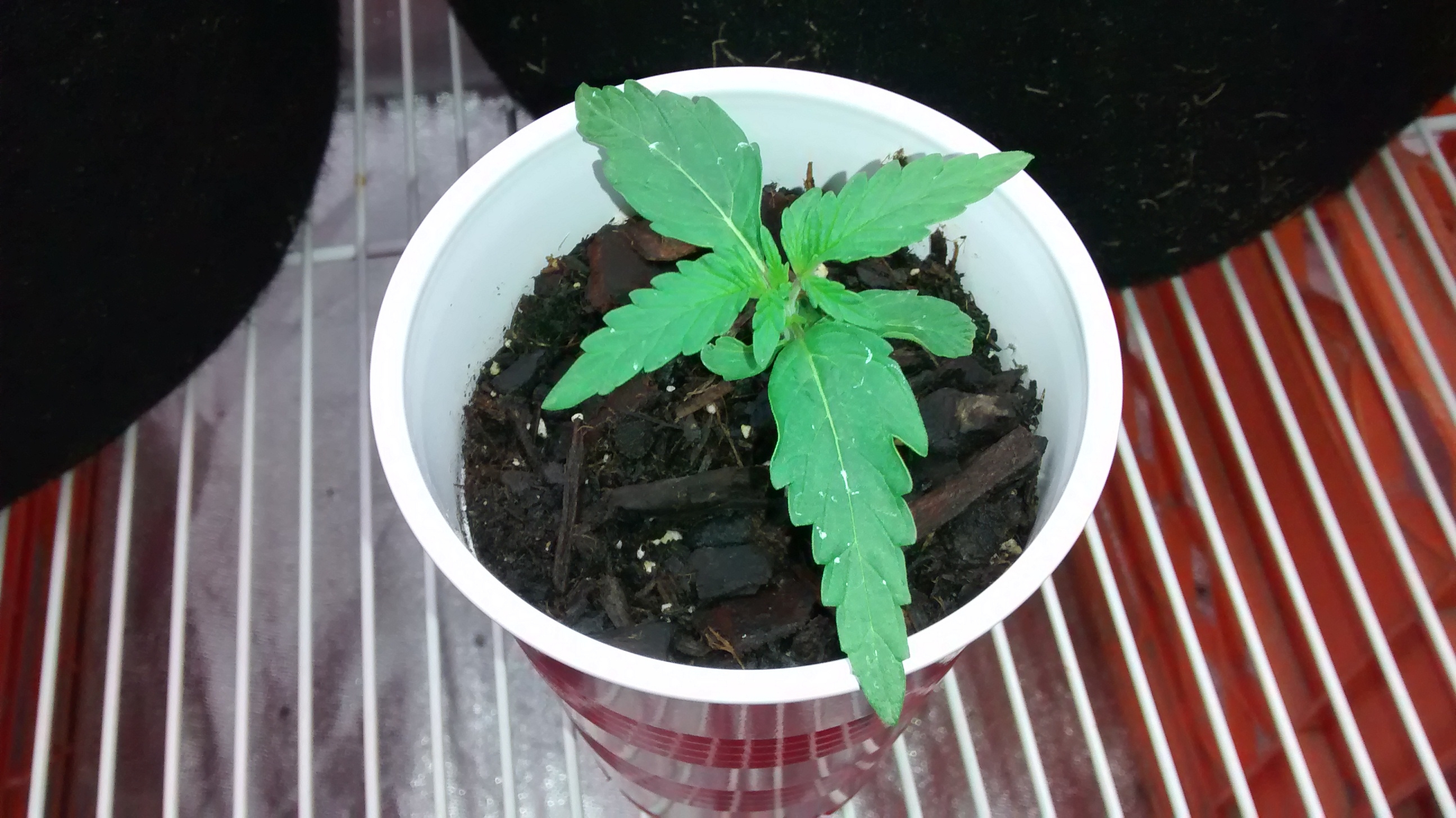 Sept1st, the blueberry kush from nirvana finally showed a set of true leaves two days ago. Now she got a second set coming on. In some cheapo organic potting soil. As from the mephisito comp starts today, og Ripley and sour bubble let's hope for some grow luck. Click image for larger version