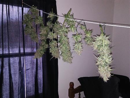 So bud mold attacked auroa. Was all white fuzz on the 4 largest colas. After 1 nightmarish night of bad sleep, I chopped what looks untouched and hung Click image for larger version