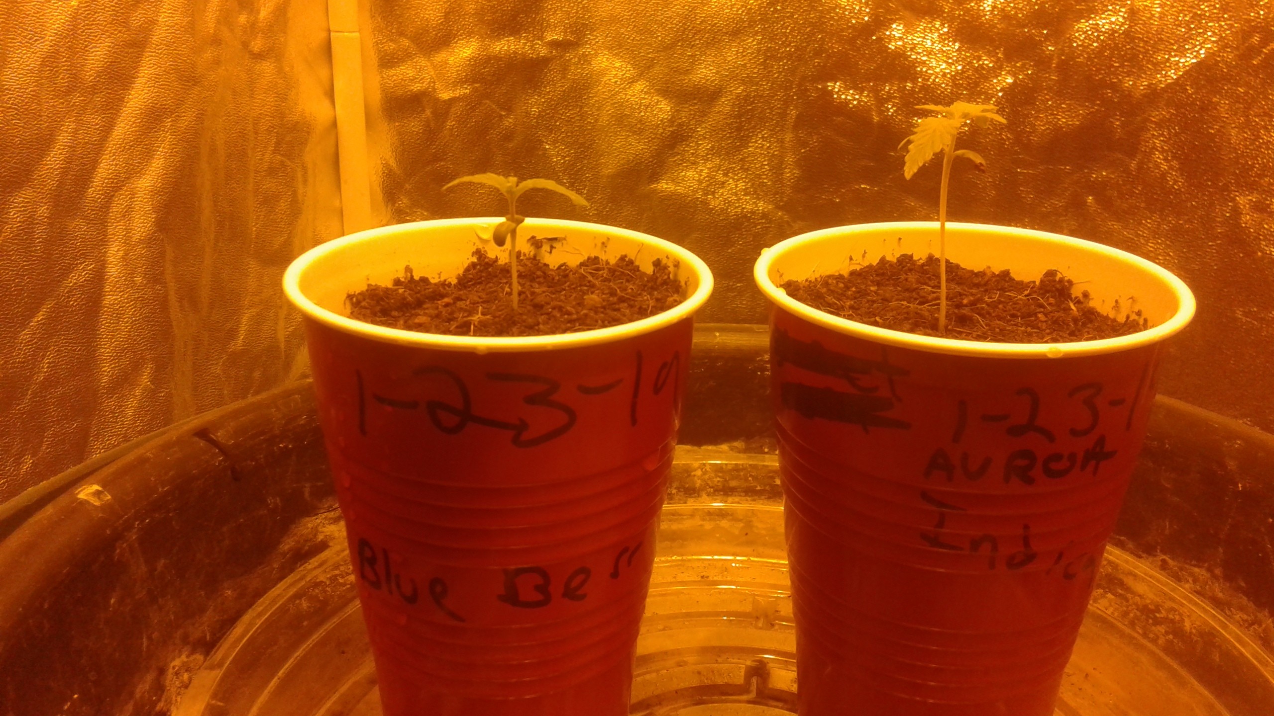 jan 16 , auroa indica front and blueberry gum in the rear. Transplanted to 1gals on day21, probly top them Monday and flower at end of the week.
