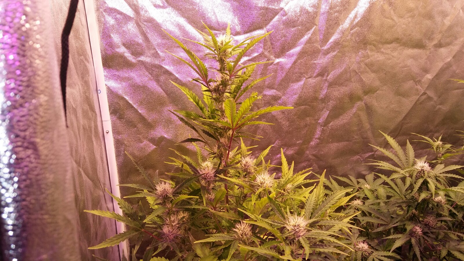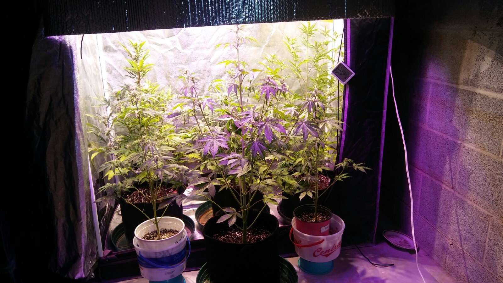 ID:	156992 the front left is pineapple chunk fem photo plant was a freebie, put into flower at 21days. left rear is ak48 auto, only been in this 2wkish. Light period is 12.5 on 11.5 off 400hps. Props to the photo plant growers making it look easy.