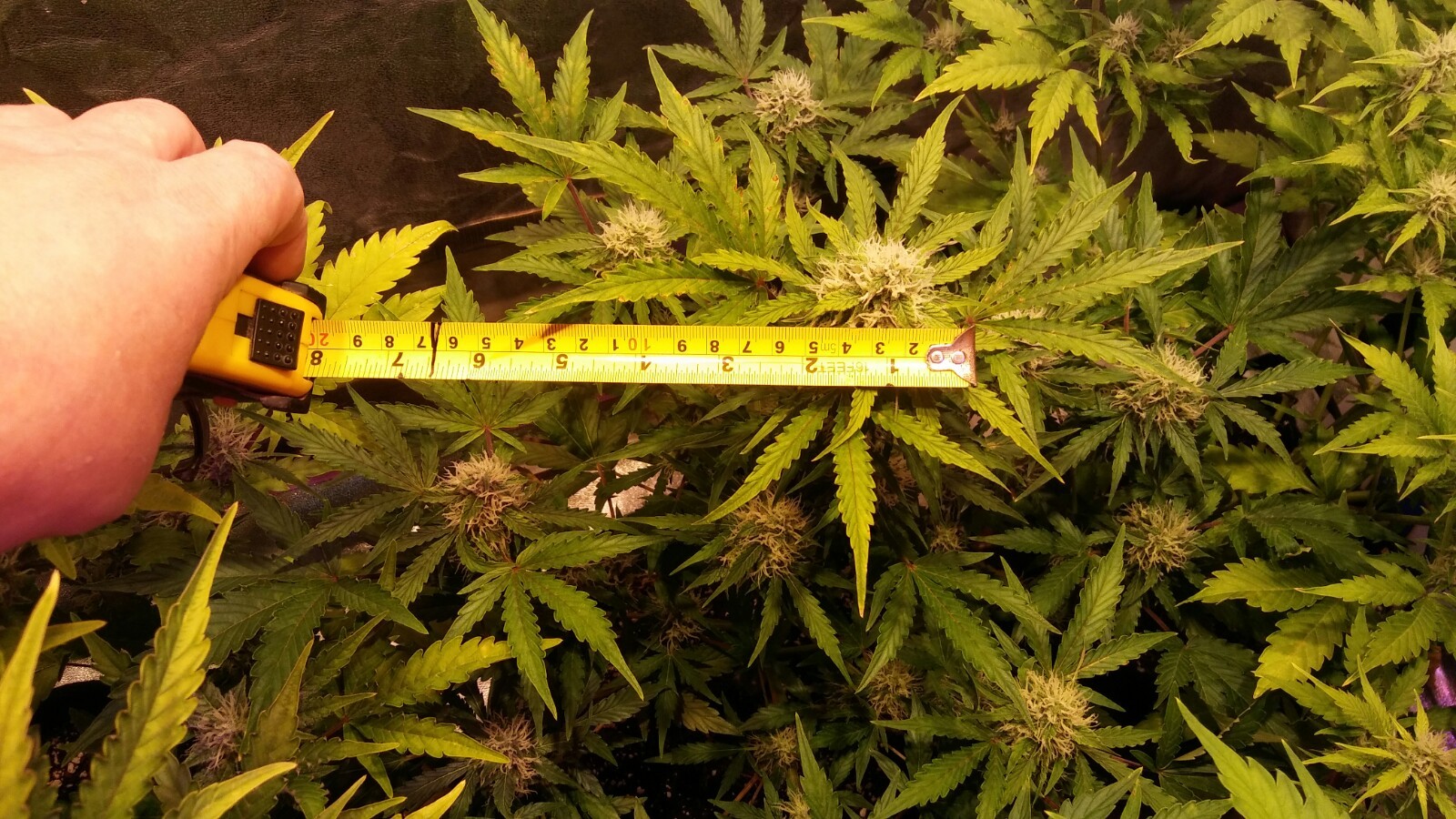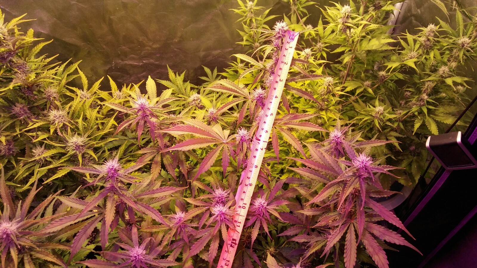 ID:	158249 tent is 5ft tall tape measure is at 42in. Plants inside are 59days, outside 56. The sweet tooth never stretched Click image for larger version