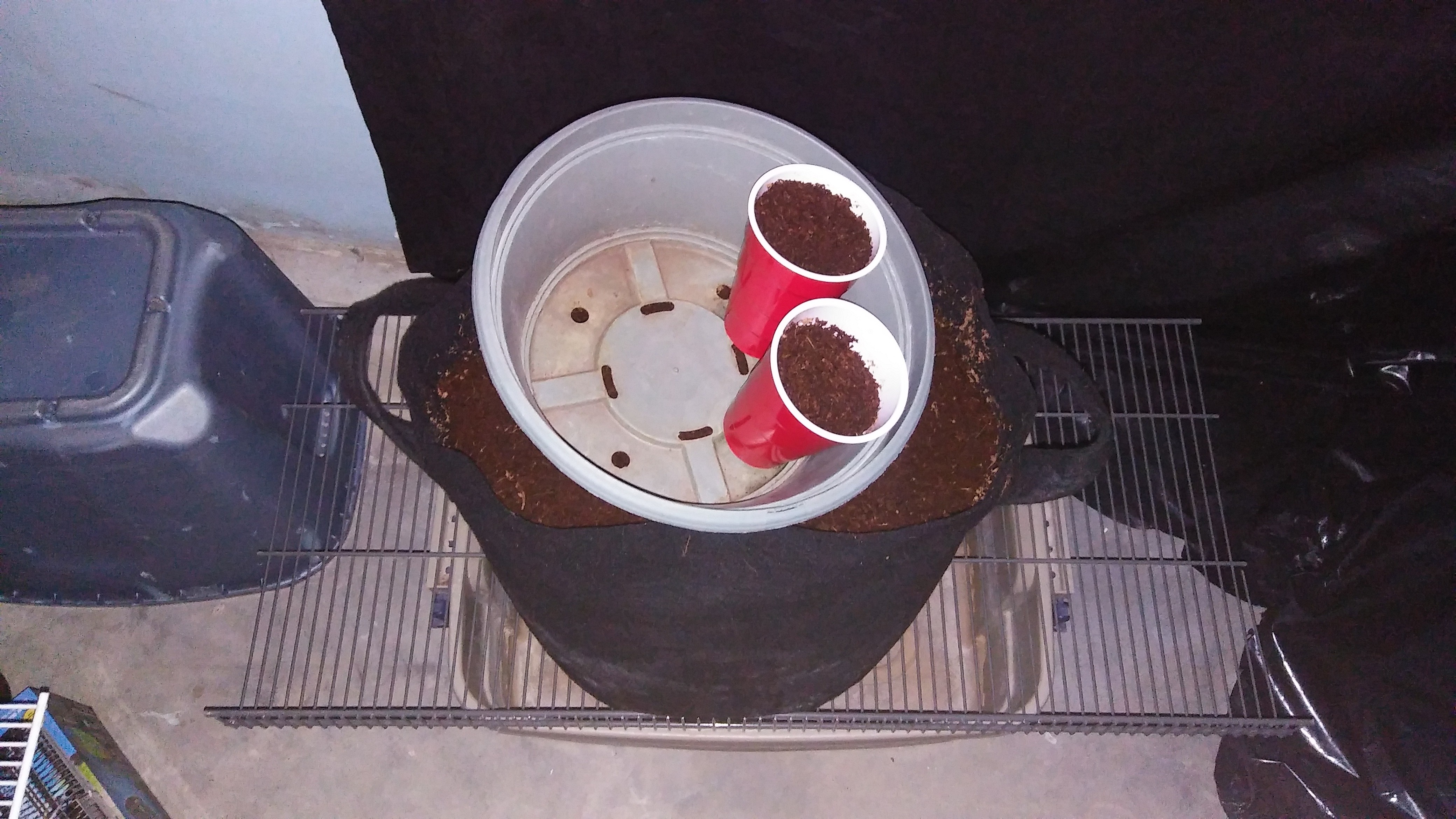 this evening. Click image for larger version  Name:	IMG_20180108_173738280.jpg Views:	1 Size:	668.3 KB ID:	161953 The bucket is weighted to make it fairly stable. Might as well finish em off and just start over. Not sure how I managed to make it to harvest.