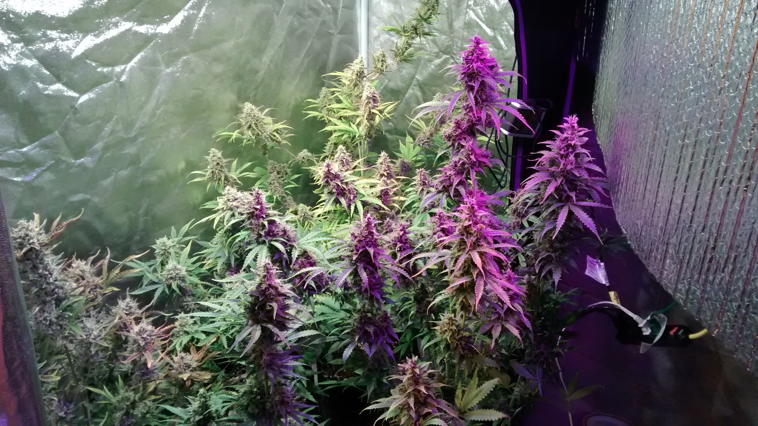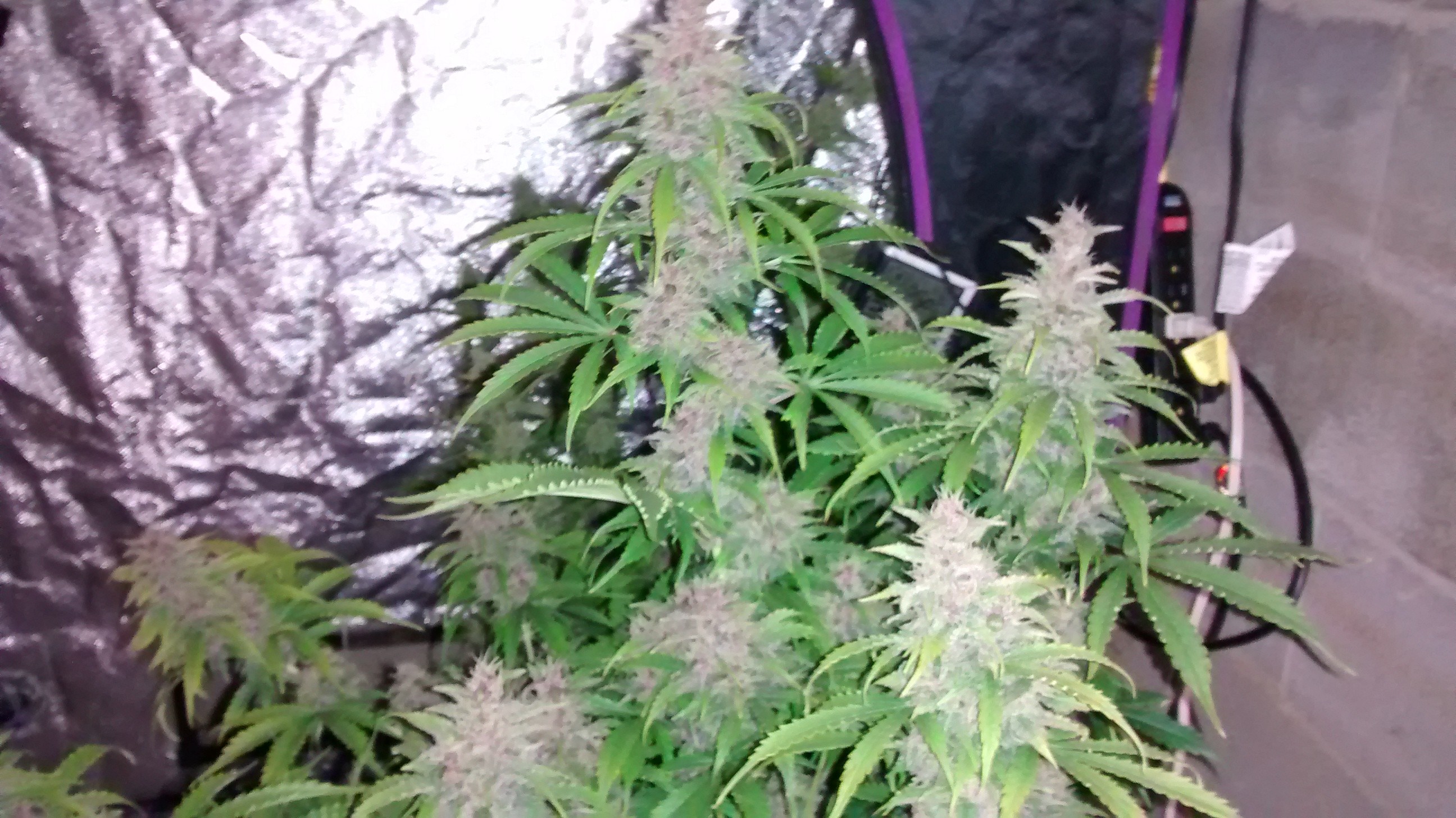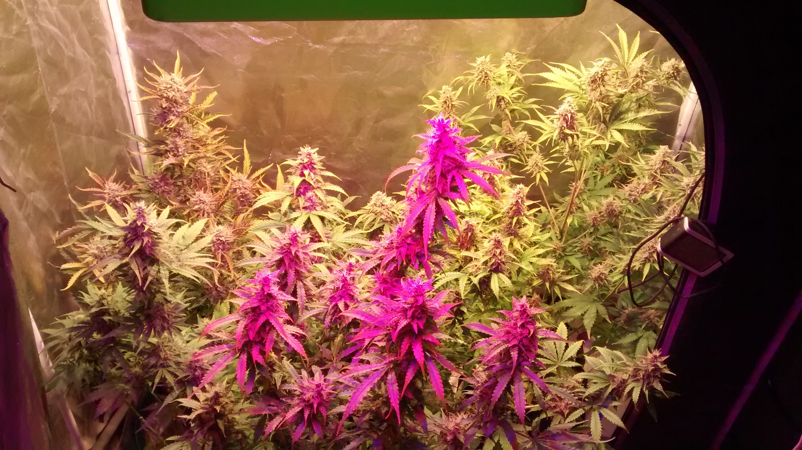 photo tent plant in rear left is an auto, front left is a photo fem put into flower at 21 days.The Vader og got rock solid golf ball buds. Vader og are from photo hybrid regular seed. Should be finished in week or so.