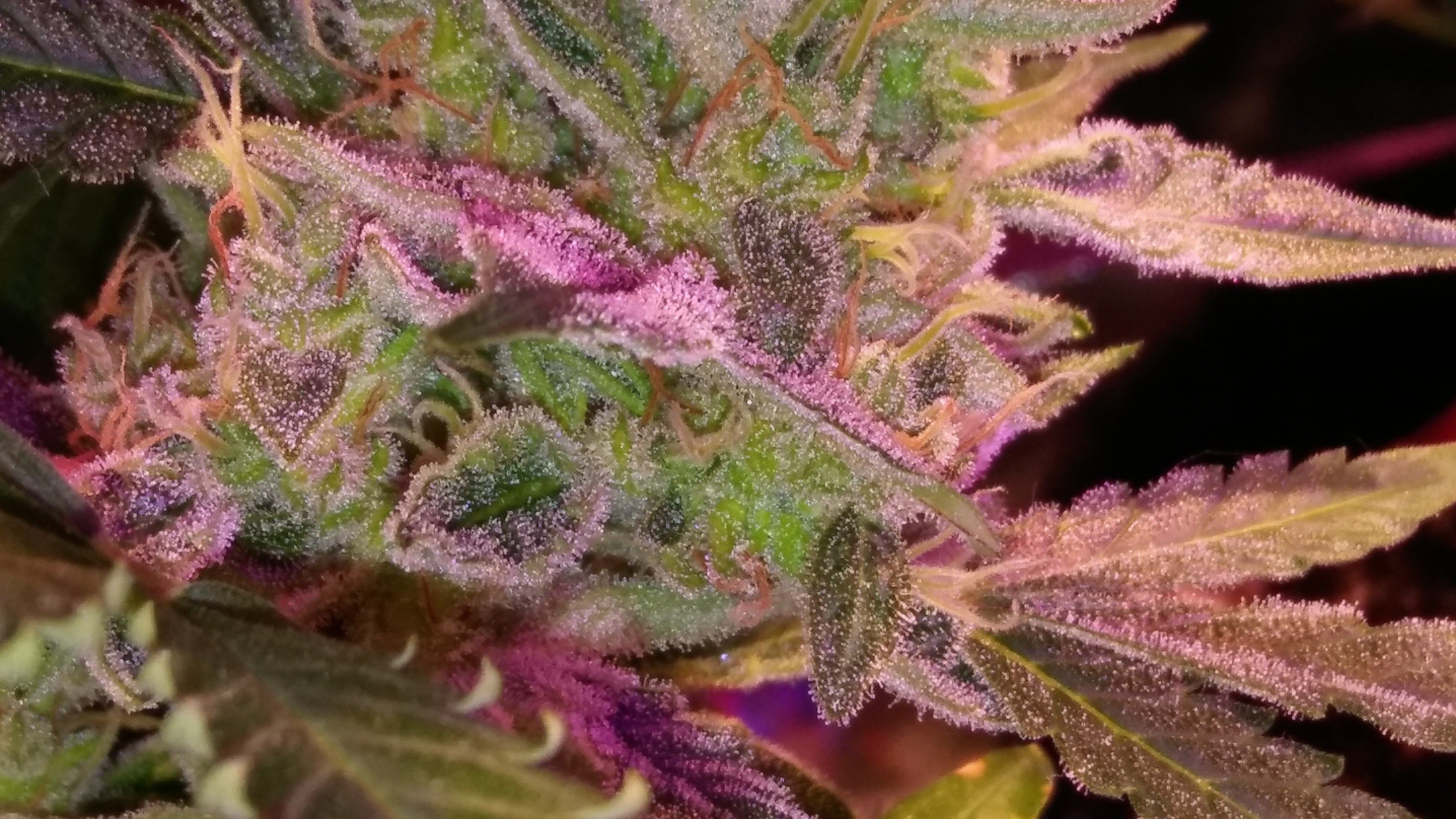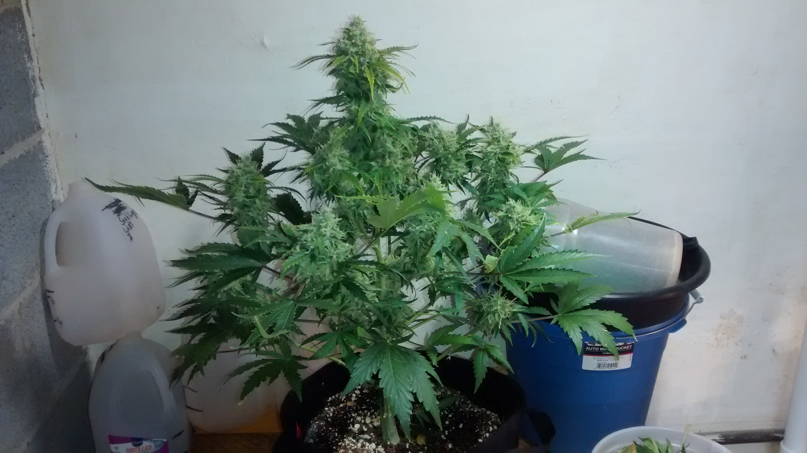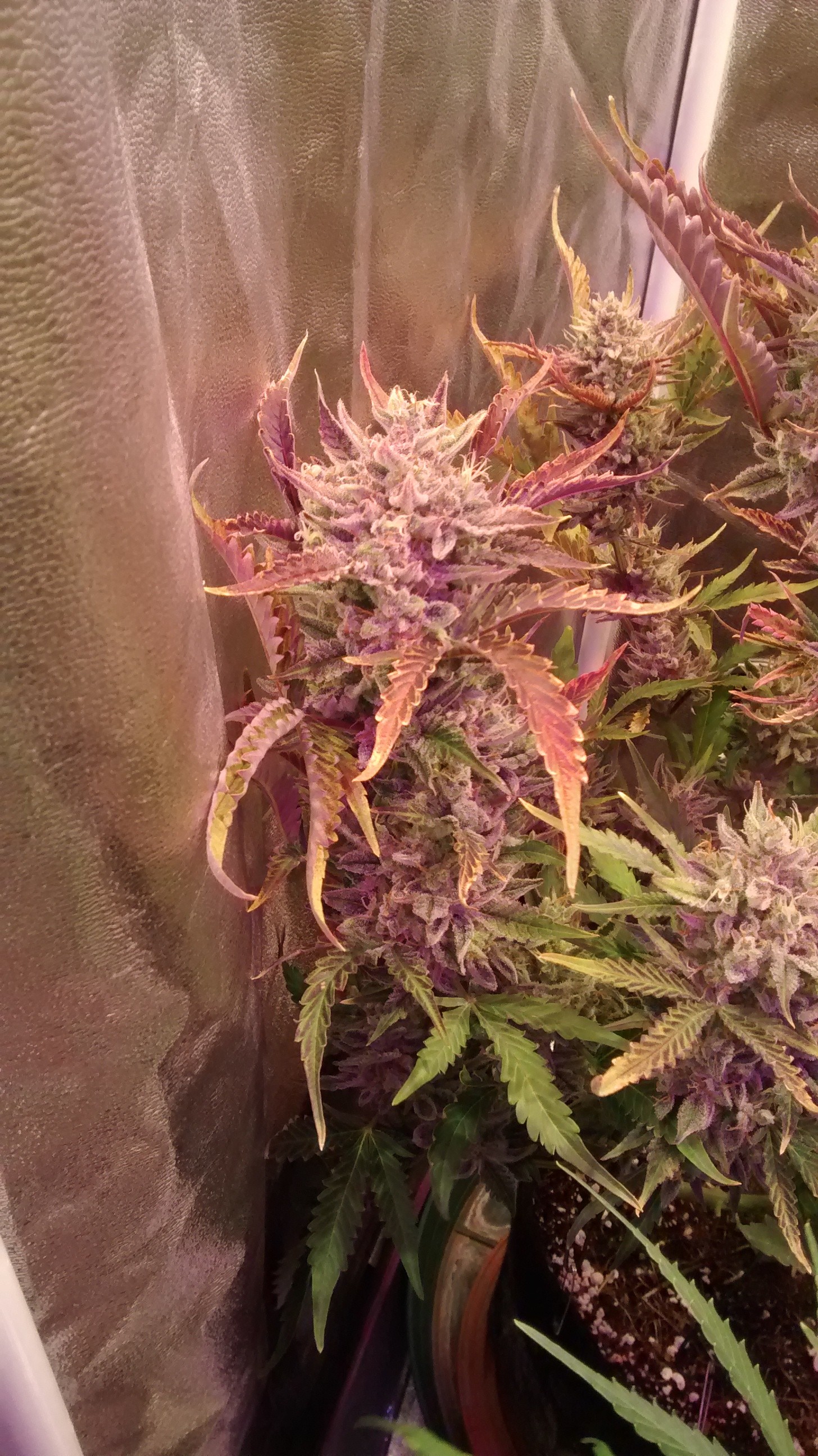 photo tent plant in rear left is an auto, front left is a photo fem put into flower at 21 days.The Vader og got rock solid golf ball buds. Vader og are from photo hybrid regular seed. Should be finished in week or so.