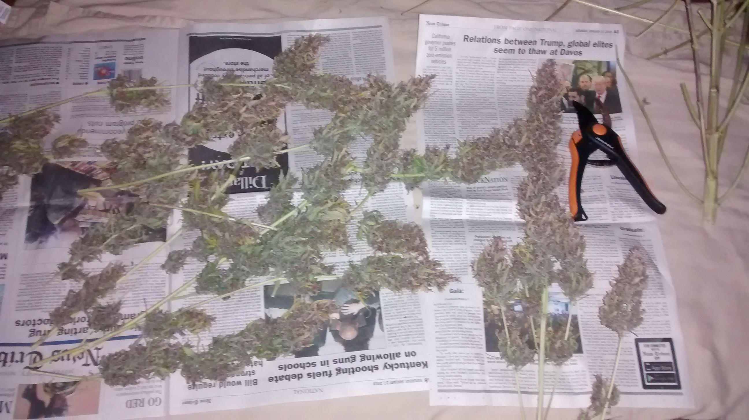 Got all big fans off. Chopped then hung in 2 pieces to dry.