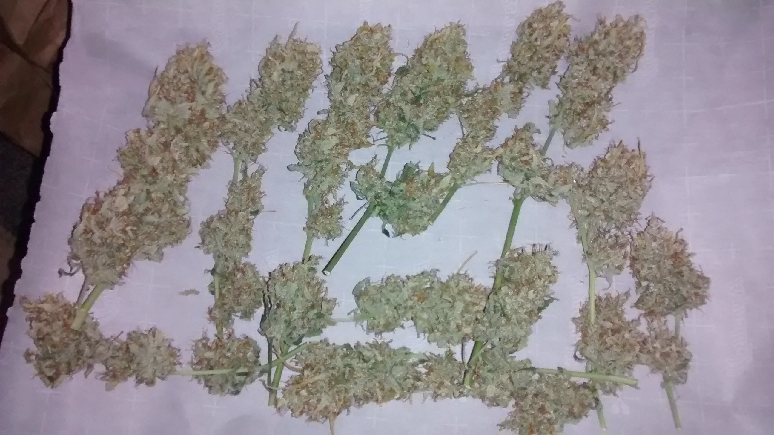 og kush taken down to nugz and slowly finish dryingnone of the buds are rock hard, but smell and taste are there, can't wait to roll one. This plant was grown outside the tent.