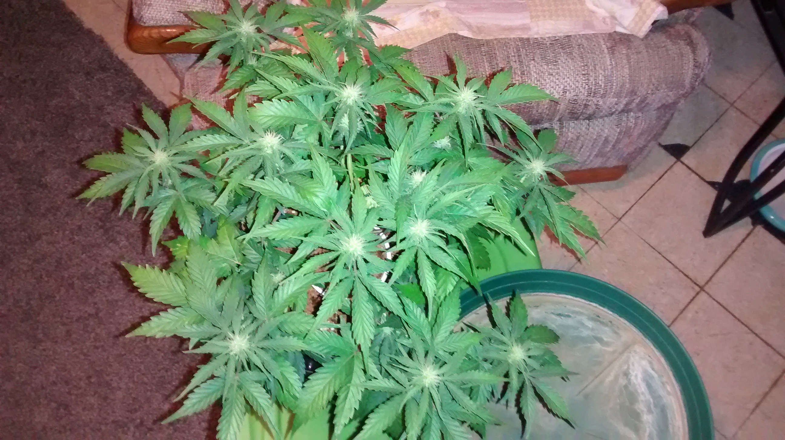 Thank you alltatup i did elbow the main top 1.5 month ago, clean break right at base of main cola. I took wire wrapped around break as a splint, so I Guess it was like a supper crop. But all the branches got a very heavy bud at tip of branch, makes the branches flop out at a 90 degree. I'll get a few close pics when light comes on.