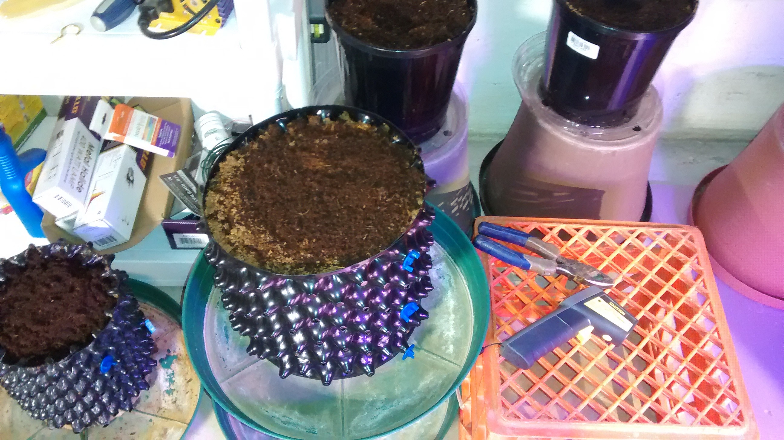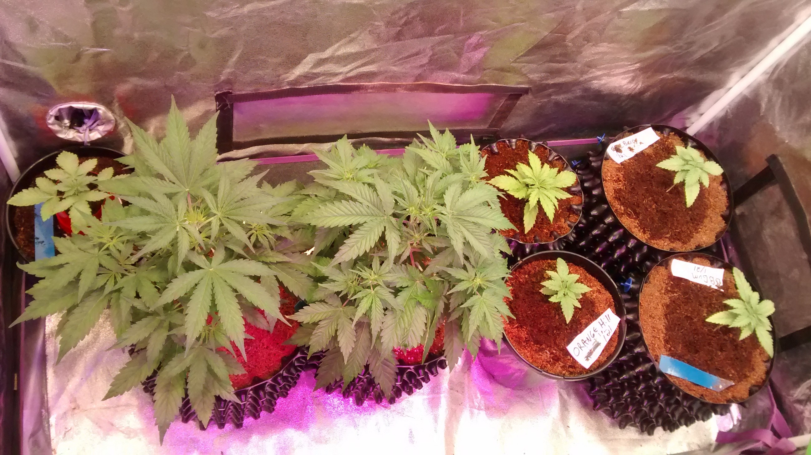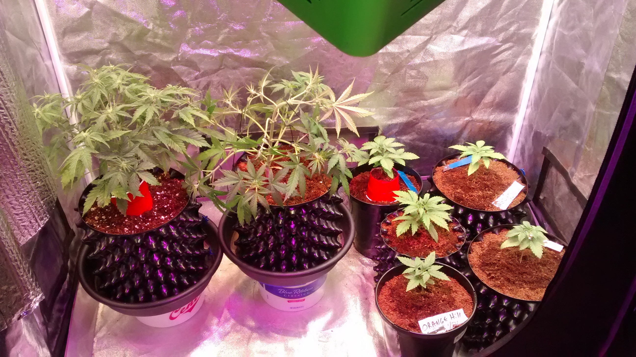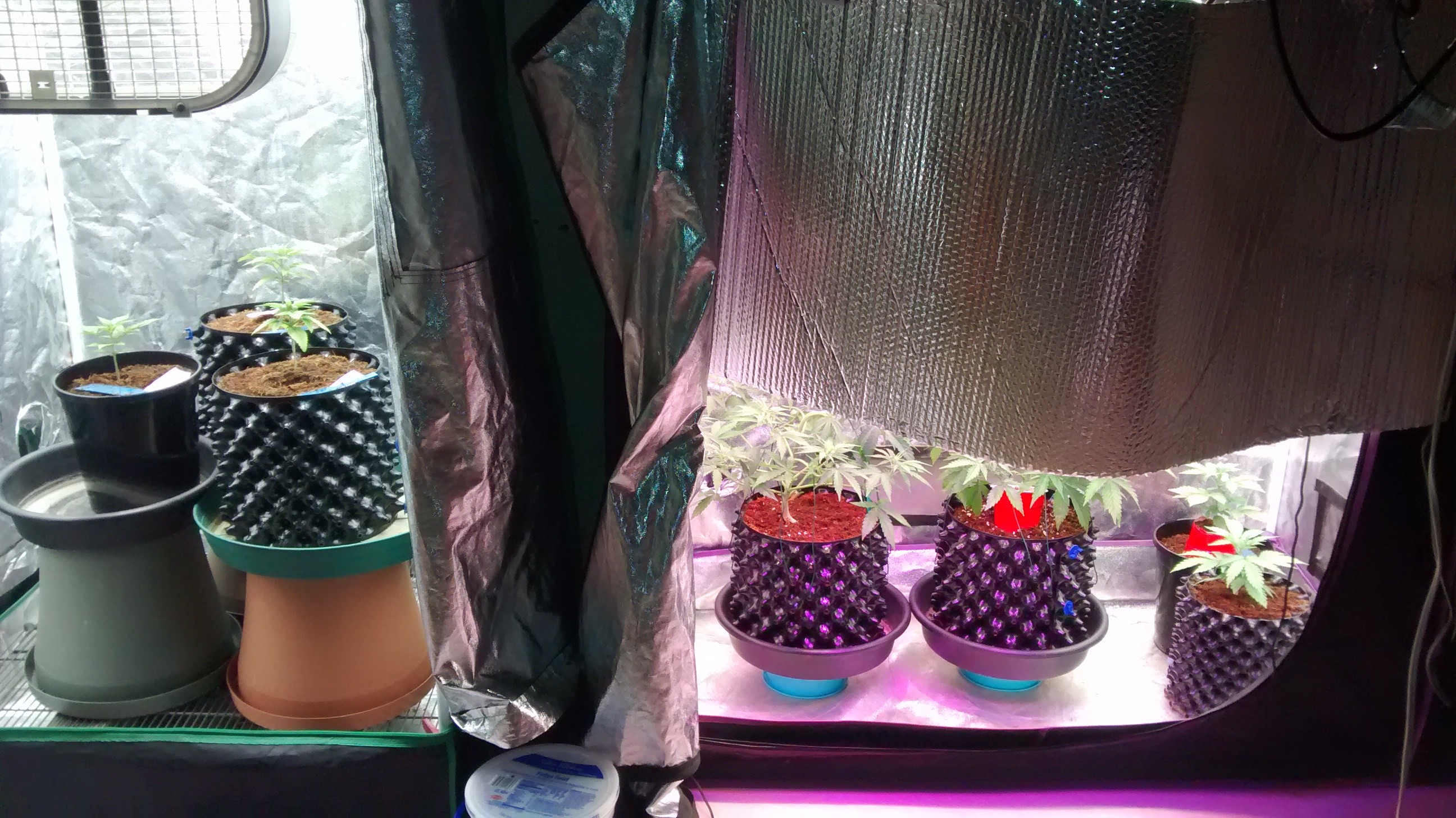 I got 3 photo plants transplanted into 2 in 3gal air pots 1 in 2gal plastic pot. This time all are straight coco washed andprecharged per gwe site.photo plants blueberry , blueberry gum, and slipped Orange hill special into other tent while light is on