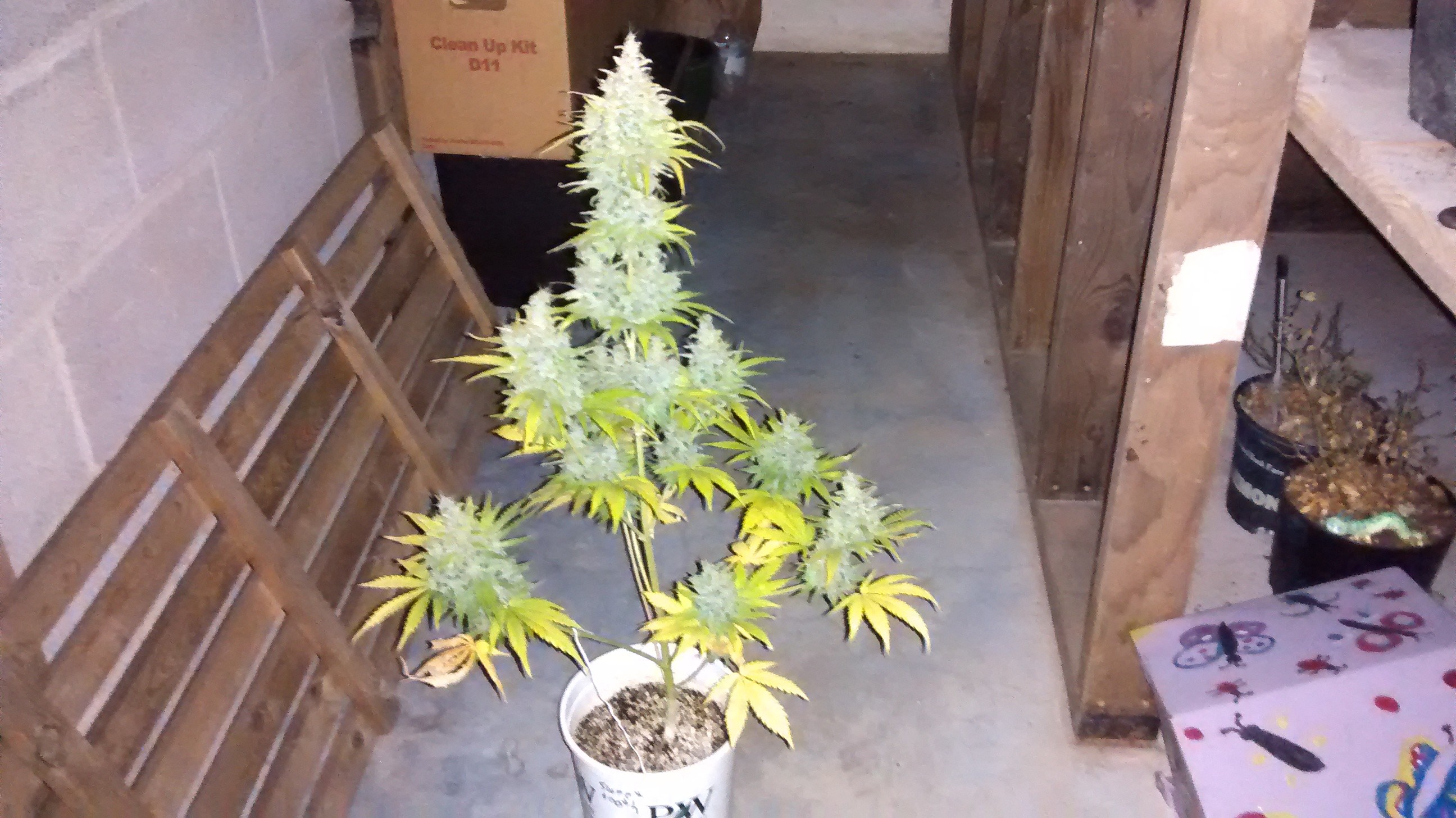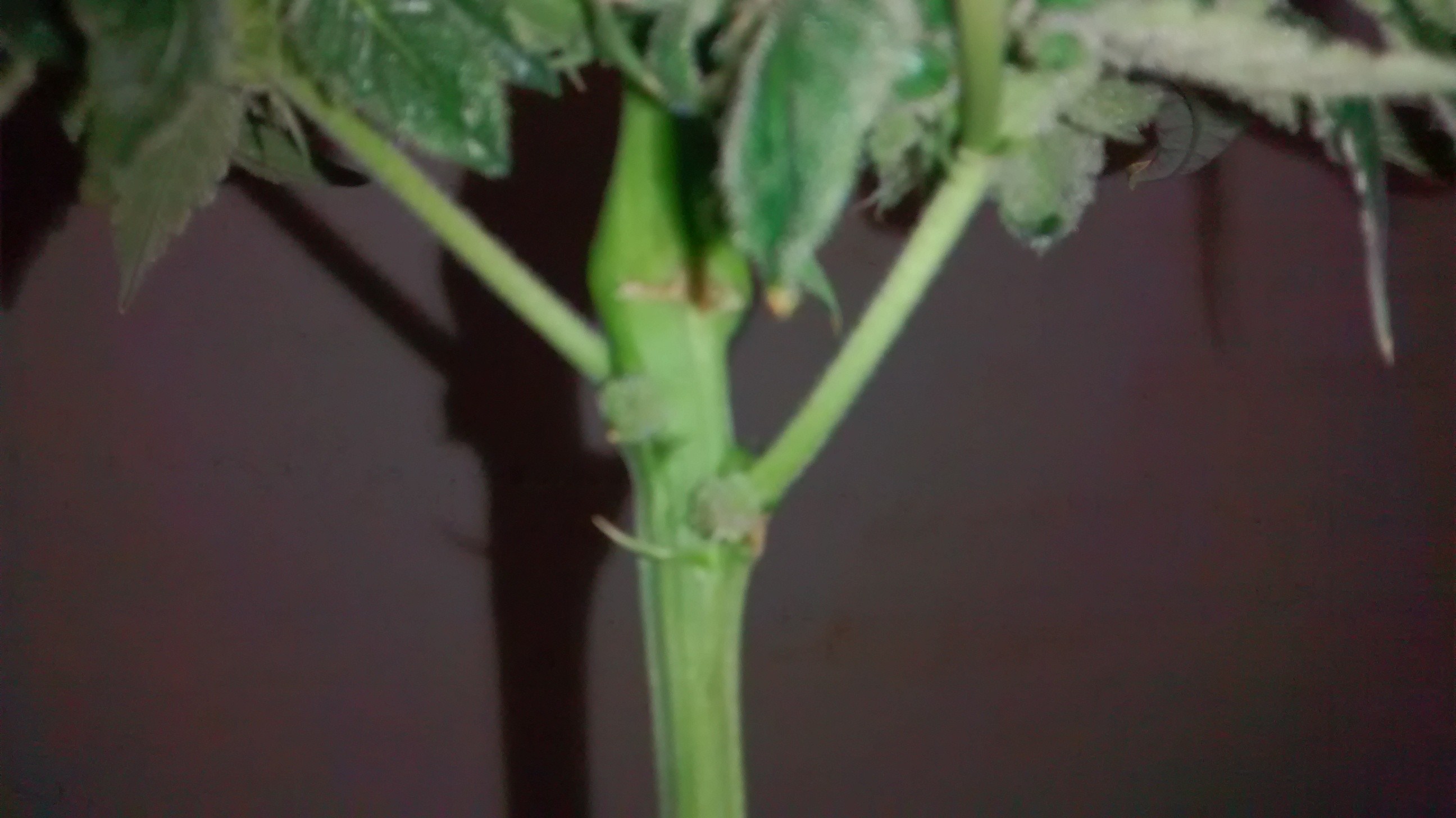 Pineapple chunk. Just missed lights off with tent open, so before any nanners show, and mh light might have stressed her. The tent was flipped to 12/12 Nov 18, was suppose to be 70 day flower cycle, long story short she got axe.original stem break,