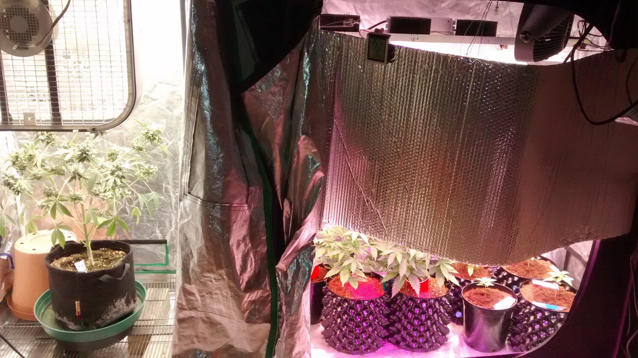 I transplanted the photo plants back on the 2nd, moved them on into 2x4 tent. Must have been some shock, day andahalf later, 2 in airpot got real droopy. I thought over water, moved them under a weak light back onto heatmat, 36 hrs later and they are back. I think transplant stress coupled with intense light made em sad. Todaythe stressed girls