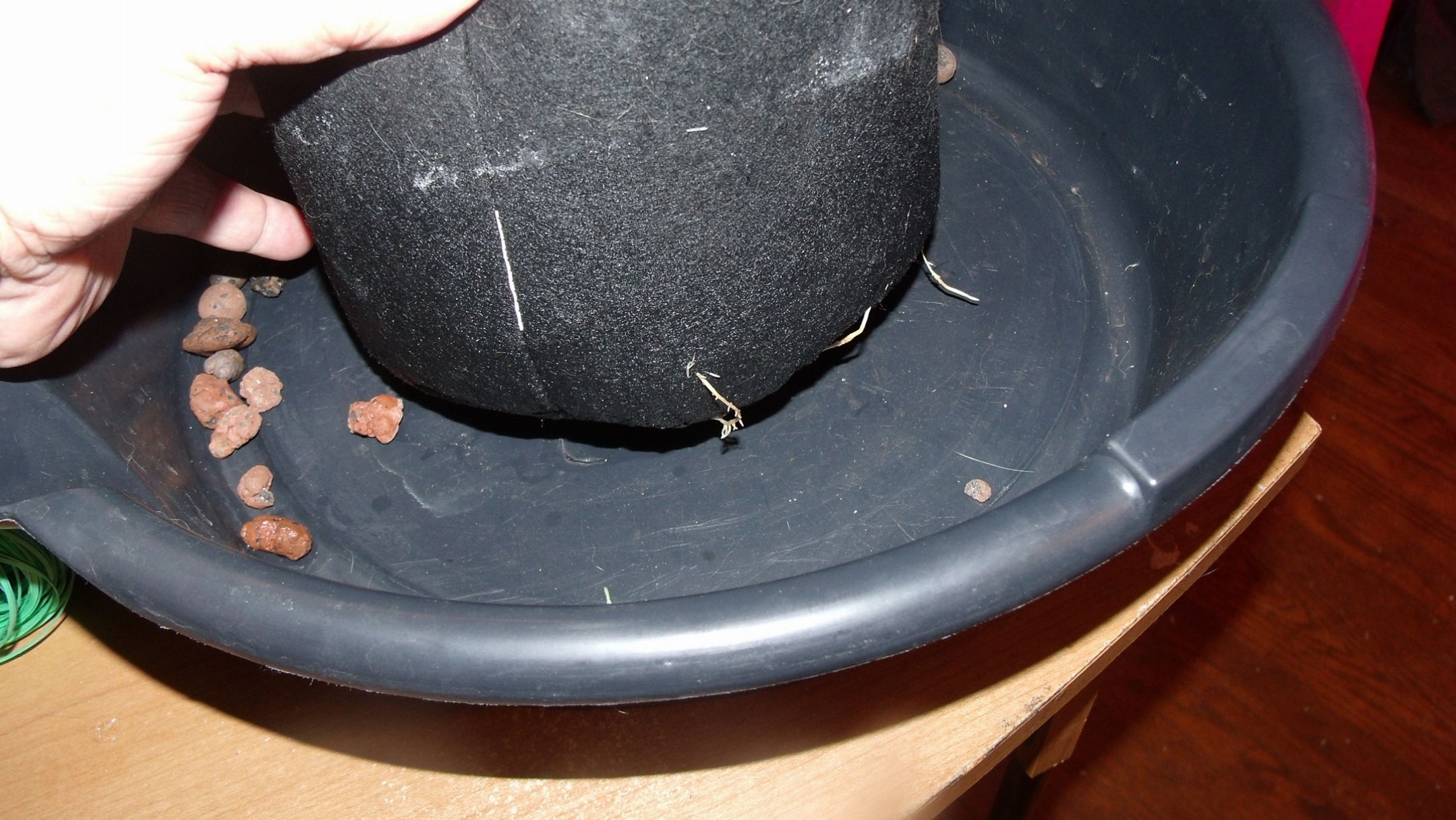 Once I have roots I place an empty rooter into a smart pot surrounded by LECA with the flat side up. I place it so it’s top is at minimum above the flood line. I place the planted rooter on top of the empty one, flat sides together, and adjust height to where I want it, making sure that the bottom rooter stays partially below the flood line. Surround and back-fill with LECA and the wicking keeps everything from drying out. I’ll pour a cup of solution on the surrounding LECA for a few days until the seedling is growing strong then I just let it go and back-fill as needed until the smart pot is full. That’s when I start my “Veg Time”