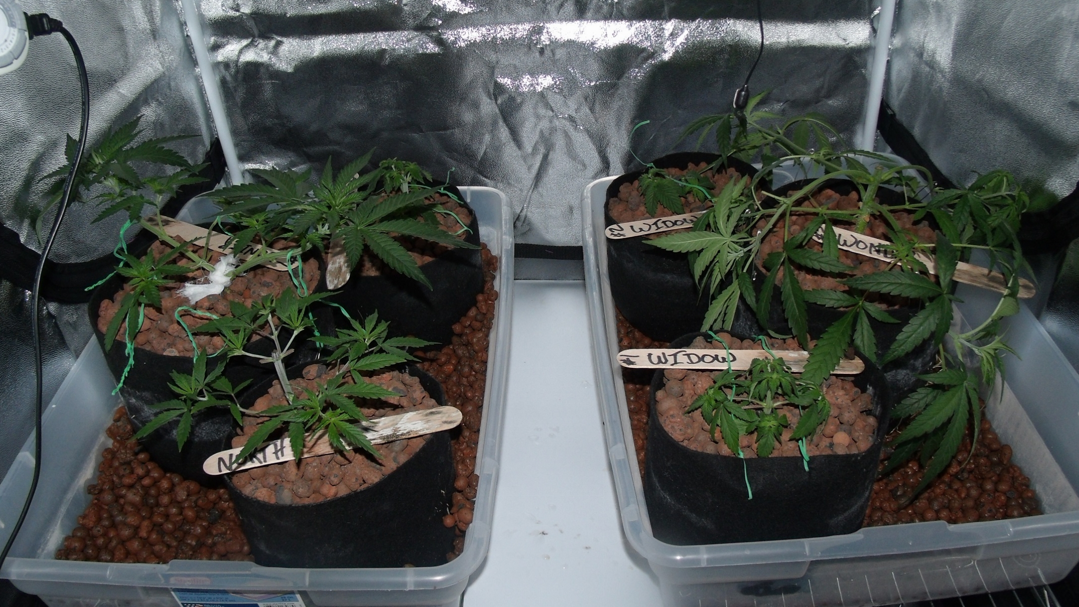 White Widow #1 and #2 - I'm really not happy with their rate of growth. I'm not sure if it's the strain or a product of these being twins from the same seed. They're a bit "pulled down" almost like over watered but not, they seem, stunted to me. Temper that with these are the first heavy indica phenos I've grown so I understand that there will be differences. I'll keep an eye on them, but I'm toying with the idea of keeping them in veg when the others go to flower.