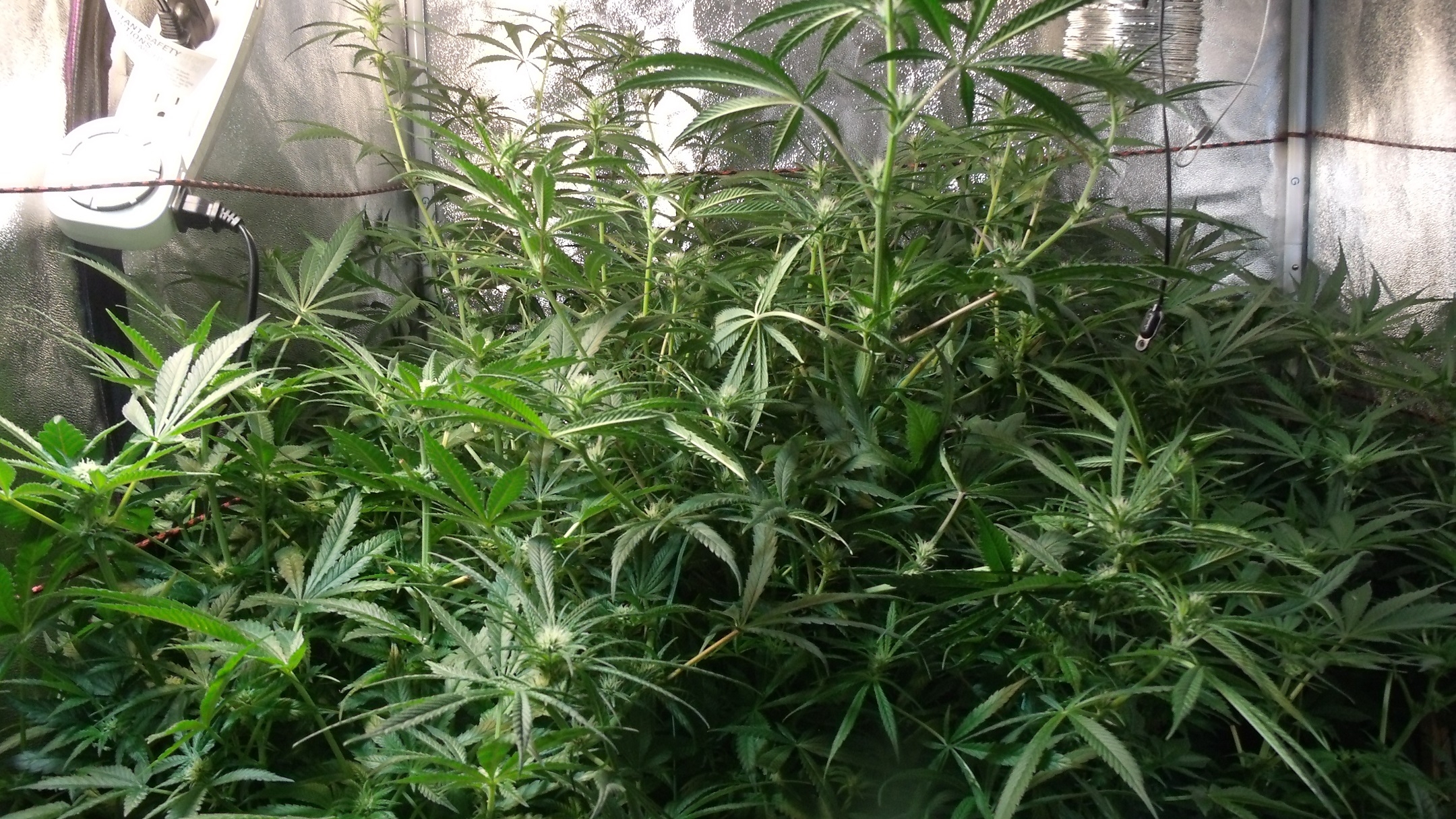 It's a jungle in there, lol. I was not prepared for the Northern Light stretch at all and that just made a difficult situation worse. I'm a bit concerned that the yield is going to suffer a bit. I knew this was a possibility and it's already corrected for the next grow so I'm just gonna keep wrestling and clipping a little here and there. I think I'll be in a good situation to try some staged harvesting, taking the top and then the middle then the lower levels, I'll have to see how that develops.