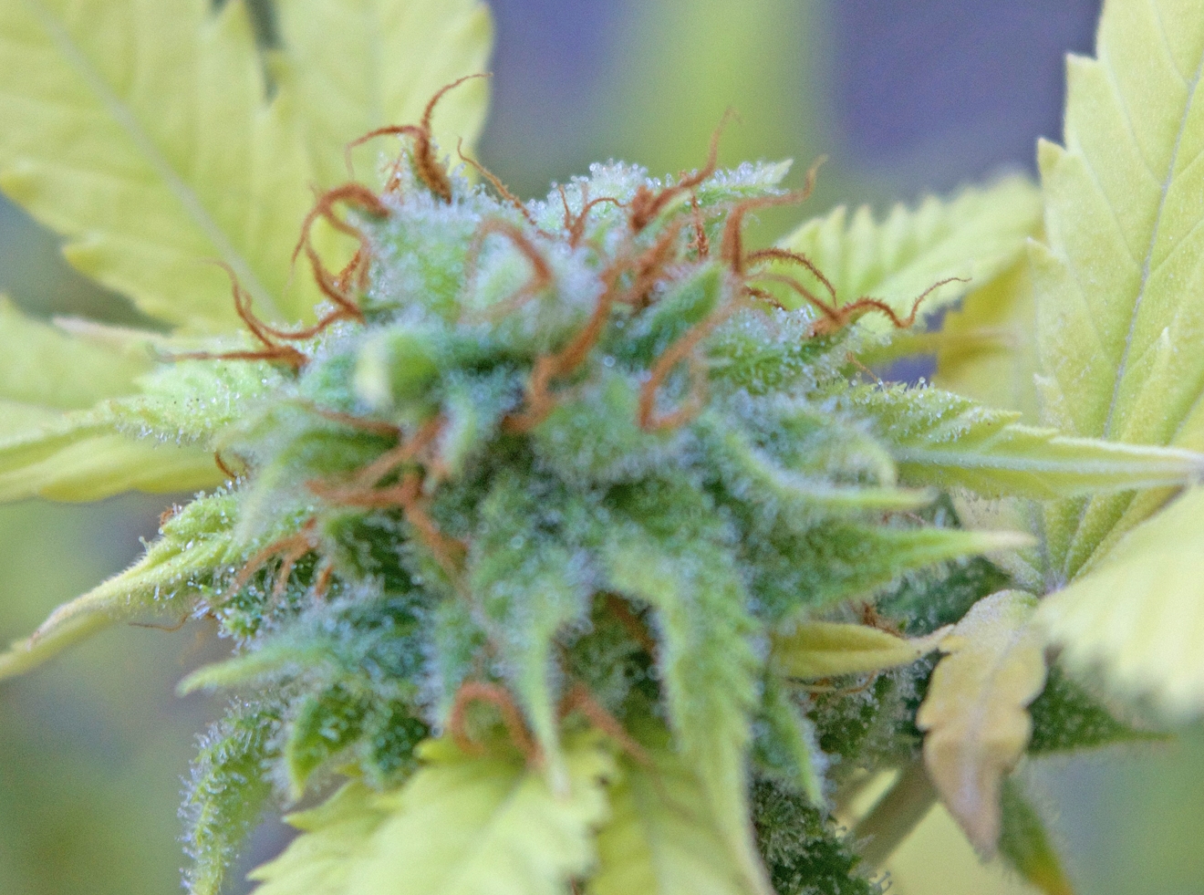 Here is a typical example of my 3 plants. They are all pretty much alike in size, form and bud spread. Been in flowering stage since mid-July. Indoor - 78° average temp with a slight breeze under a 400 watt HPS set at medium intensity. My space is too small. Tallest plant has buds about 12" away from the light - the others more in the 14" range - but I have run a net across so that none can get closer to the light.