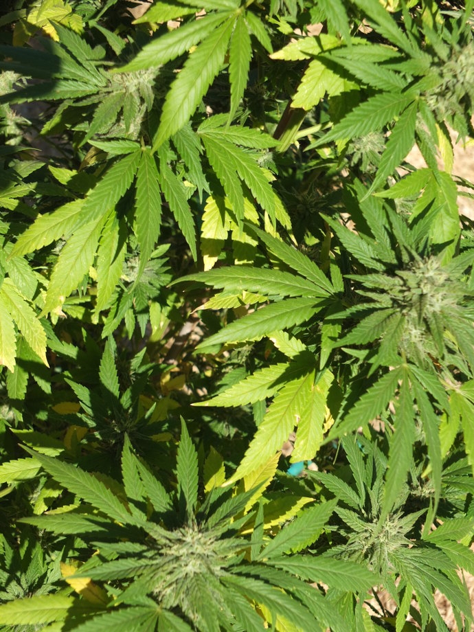 The plant is my sole surviving Aurora Indica Feminized after three were killed by the hellish, record heat and wind of the past few months -- sometimes110° to 115°. That even one made it through is a miracle. I worked myself half to death to save it.