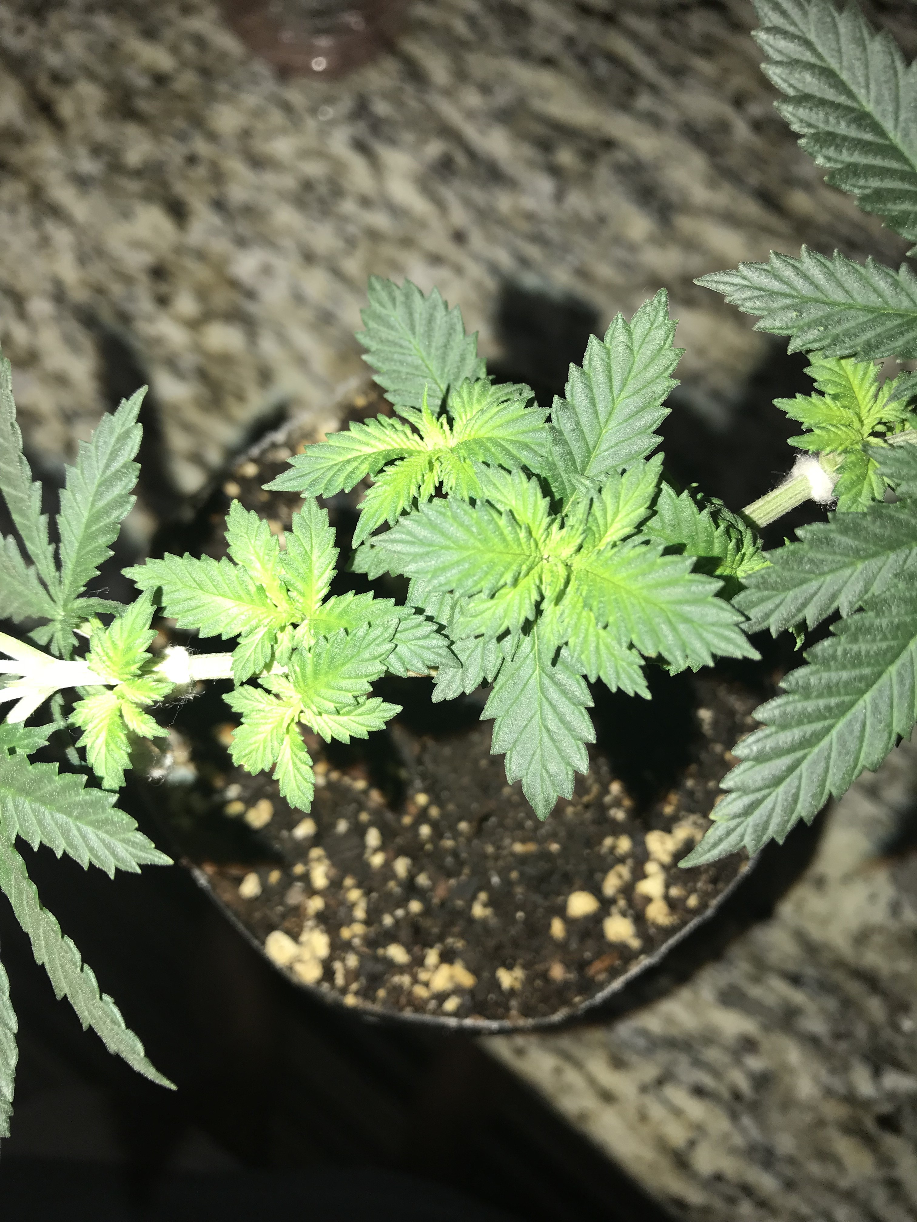 I recently started growing my second grow and ended up getting some feminin seeds this time around. I have a Special Queen #1 and a Canuck Bubba Kush. I am growing in Fox Farm recycled soil from my last grow. In a 3x3x5 grow tent with a 1200 Watt King Plus LEF Light. So right now I’m growing the plants in small containers first in order to develop a stronger root system and gradually transplanting the plants into bigger container until I get to the final home fore them. So right now I have been having issues with my Bubba Kush, but let me be advised that I feed both plants the same (big bloom and grow big). So My Bubba Kush I noticed at first started to grow deformed leaves but then it went away but from the start I’ve been noticing that the leaves end up developing brown spots and sometime tips. So what I thought maybe I nute burn them so I flushed them but same thing occurred again. And then I thought it was windburn so I turned my osculating fan around toward the wall of the tent and the same thing is happening again. So I’m thinking it might be a cal mag deficiency or it might even be genetic? And my other special queen number one is perfect nothing bad going on with her. Do you guys have any ideas of what this issue could be?? I have attached one image of my Special Queen and a couple of the Bubba Kush and it’s spots coming out again.