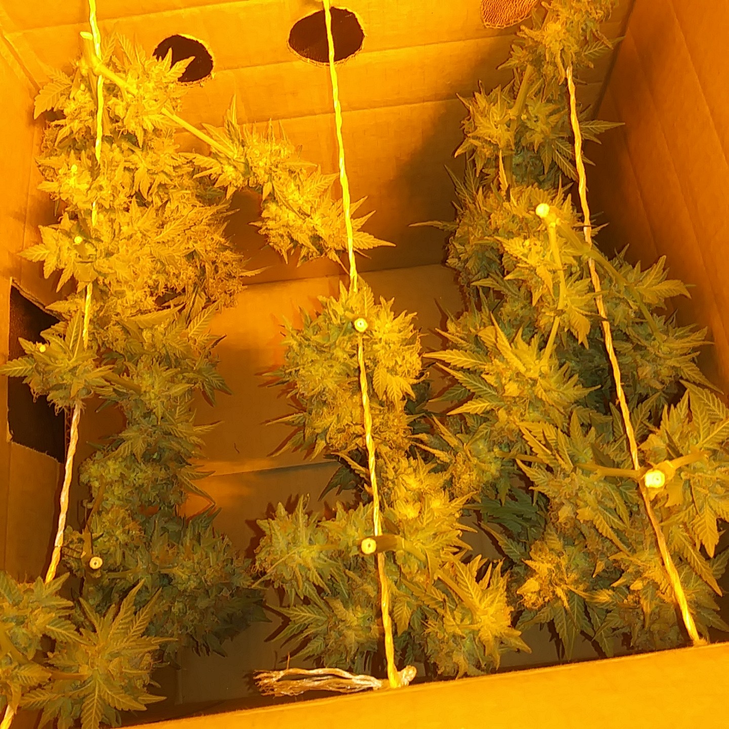 So my question is any advice on how much leaf matter i should leave on. My humidty levels vary in my tent between 37%is the lowest when lights on and 71% when the lights go out but it more stays around 45% RH. Iv made a box to hang my buds in and set in the cornor of my tent so id like peoples knowledge and experience so i can make the best educated guess on how to dry these buds out as they look prettier than anything iv ever grown befor. So just wanting to be extra careful.