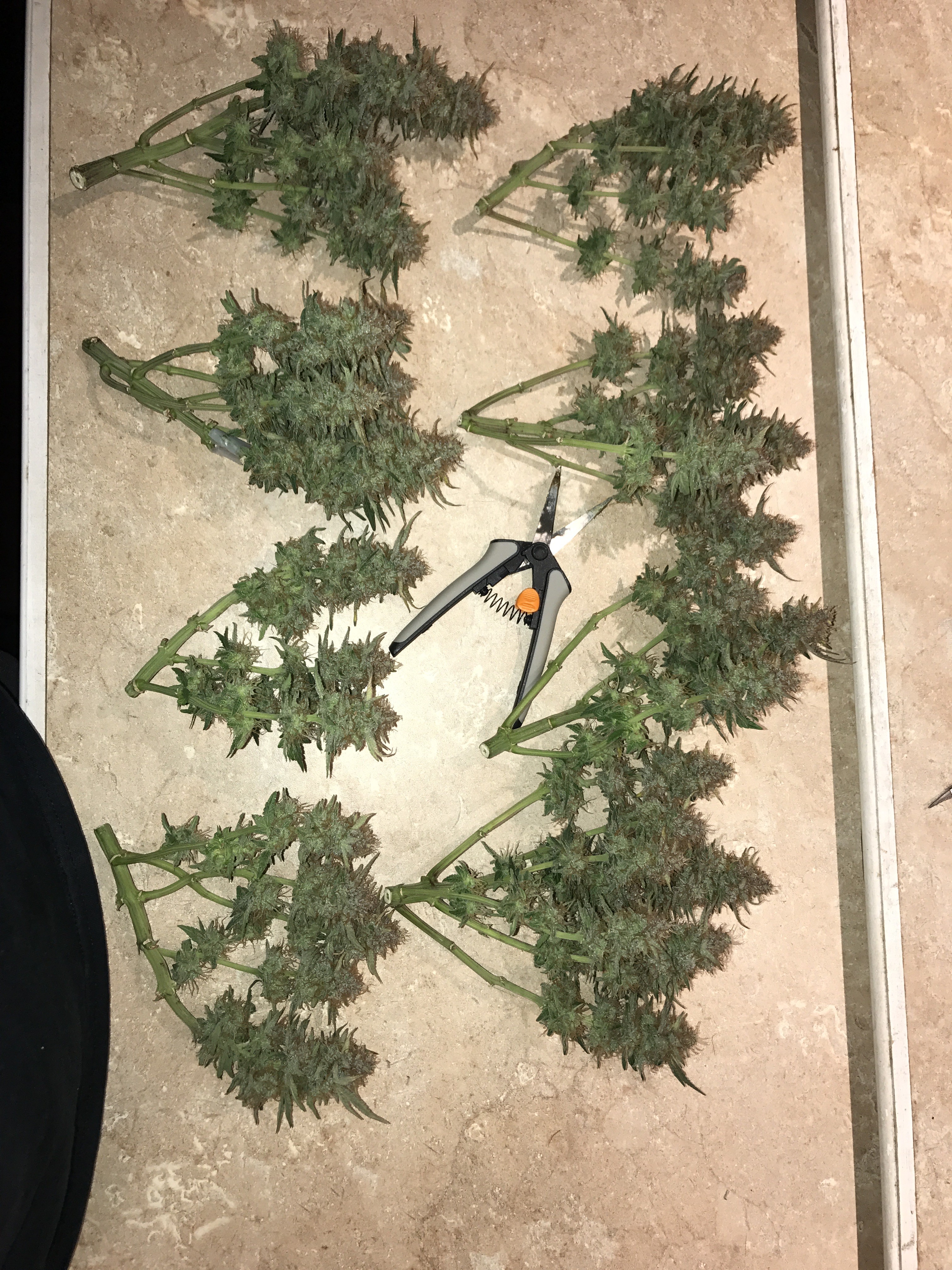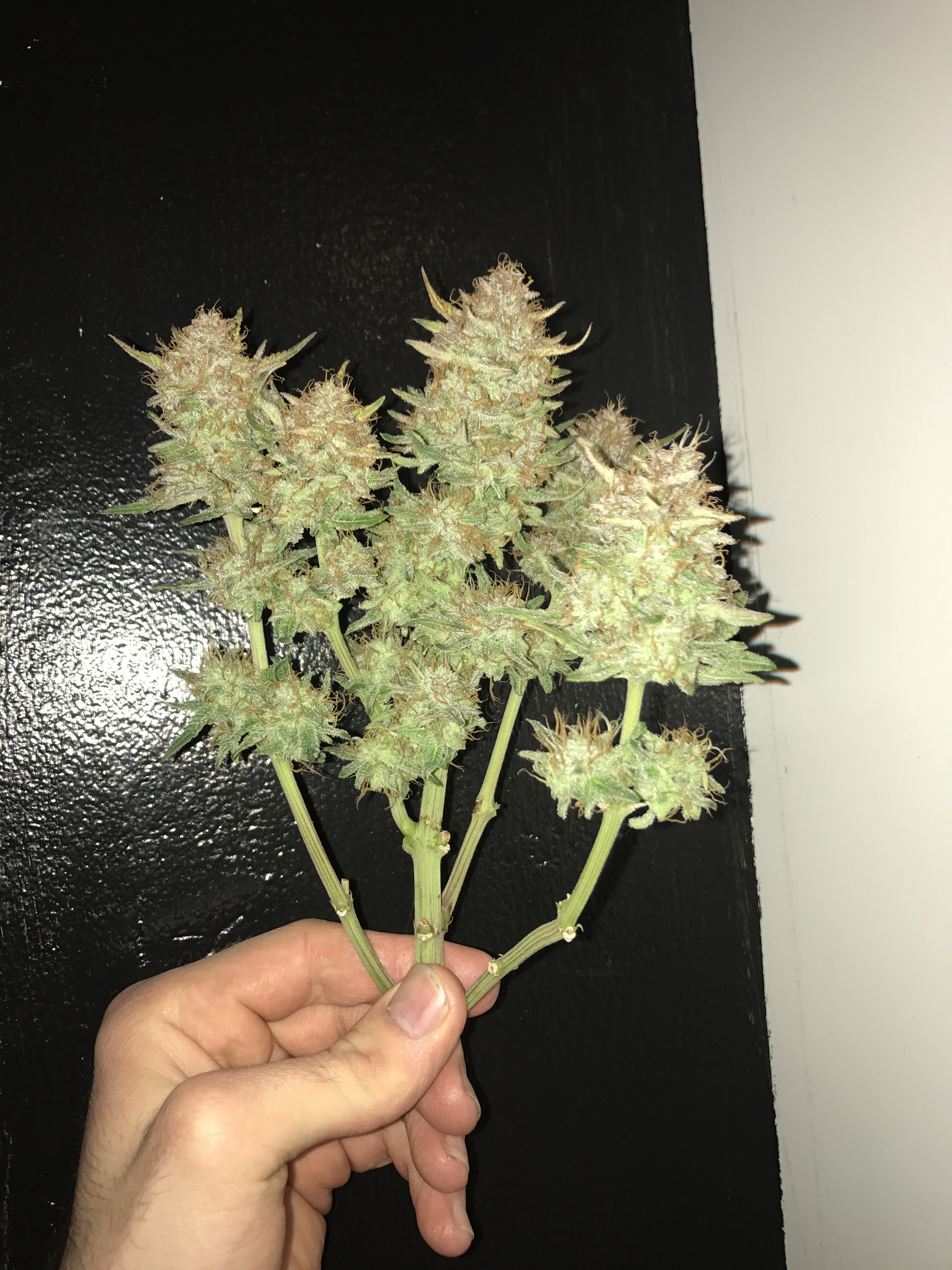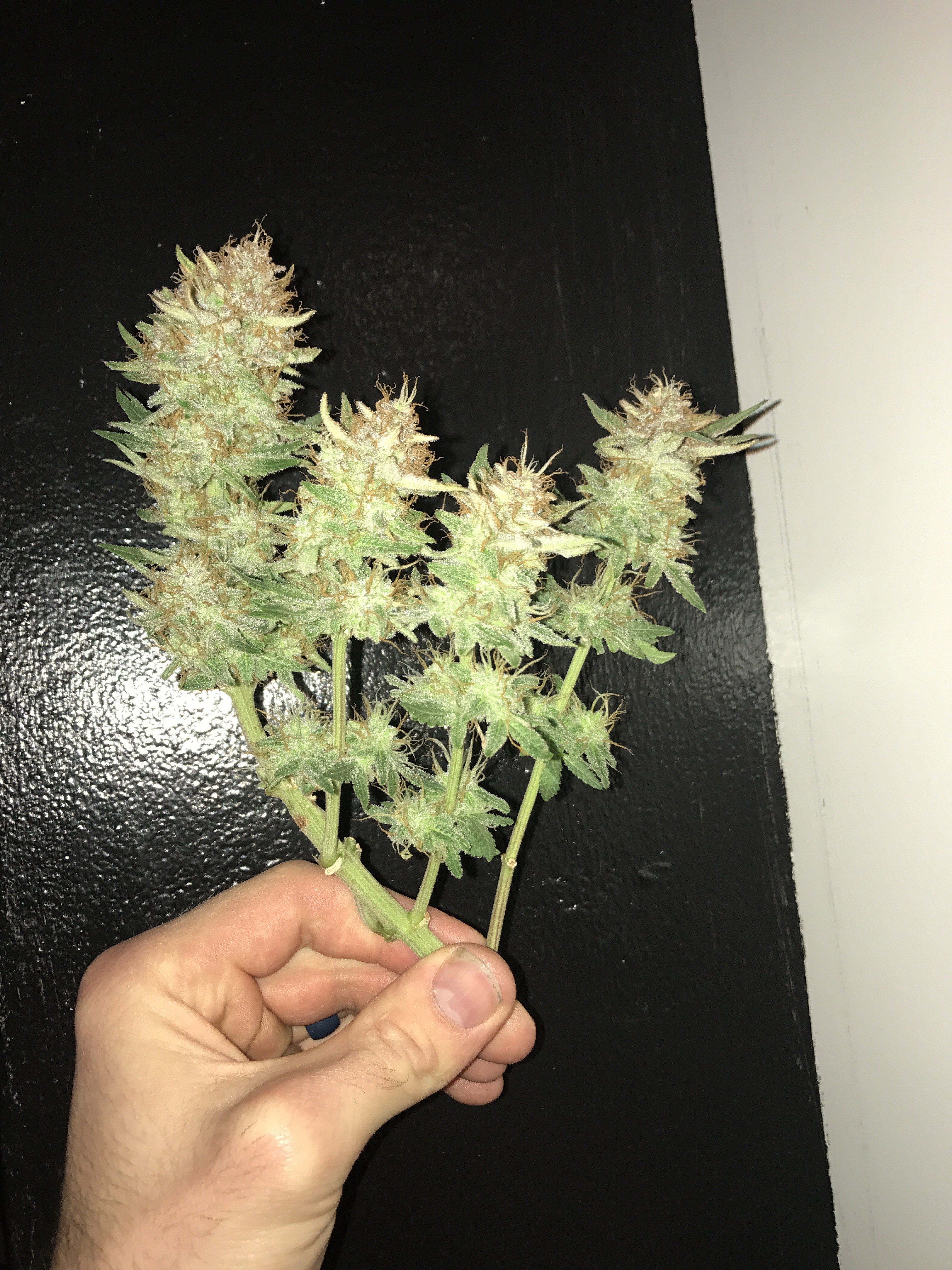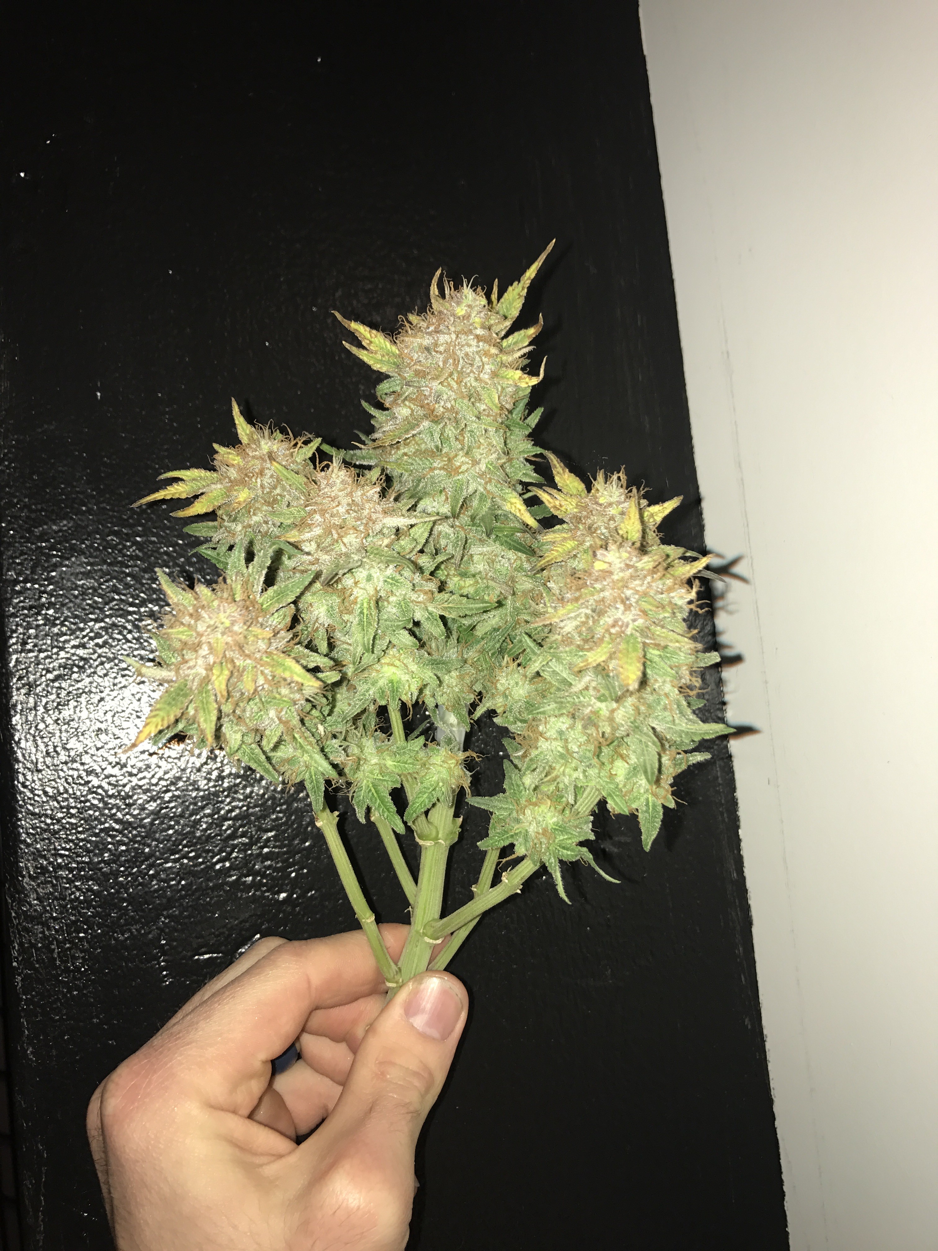 Chopped down the bigger Bomb last night. 280g wet. If I lose 70% after the dry I'm still looking at 3oz which is a win in my book. The smell is a lemon citrus with a strong diesel. I did put a little bit in the vaporizer and while it had that grass taste the high was a super heavy head and body stone. For sure bedtime weed. I haven't been that couch locked in a long time. Come hell or high water the smaller one comes down next week.Current grow: