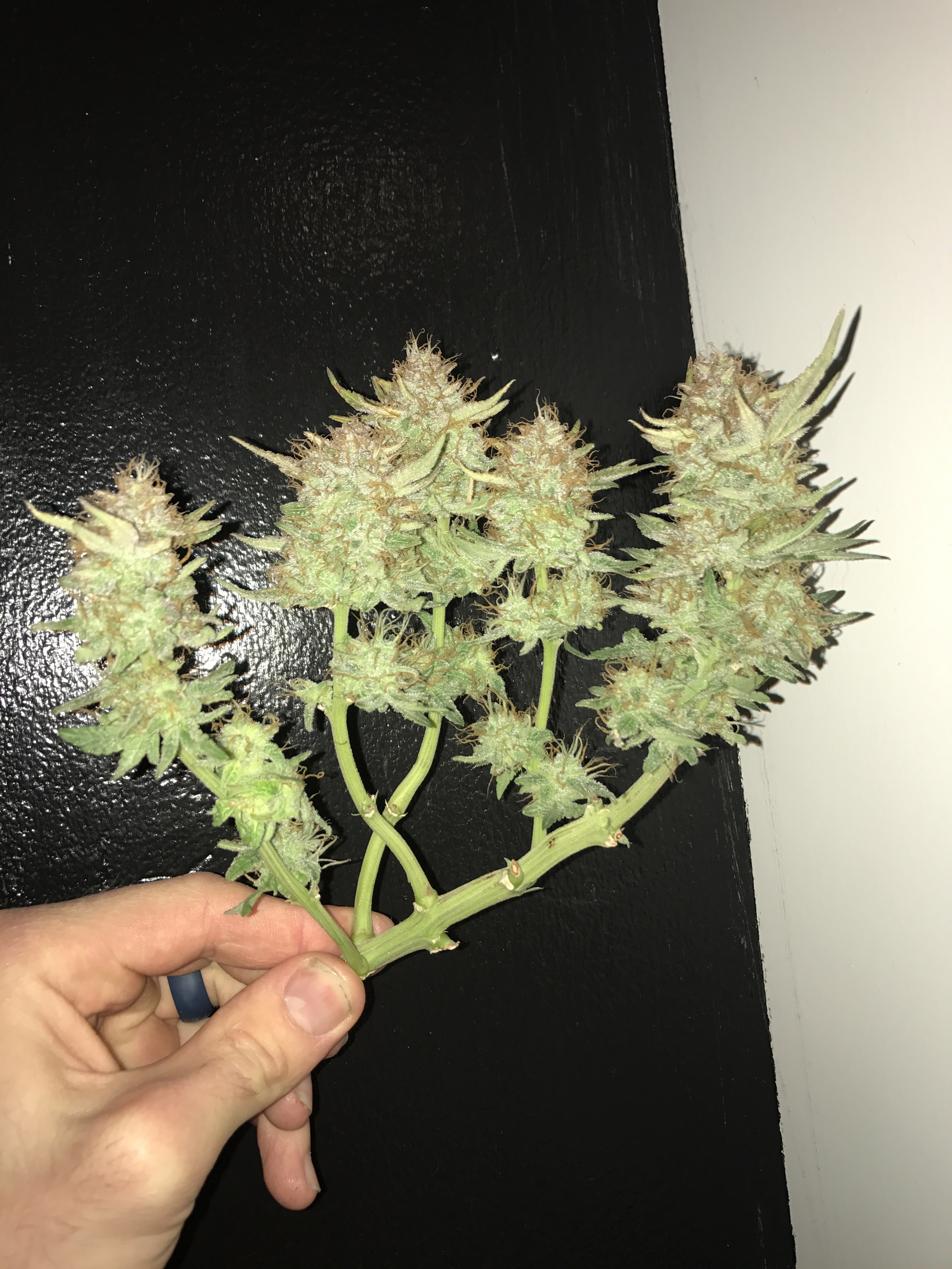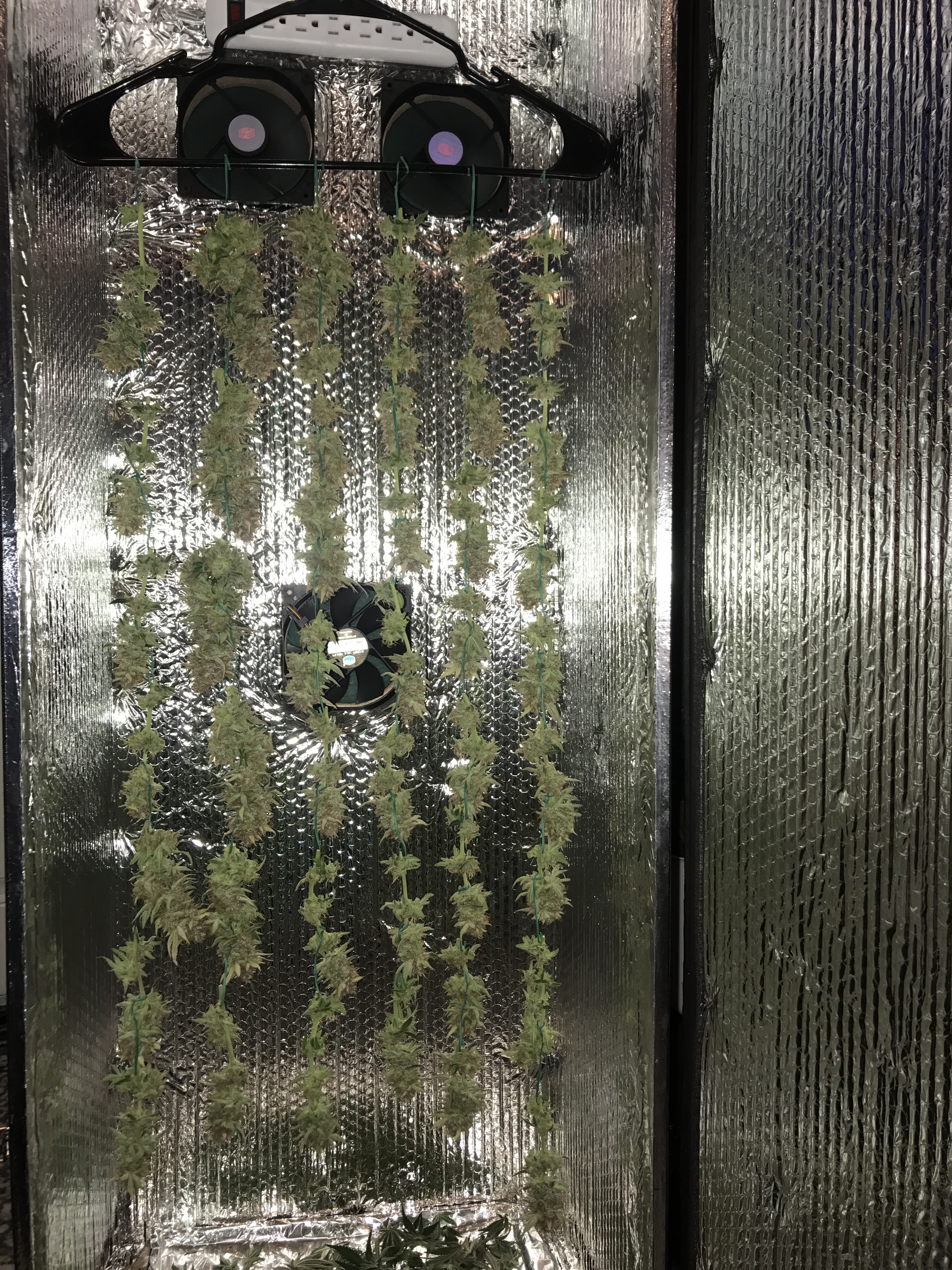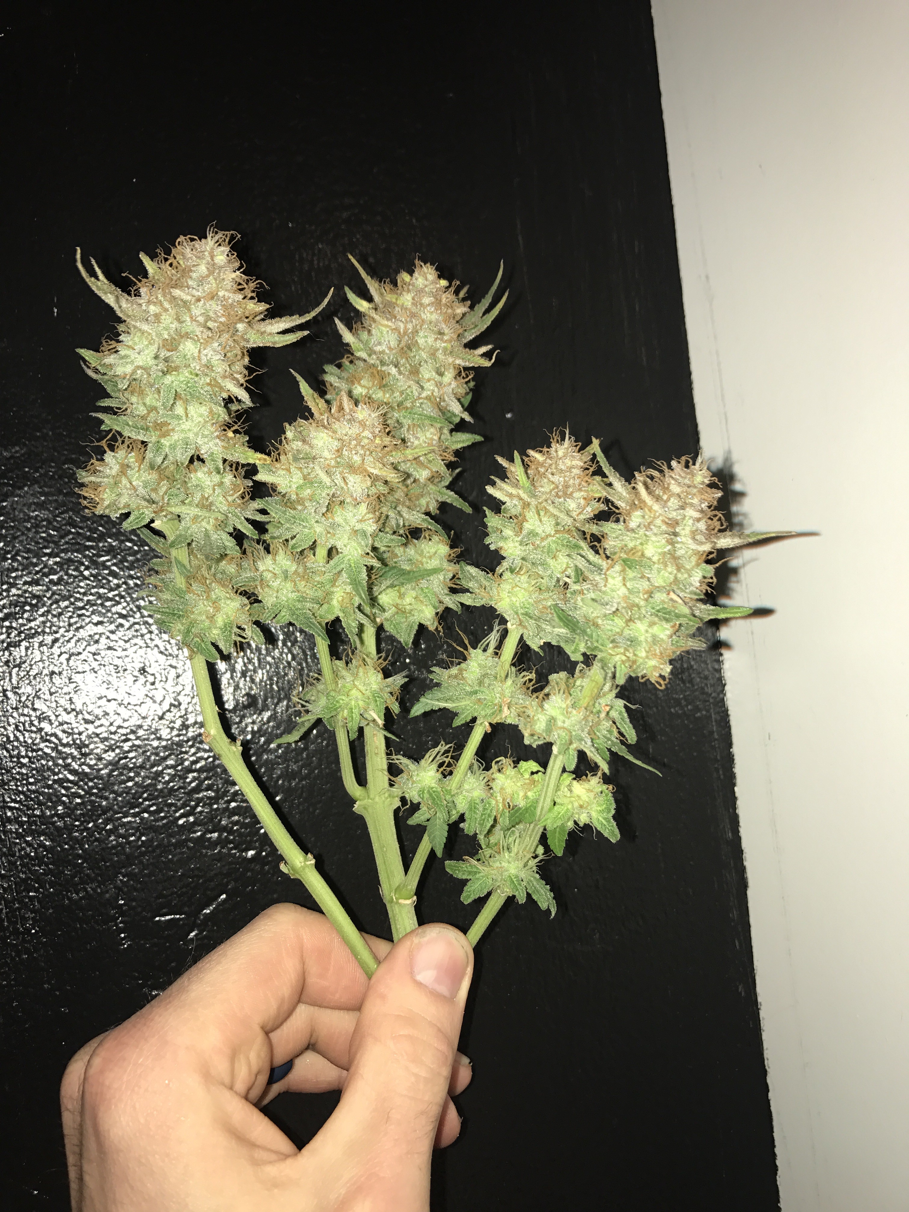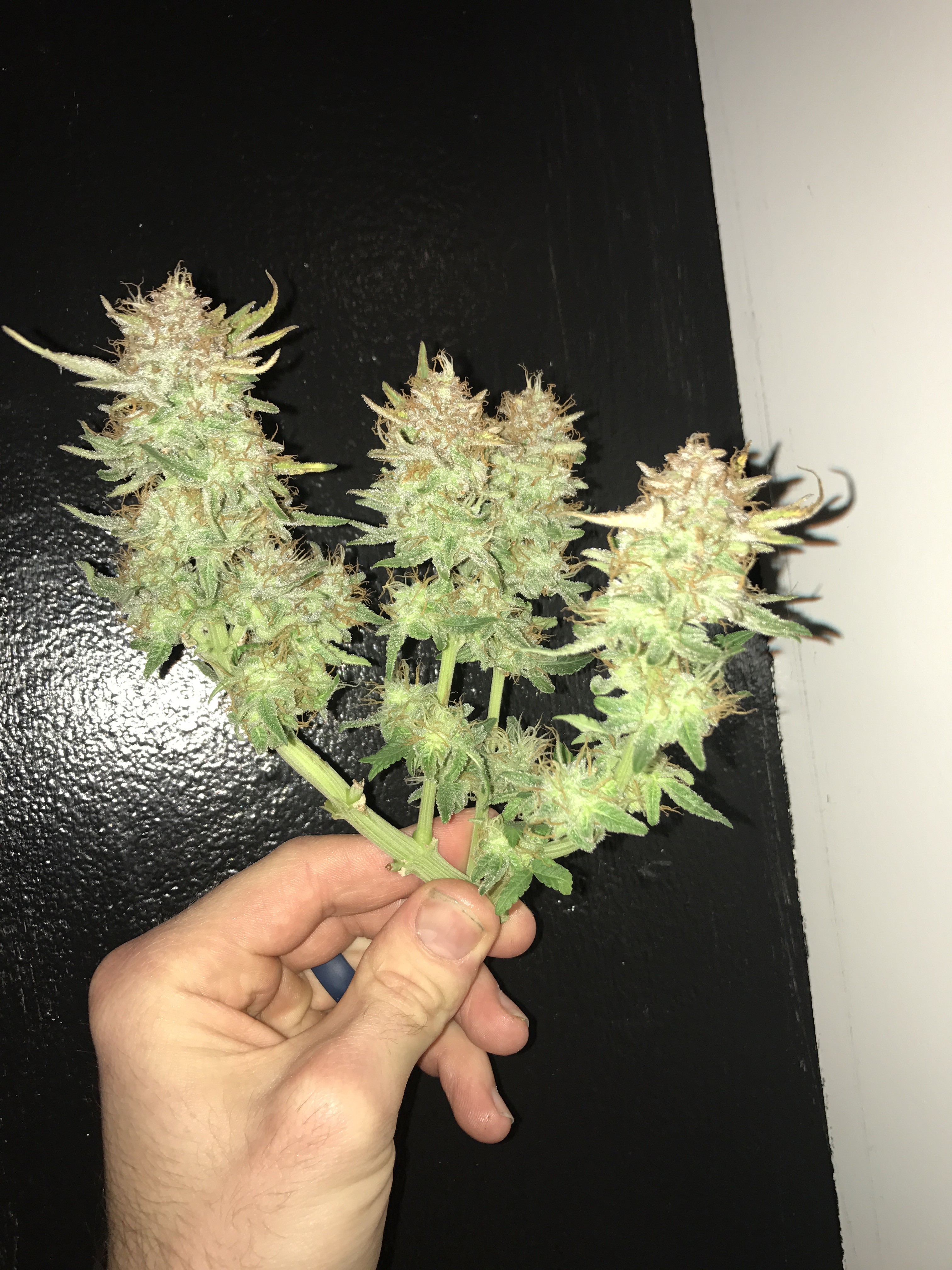 Chopped down the bigger Bomb last night. 280g wet. If I lose 70% after the dry I'm still looking at 3oz which is a win in my book. The smell is a lemon citrus with a strong diesel. I did put a little bit in the vaporizer and while it had that grass taste the high was a super heavy head and body stone. For sure bedtime weed. I haven't been that couch locked in a long time. Come hell or high water the smaller one comes down next week.Current grow: