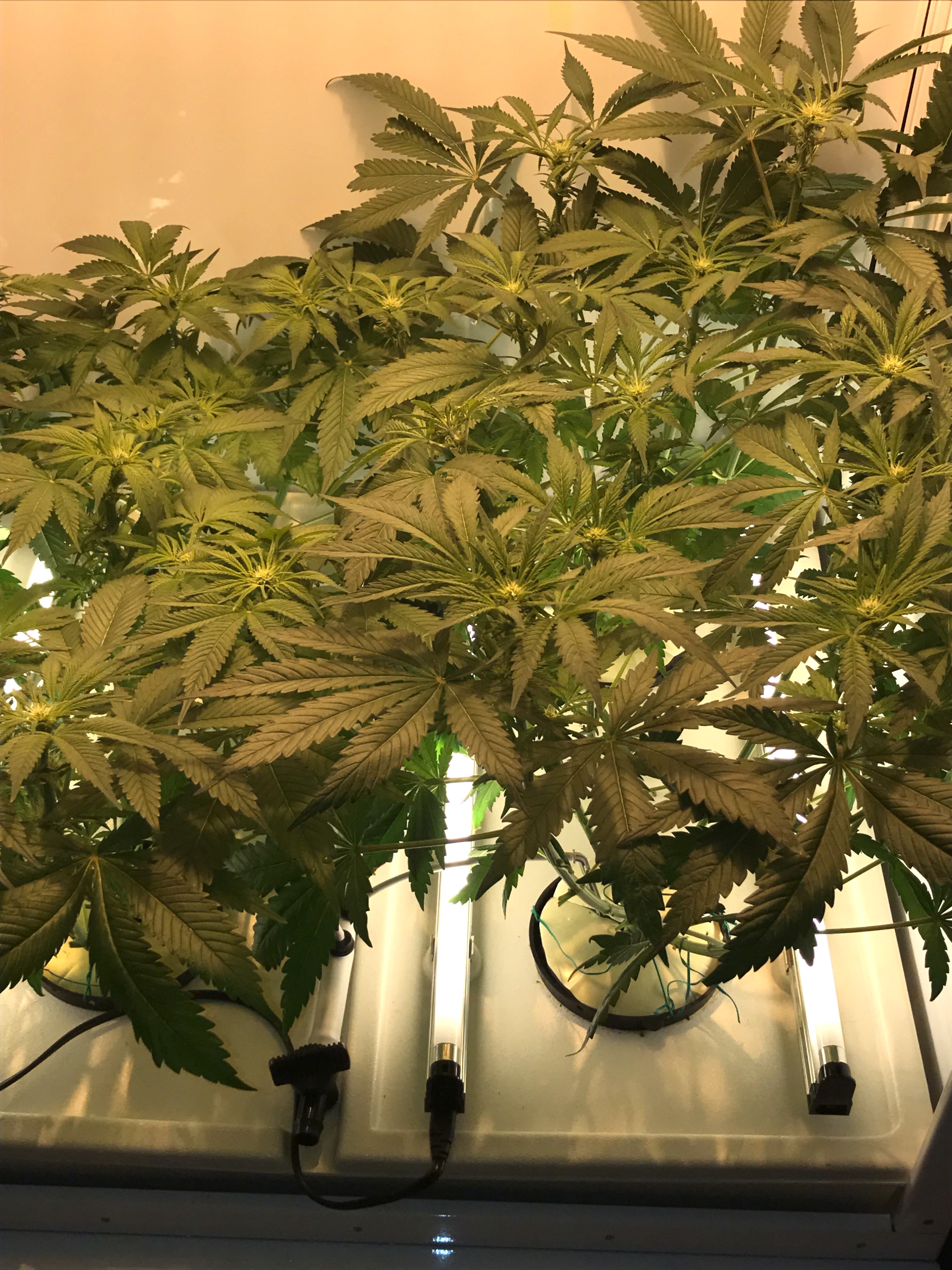 POKEDSMOT No manifold, just one topping during veg. I end up with six colas per plant growing. I cut down one cola on Mazar (left rear) because it was never going to catch up to the other colas, so there's 23 colas in there.