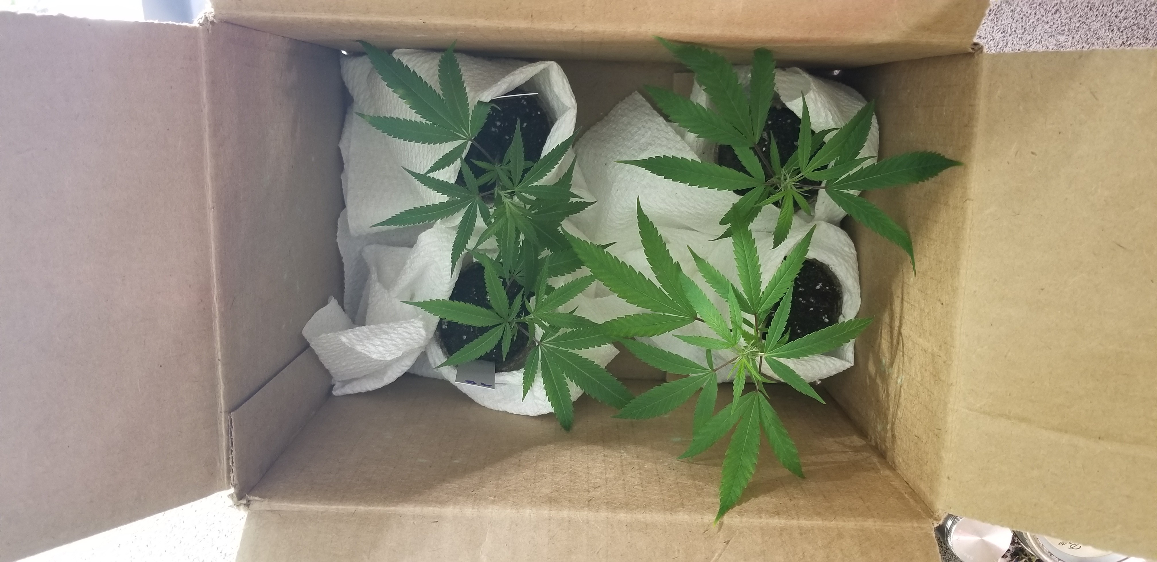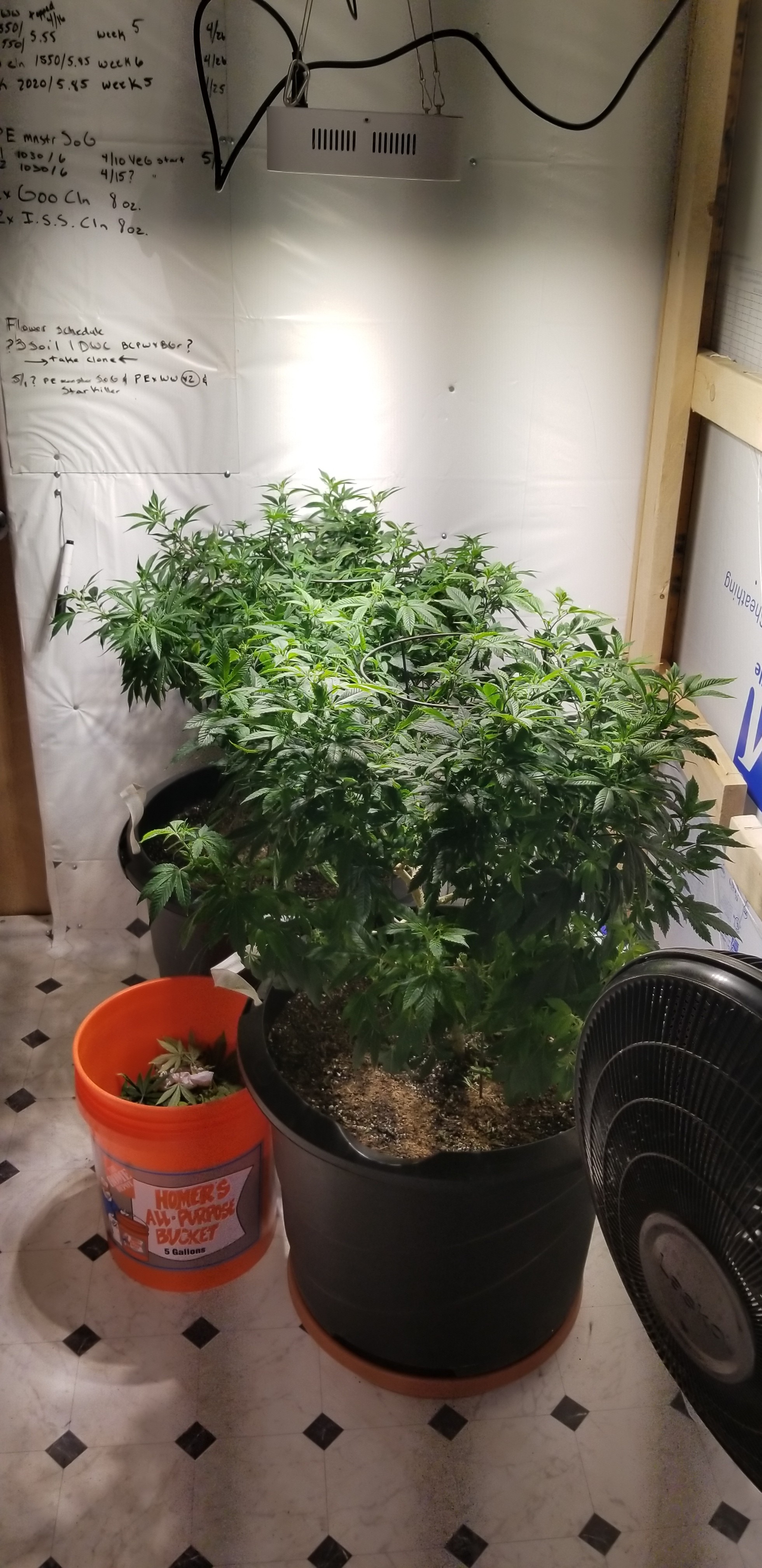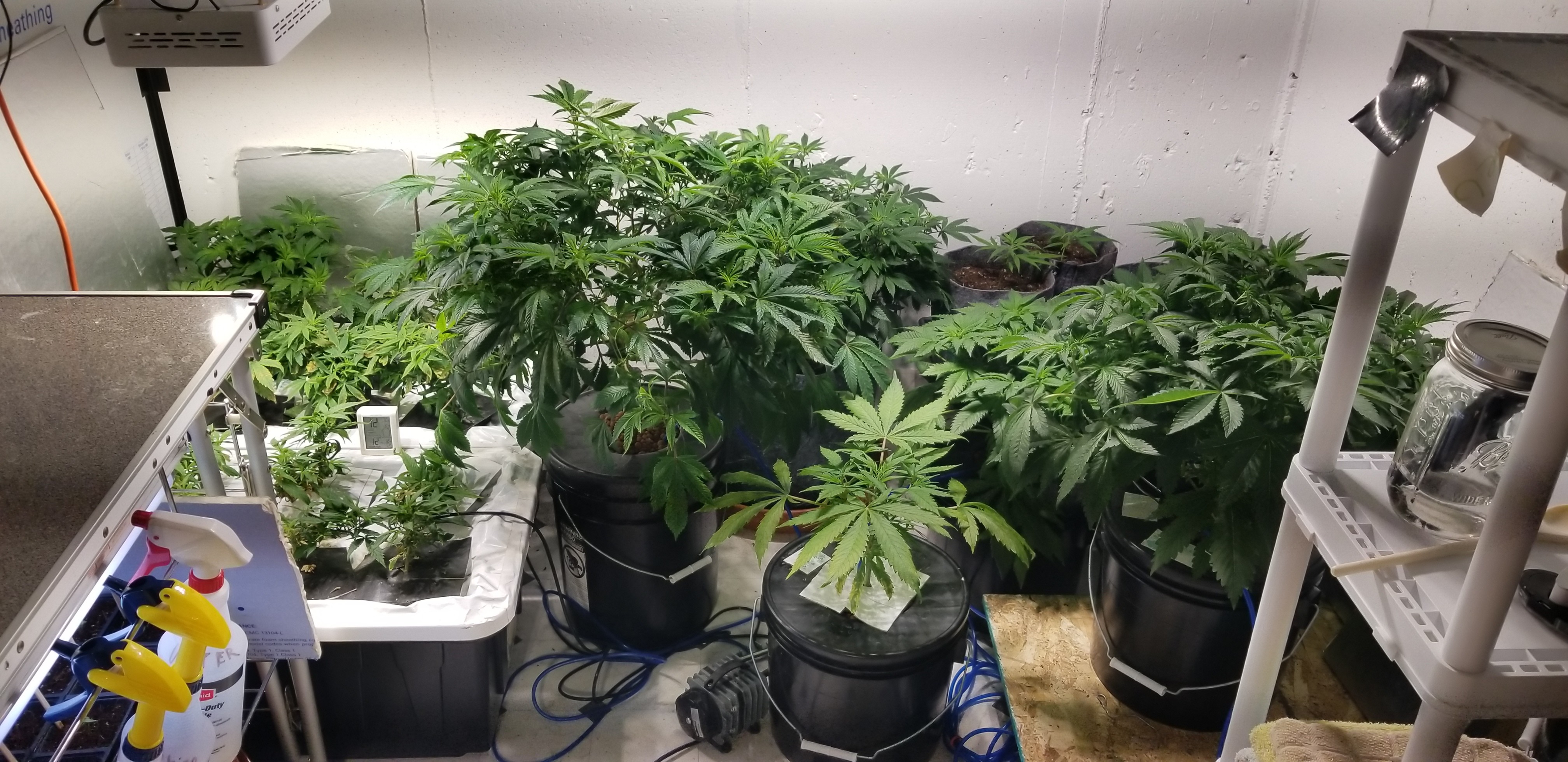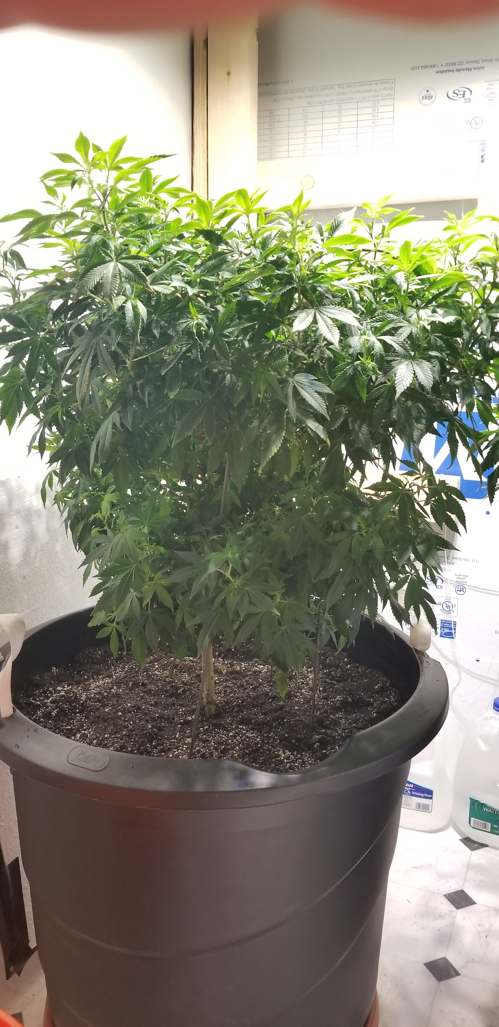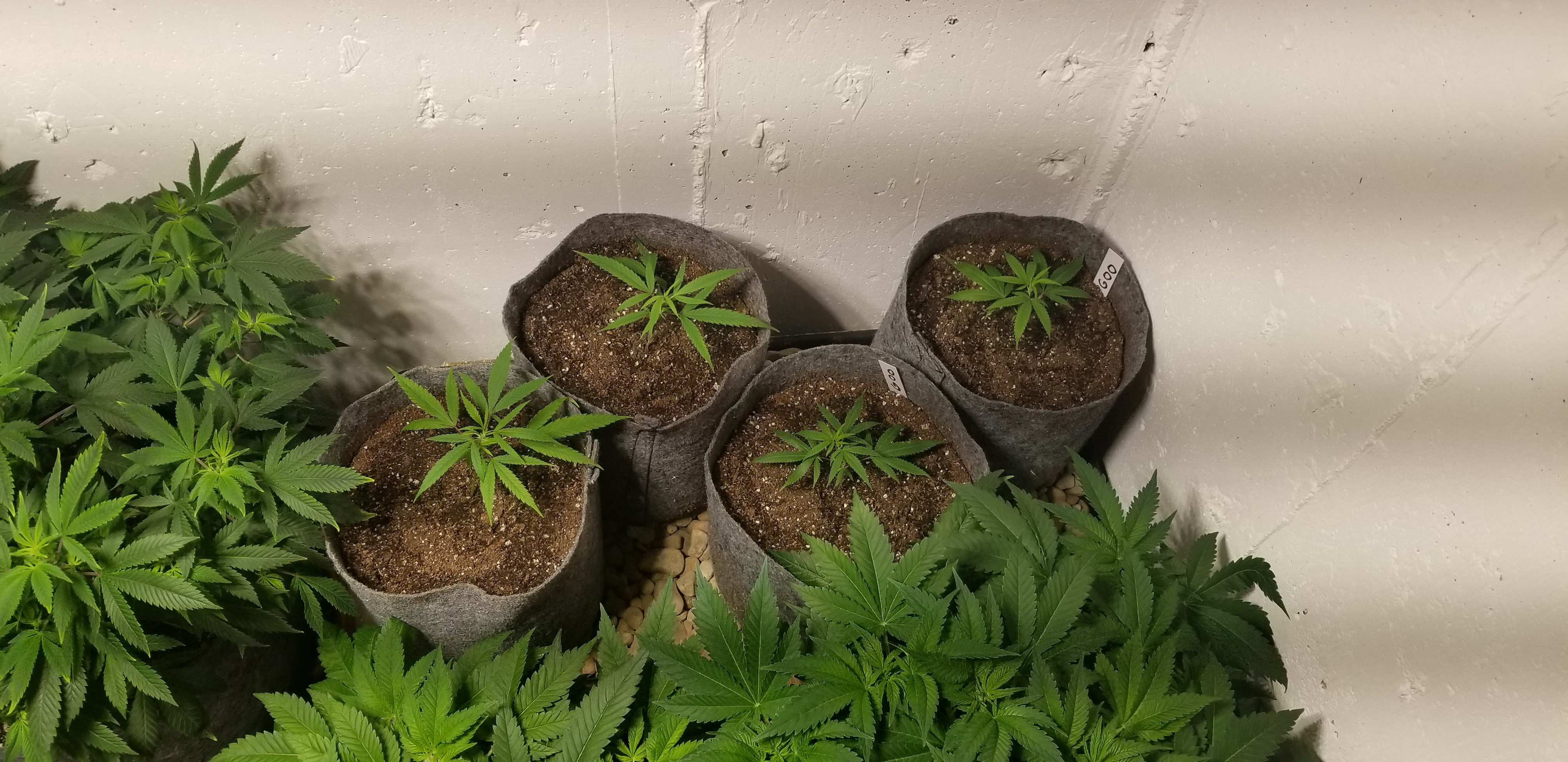 2 Solo cups ewc, vermiculite, peat, and equal amount of composted soil. Put this mix around the root area and filled the rest in with my soil mix. Top dressed with 1 tbsp of neem cake each for pests. Water heavily but no run off. Moved the 2 17 gallon over to the opposite side of the room with the 175 watt Vero light. 7 gallon stayed with the others.