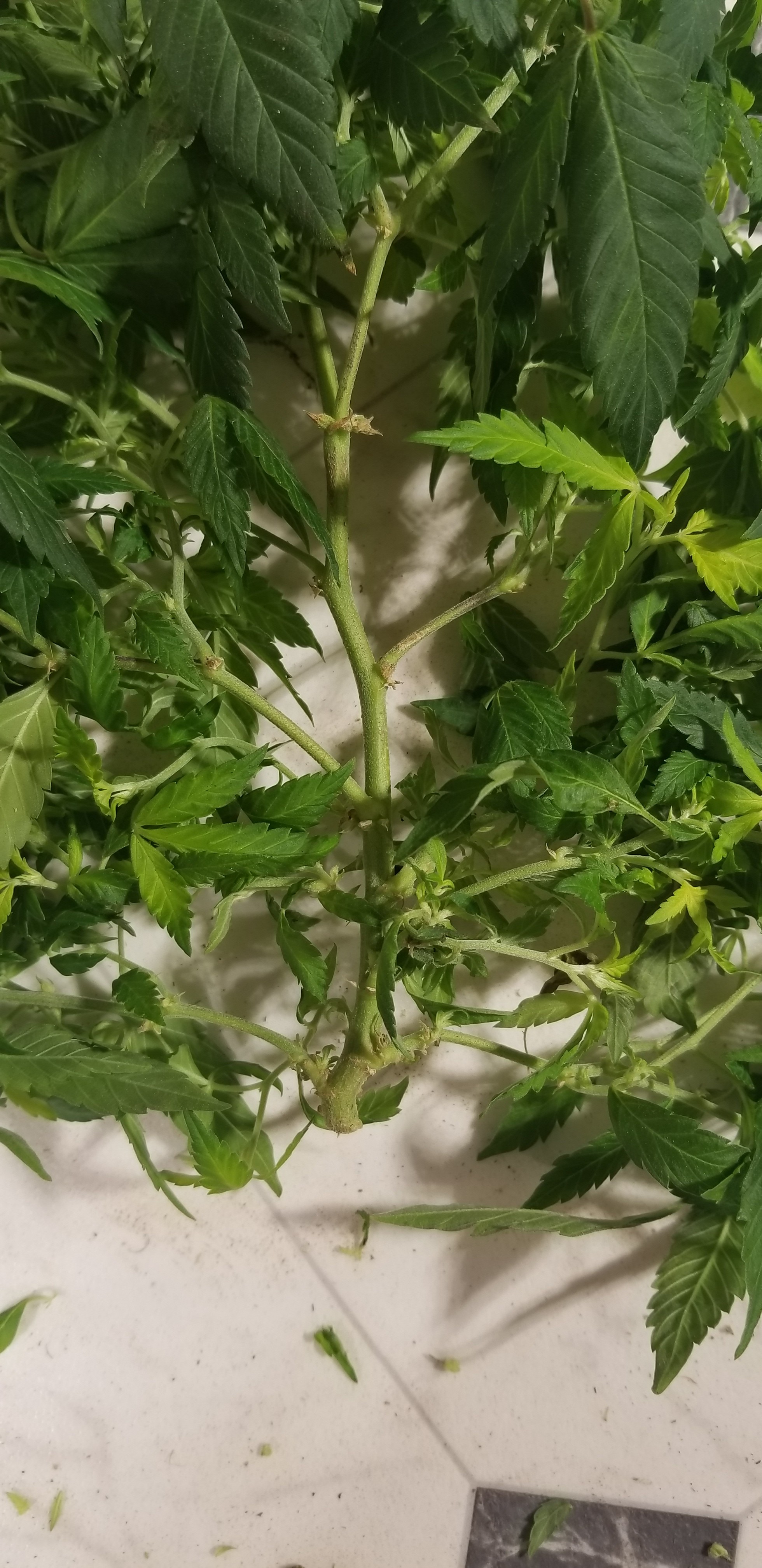 Broke down and transplanted the two monster cropped BCPWxBGr's into my 17 gallon no till planters. They needed it bad....I had to peel the fabric pots like a snake skin. (Probably why I was having problems with them recently) I did the same for the smaller one of the same strain, although that was in a 3 gallon not 5. That one went into a 7 gallon fabric pot. I mixed.....