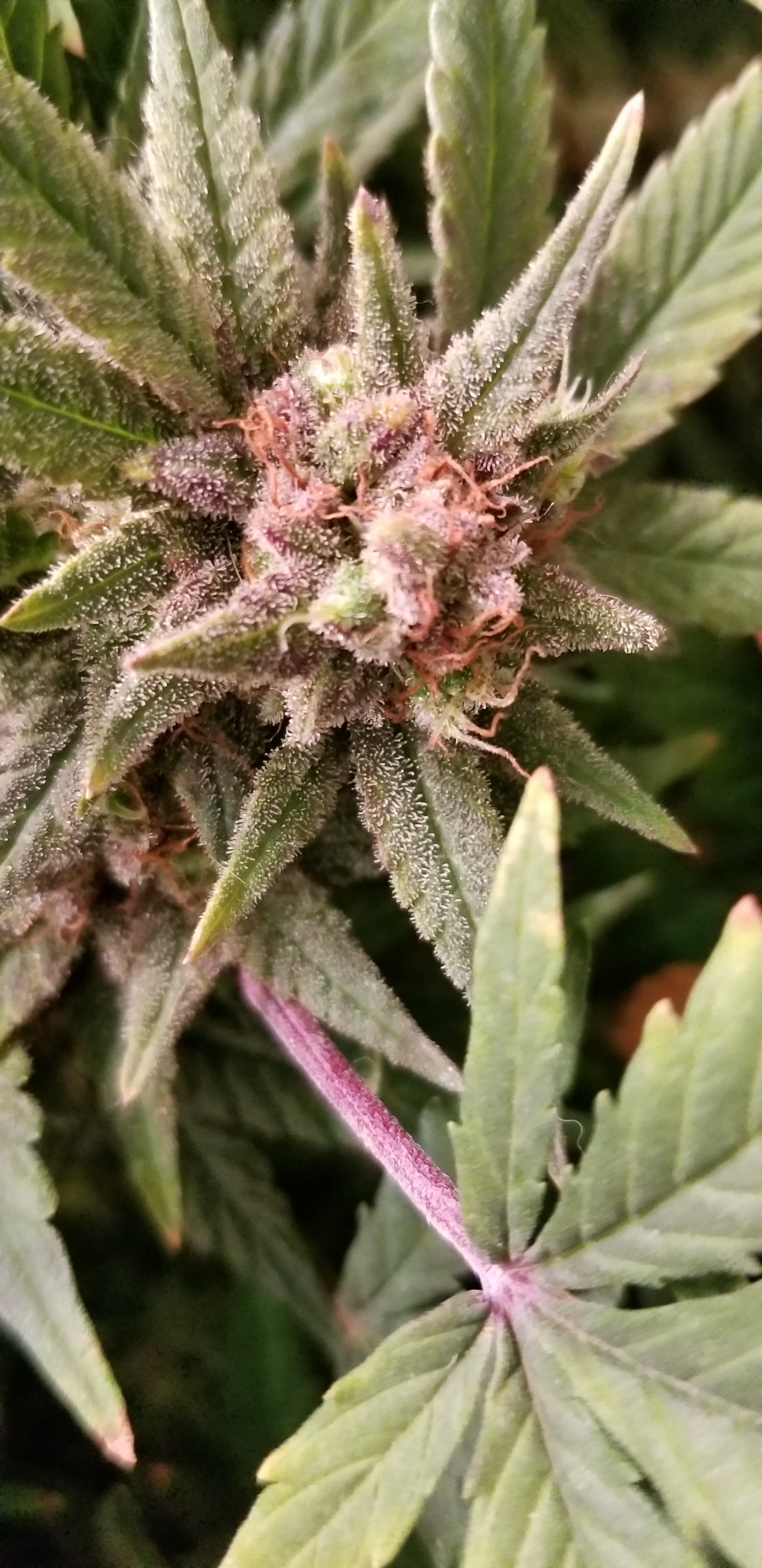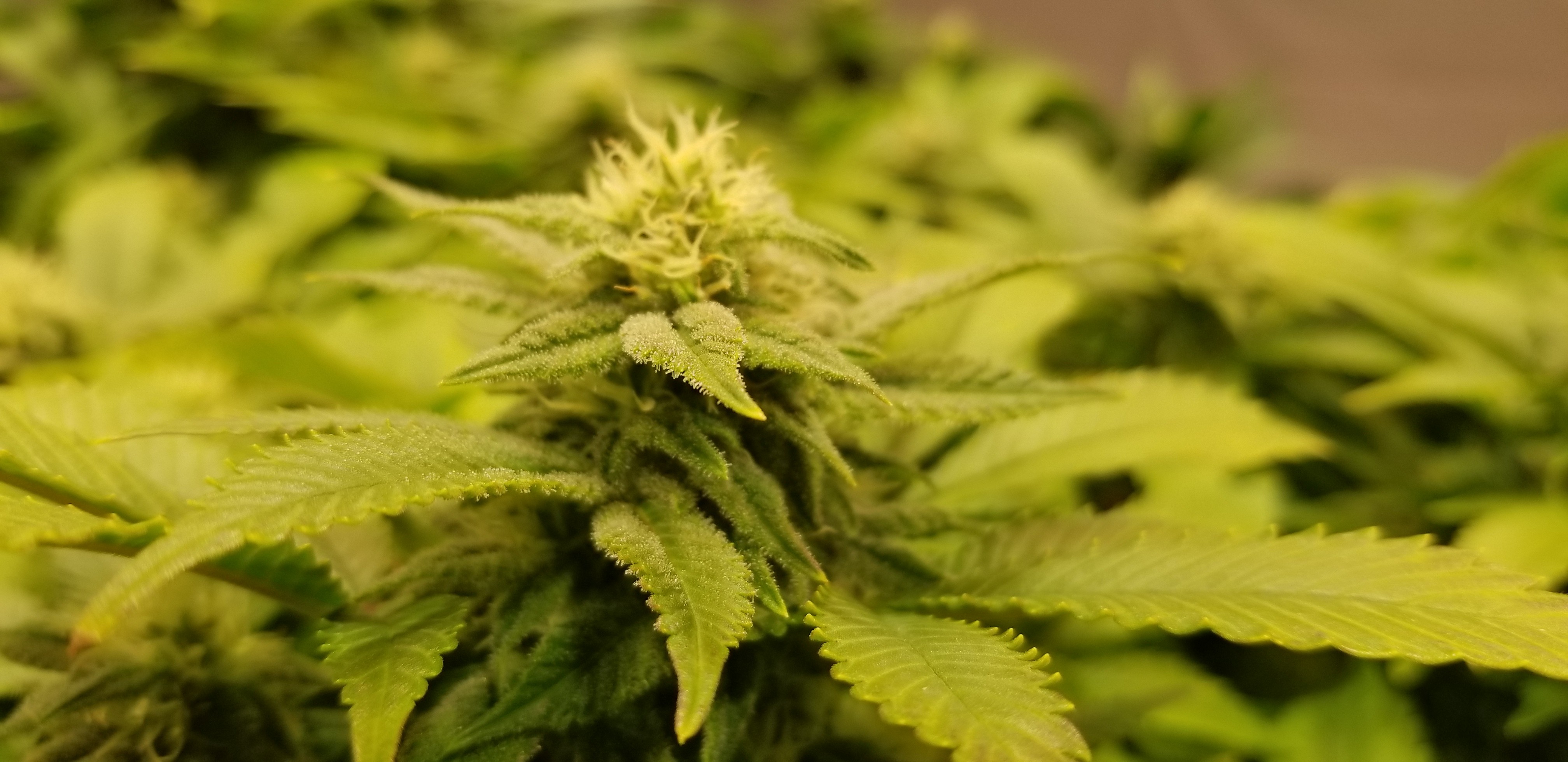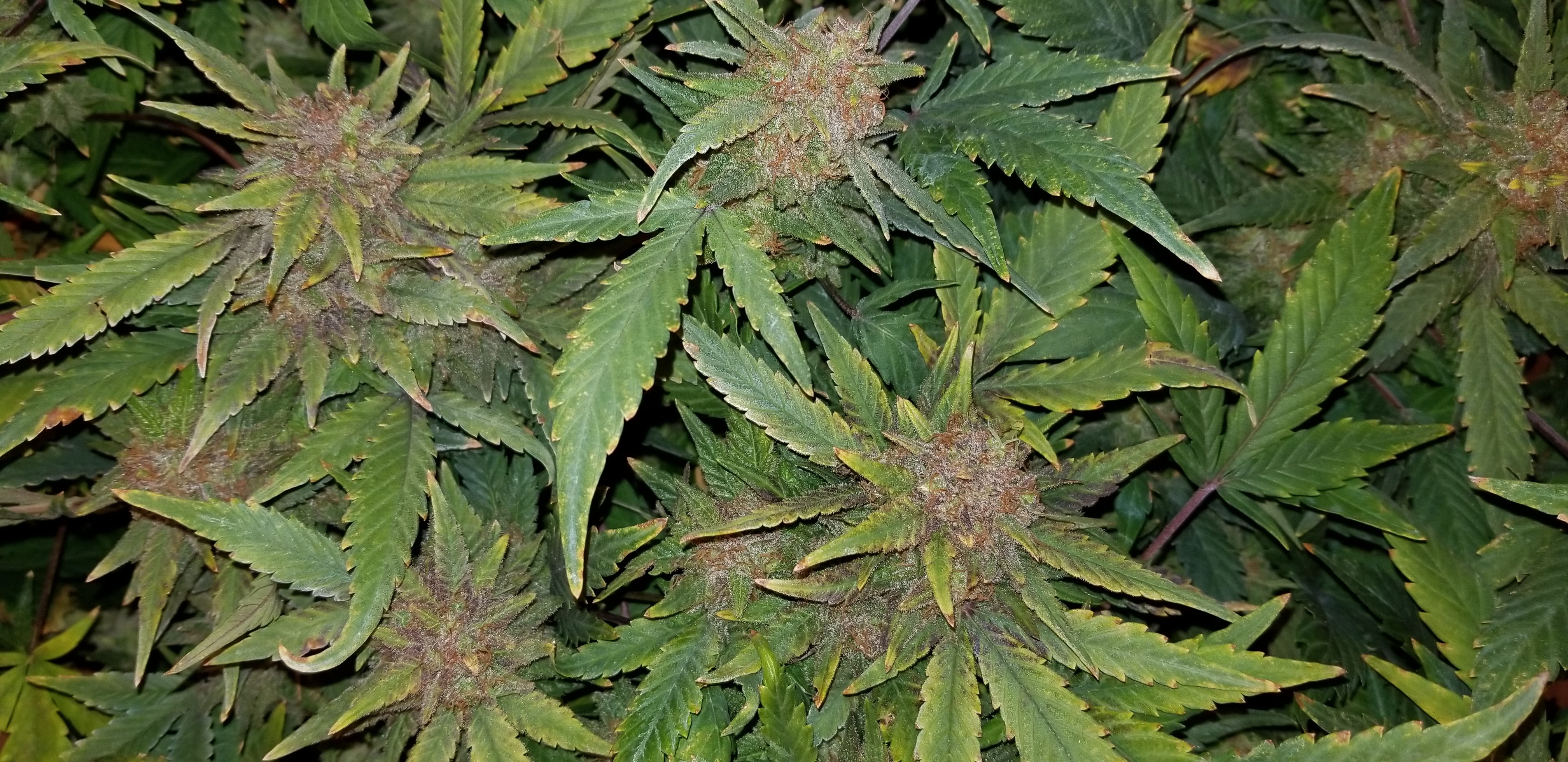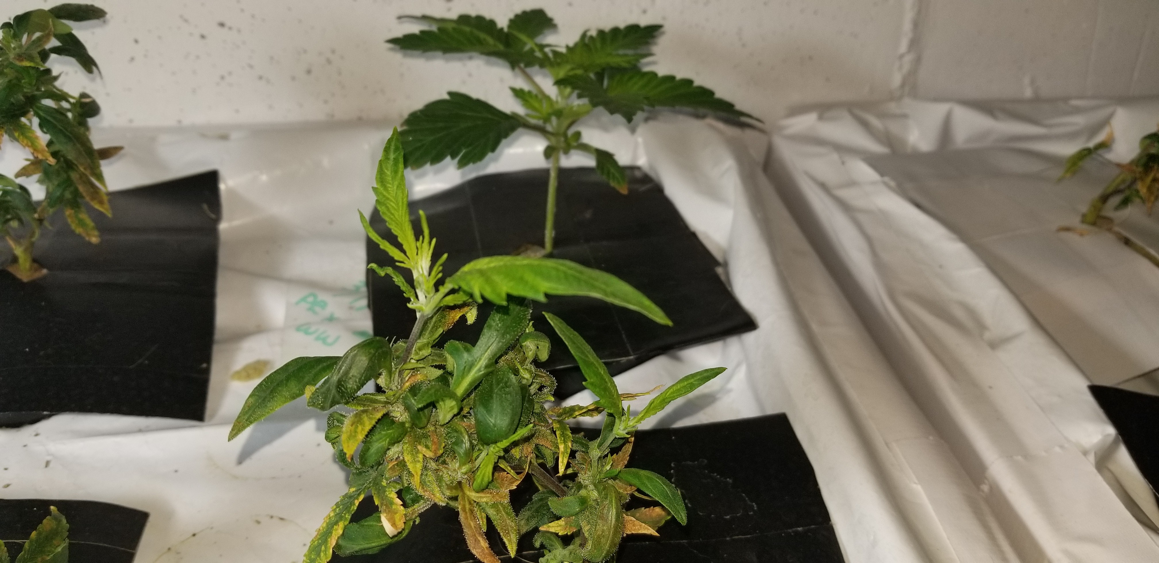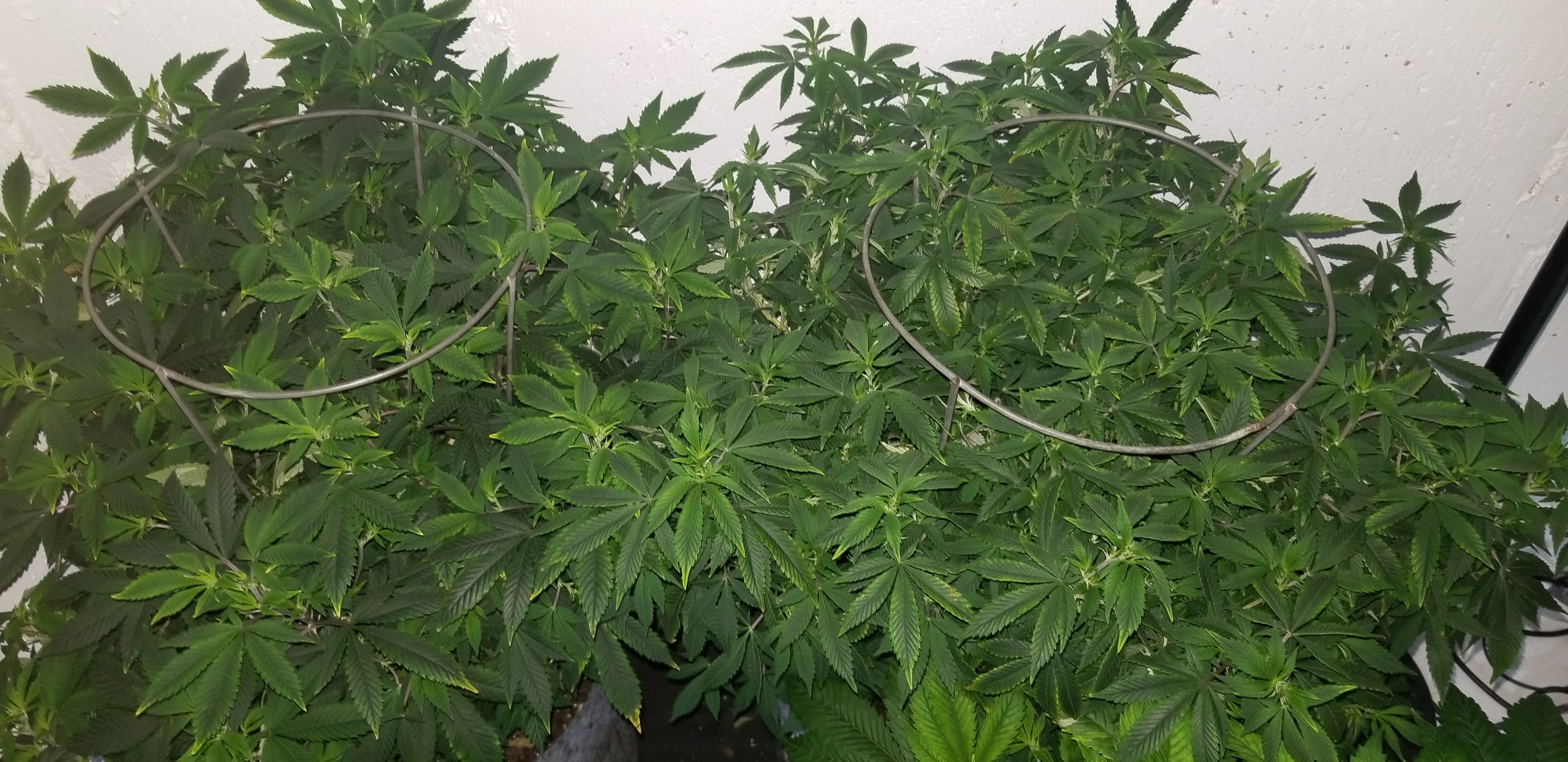 These are coming along, real short and wide Pineapple Express x white widow. They are on the same schedule as my starkiller grow. I'm hoping they turn out better than the last PE cross I did. Got their first dose of real nutes tonight. 1200 EC, pH 5.75, 68/74 temps, 60/70 RH. Room is stable again....