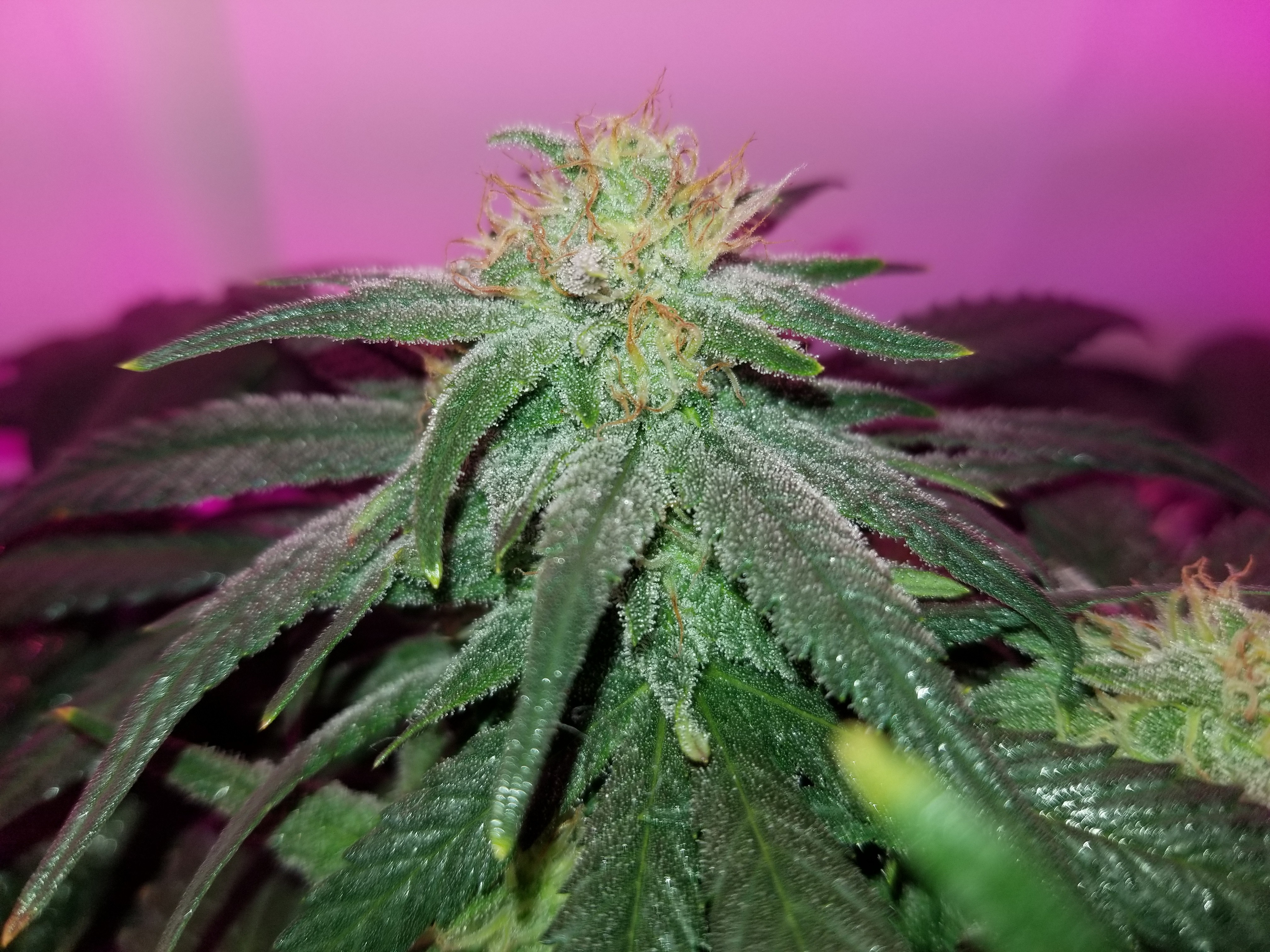 Also took down the tarp to cover the sog grow from the extra six hours of light. Synced the timers. Checked the SoG reservoirs, a little low on the pH for me so back up to 5.8ish they went. So far I can't complain too bad about these galaxy hydro lights, the flowers look pretty good. Could use one more over the area, some of the outsides are suffering a bit.