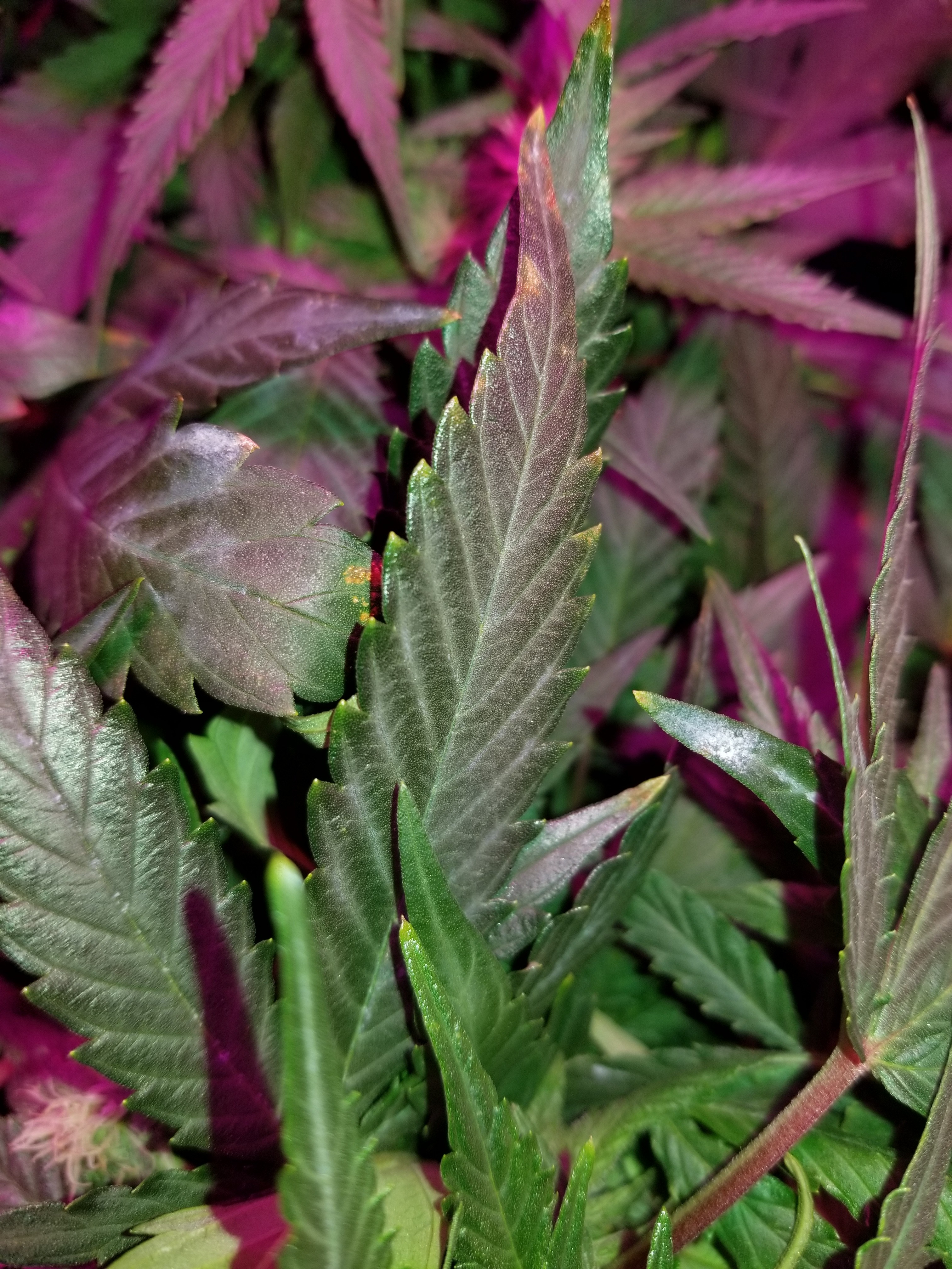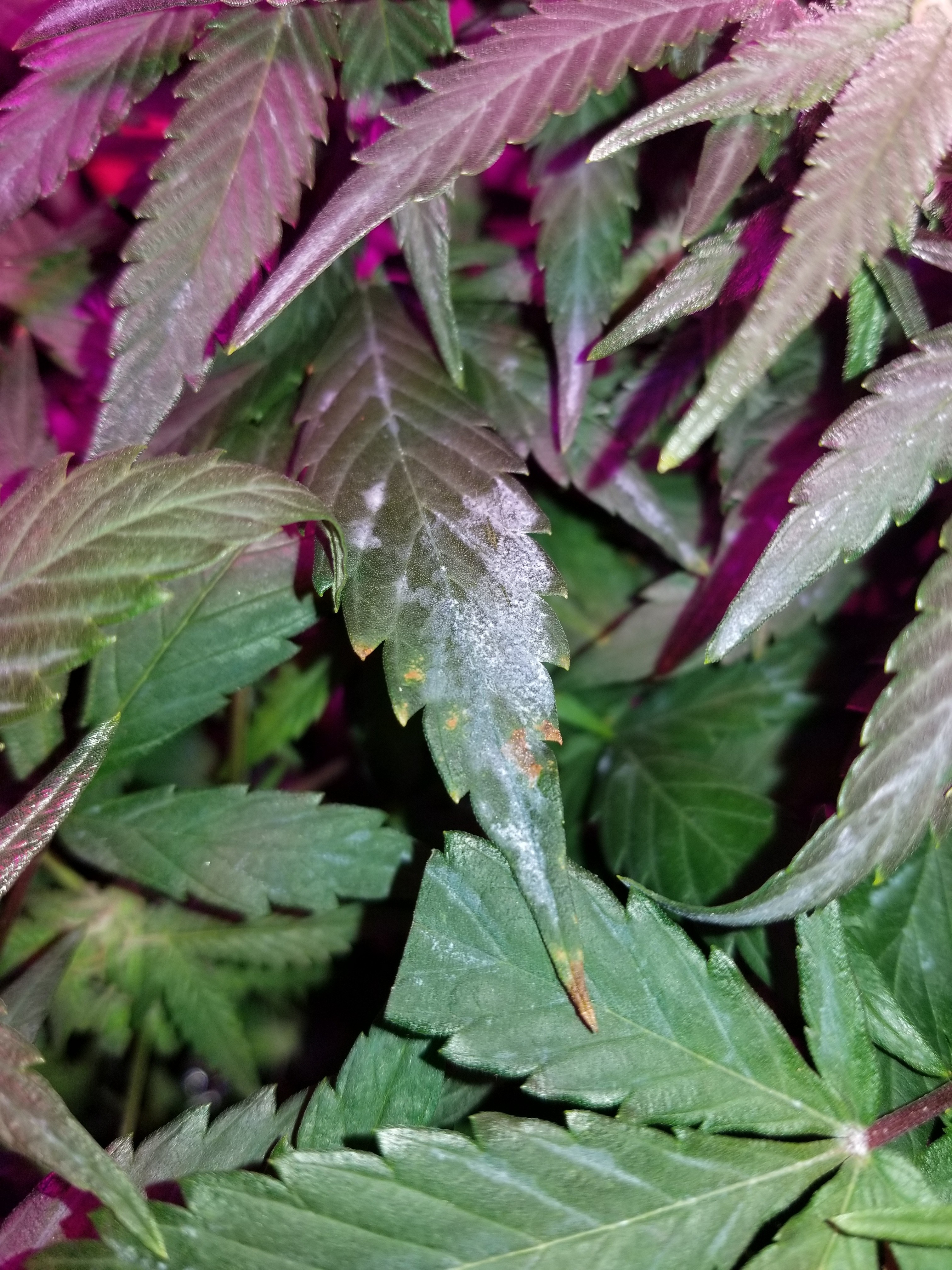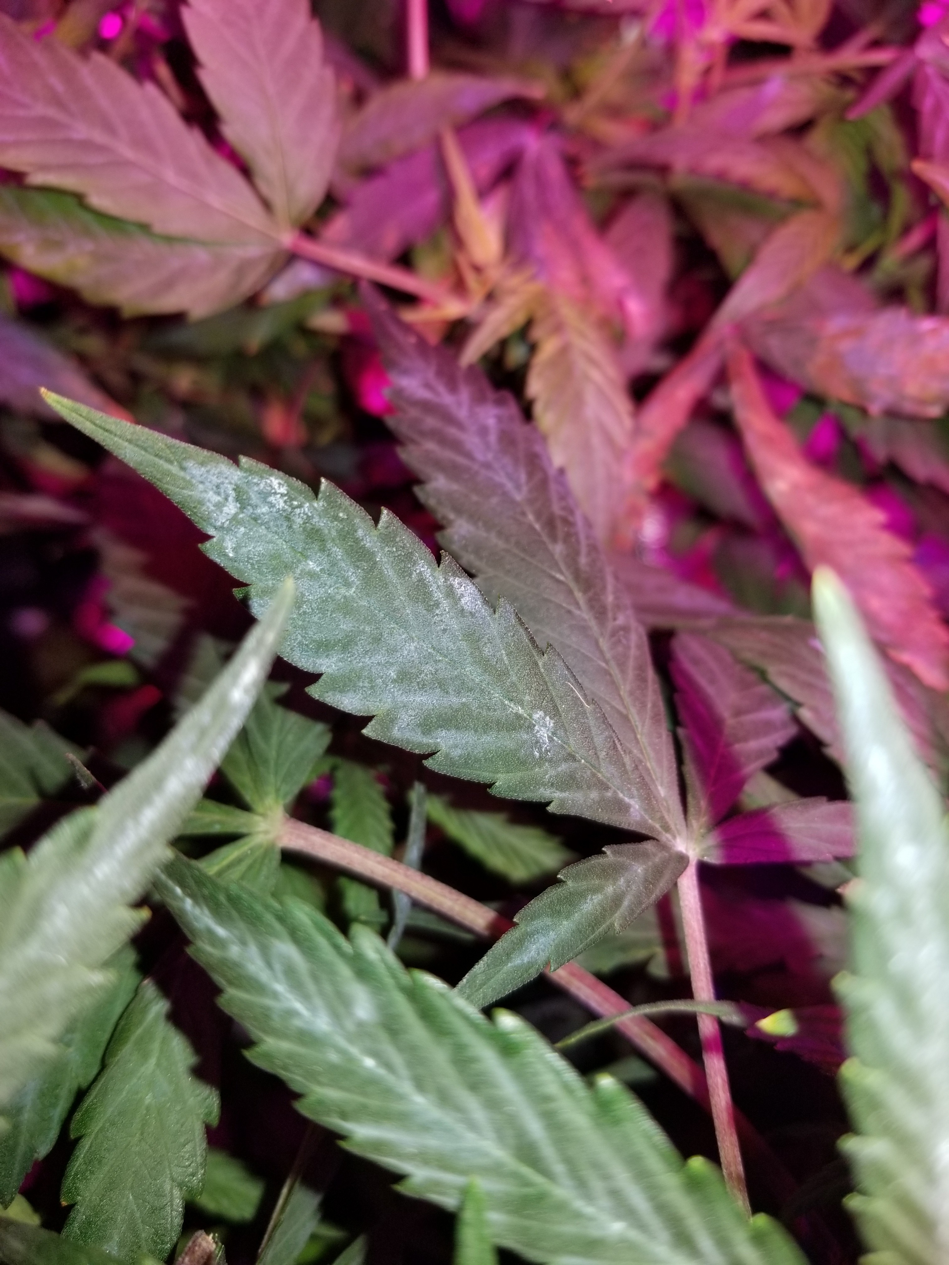 My SoG is not doing well at the moment. I think I have WPM. If it's not then it's residue from the foliar regiment I'm using for the first six weeks. It's not fuzzy or powdery, yet...I have cleaned up some leaves and removed others. There's always a fan blowing on them so that hasn't changed. Started spraying them with a sm-90 solution but it still seems to be sticking around. Also layed off the foliar.