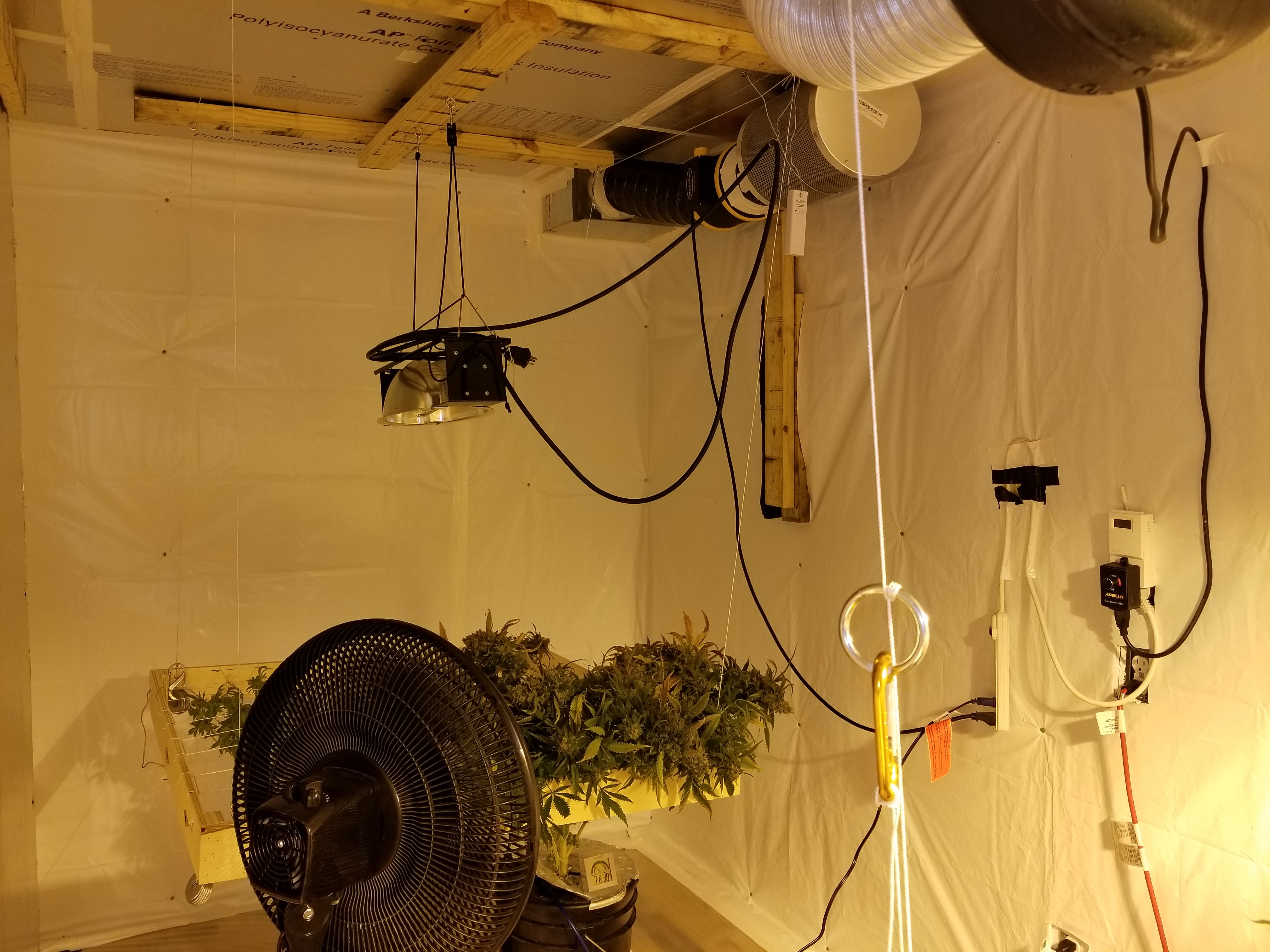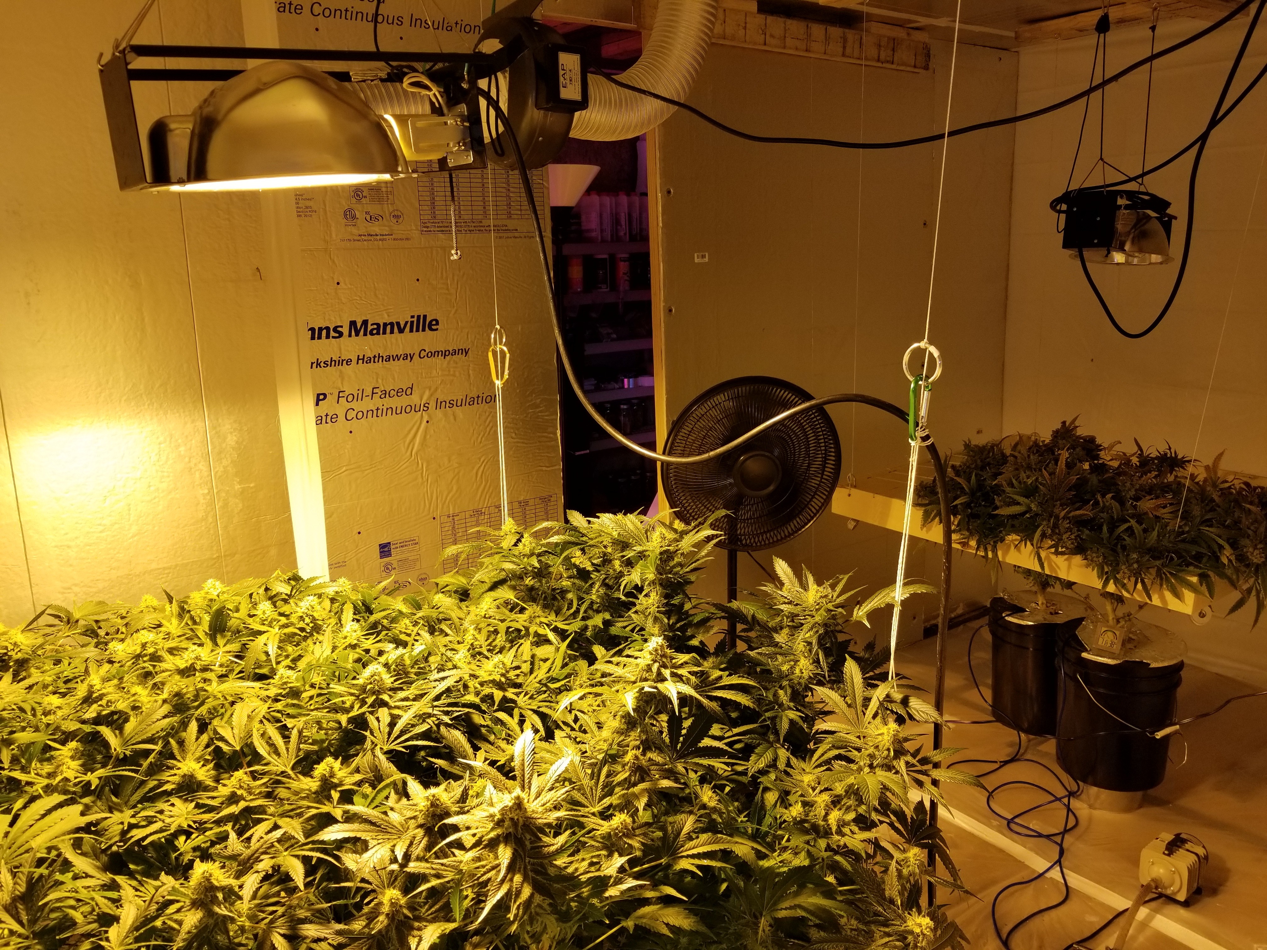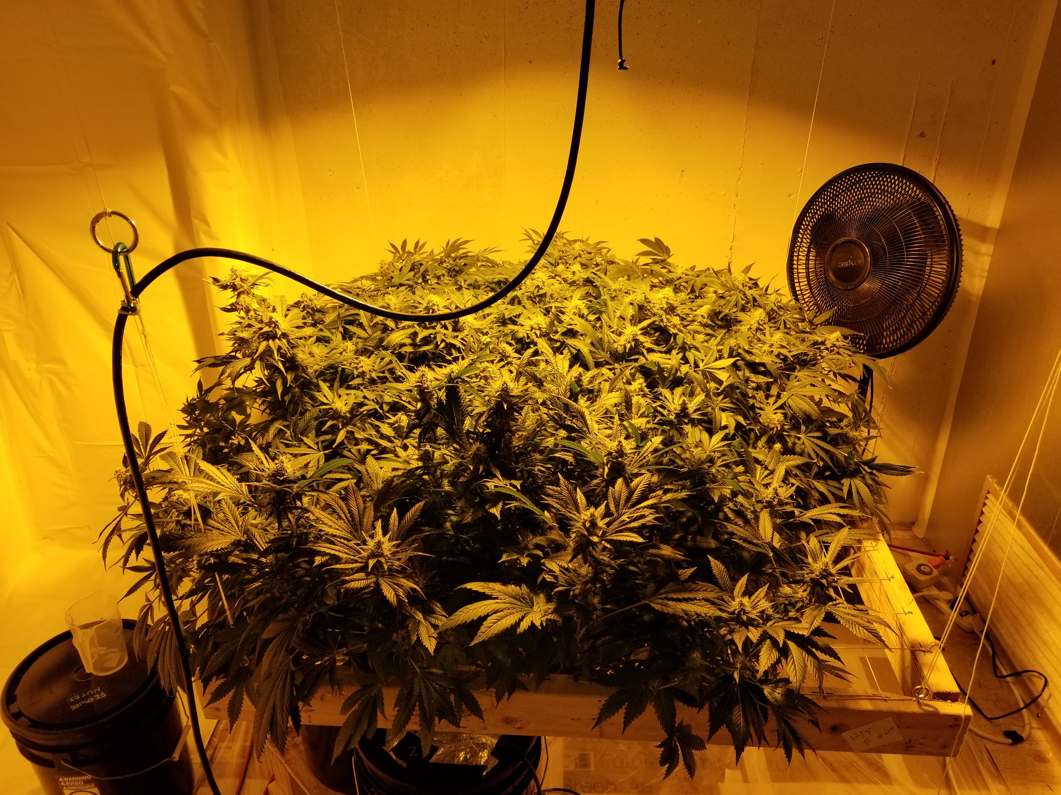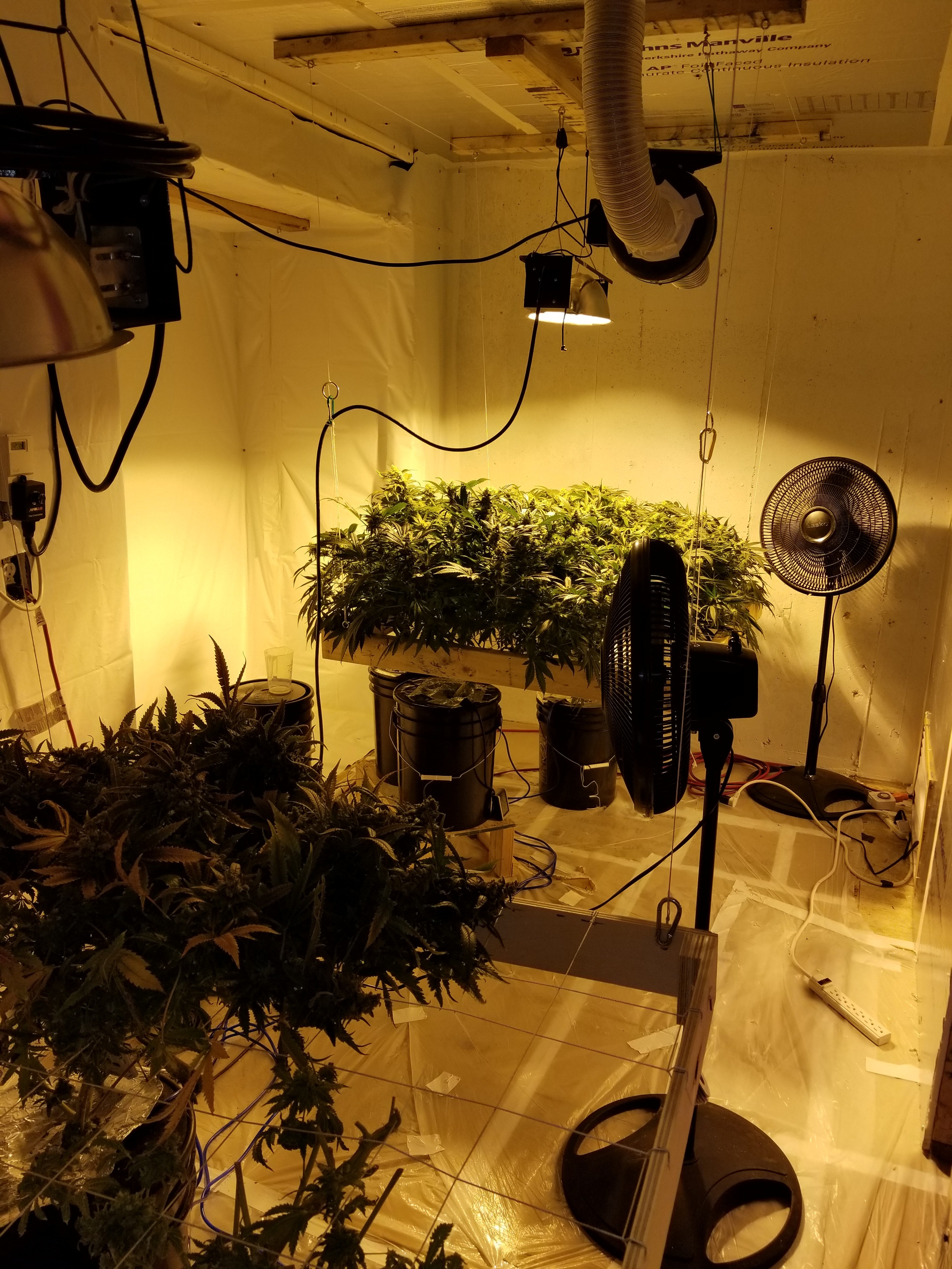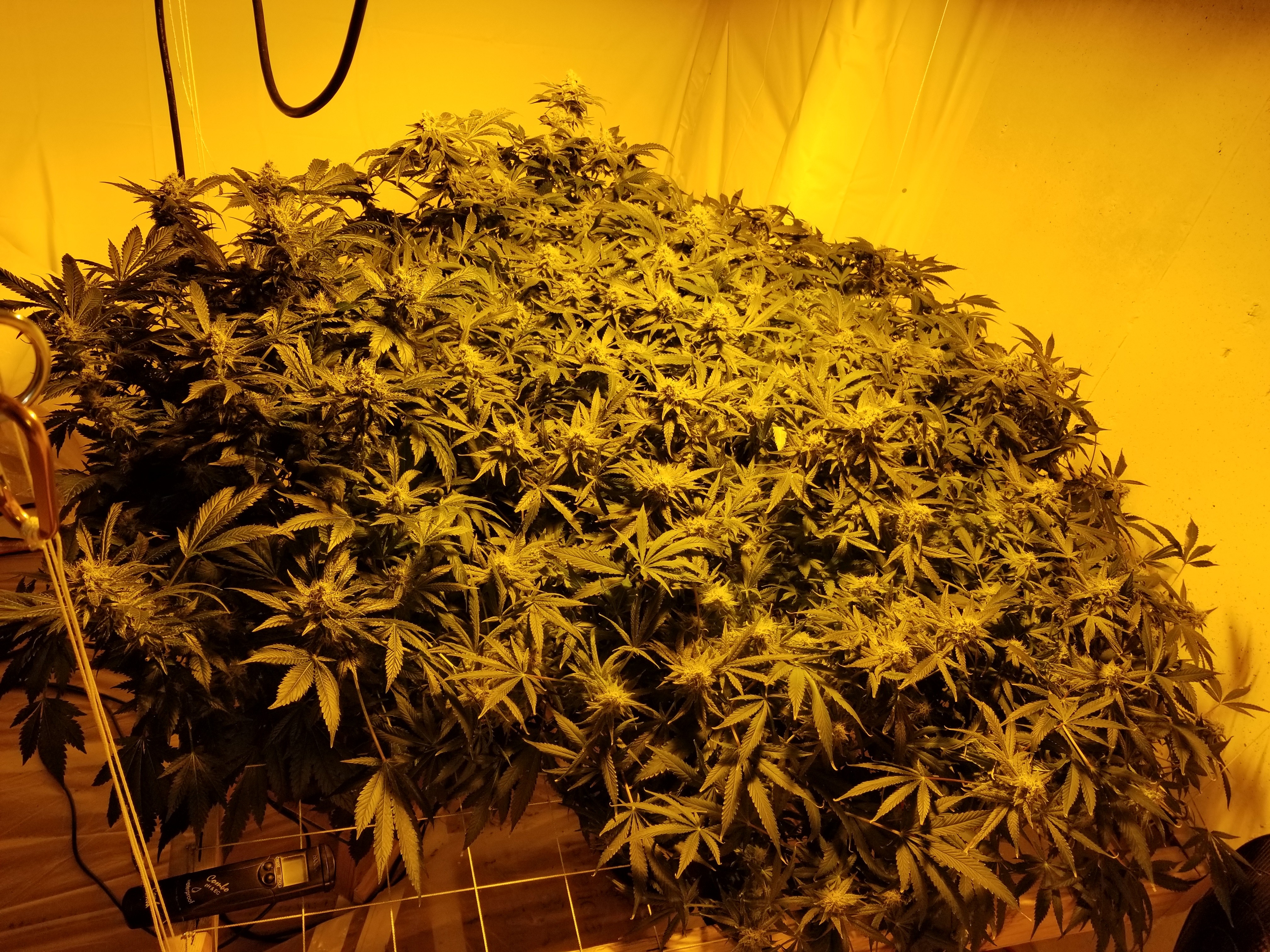 I have two more runs with this particular strain left. One seven weeks in flower. Three more along with three bubblewarp that are huge. Going to flower them all at once. They've been topped once but have just let them grow for the most part. I will probably try a major defoliation on them and put them under the net and spread the mains out. A little LST a few weeks before I flip to help with the spread.