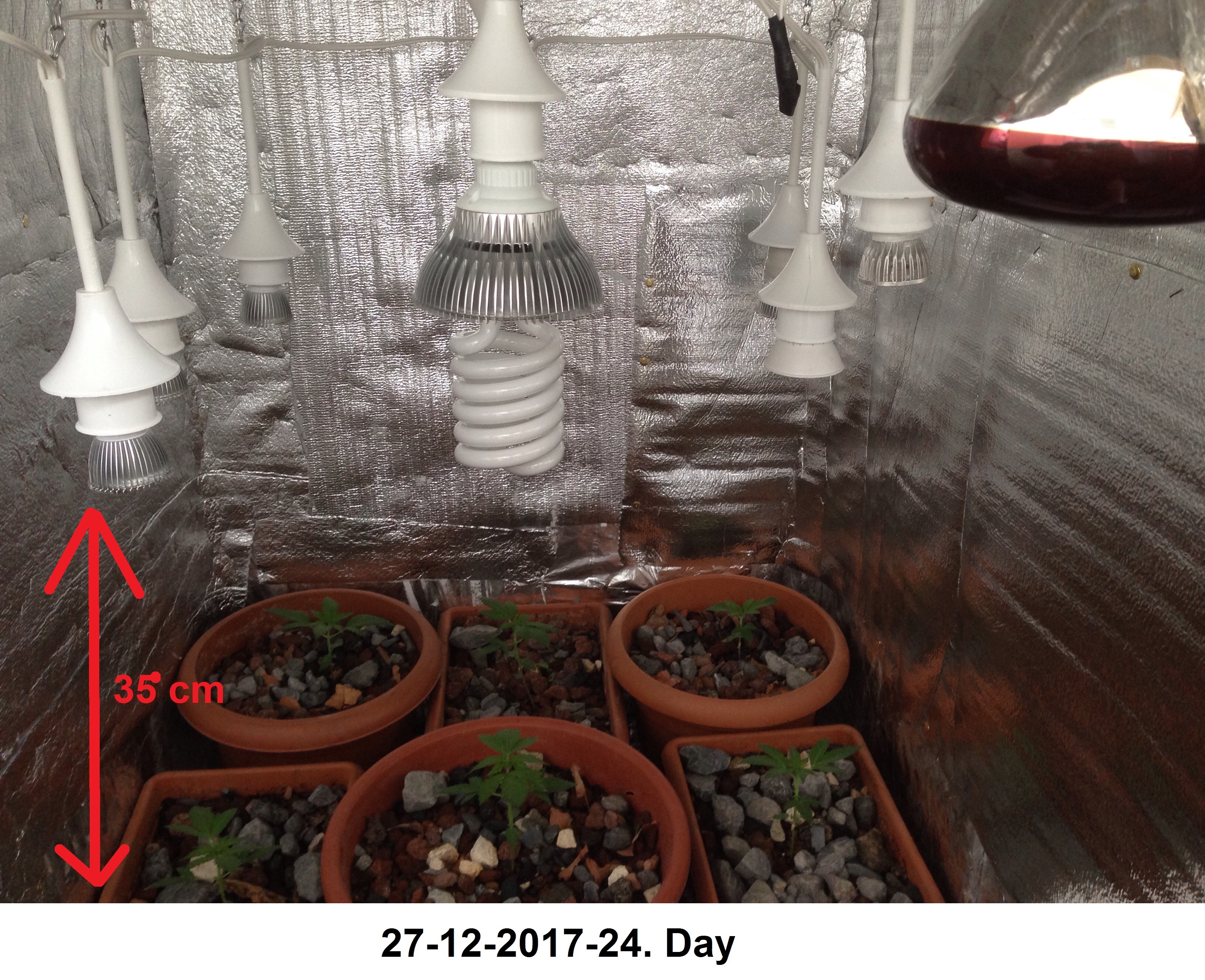 Also there is 150W infrared heat lamb which has turning on in 8 Hours Dark Time period, my grow room is in my balcony and the outside temperature is D 9/ N 4 C - D 48 / N 39 F . I will replace it with ceramic bulb heater at next week.