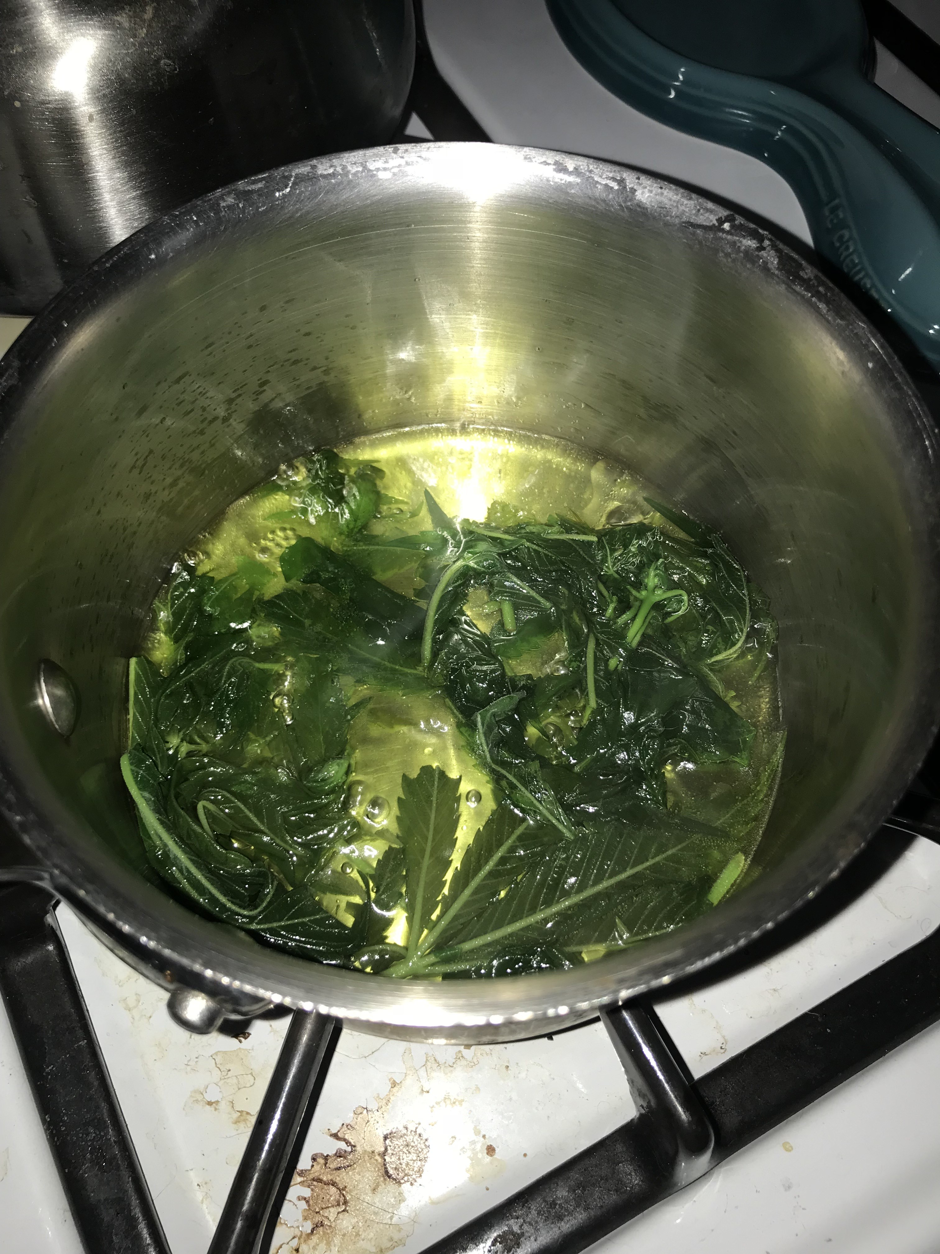 Ok here we go, just consumed my leaves and small buds. About 12-15 leaves and 4 small what would be larfy buds. Took off all the stems, chopped up the leaves and buds. About an 1/8 cup of water, 2tbsp of evoo, pinch of salt, heated on med-low until no water left, about 8 minutes. Literally tastes just like spinach. Will keep this updated on how I feel