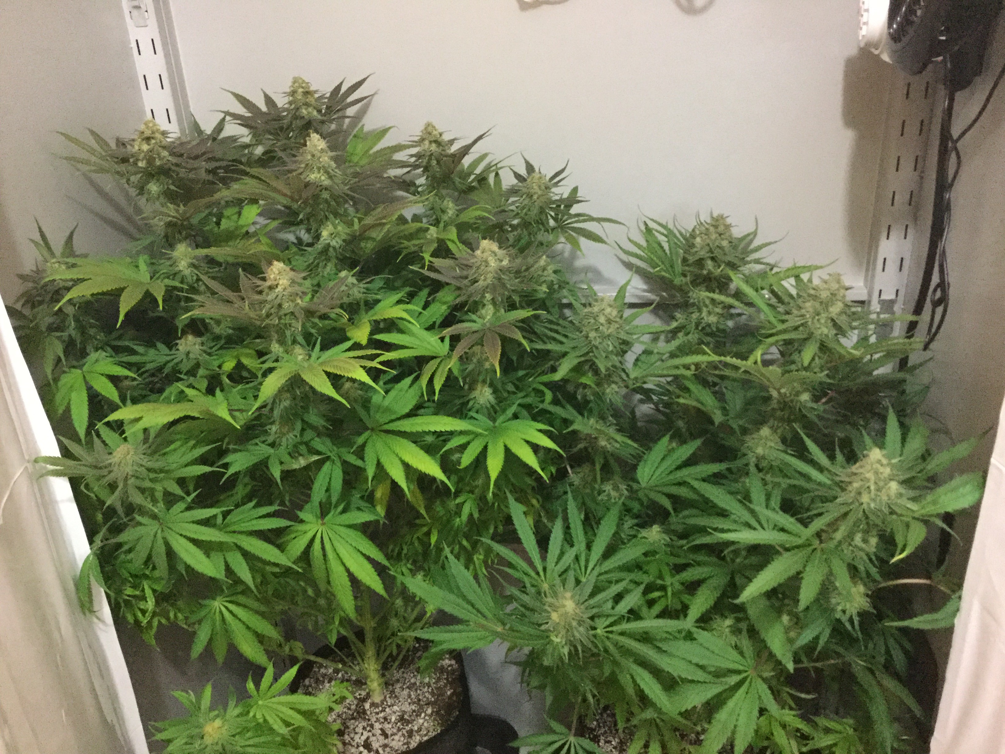 Boy this place is smelling like grapes..... the one on the right D.A.S.S has been giving me guidance on.....the one on the left is exactly 3 weeks behind it... I have another ready in Veg and a couple of seeds of strawberry and pineapple that will be ready for flower once these ladies or done....
