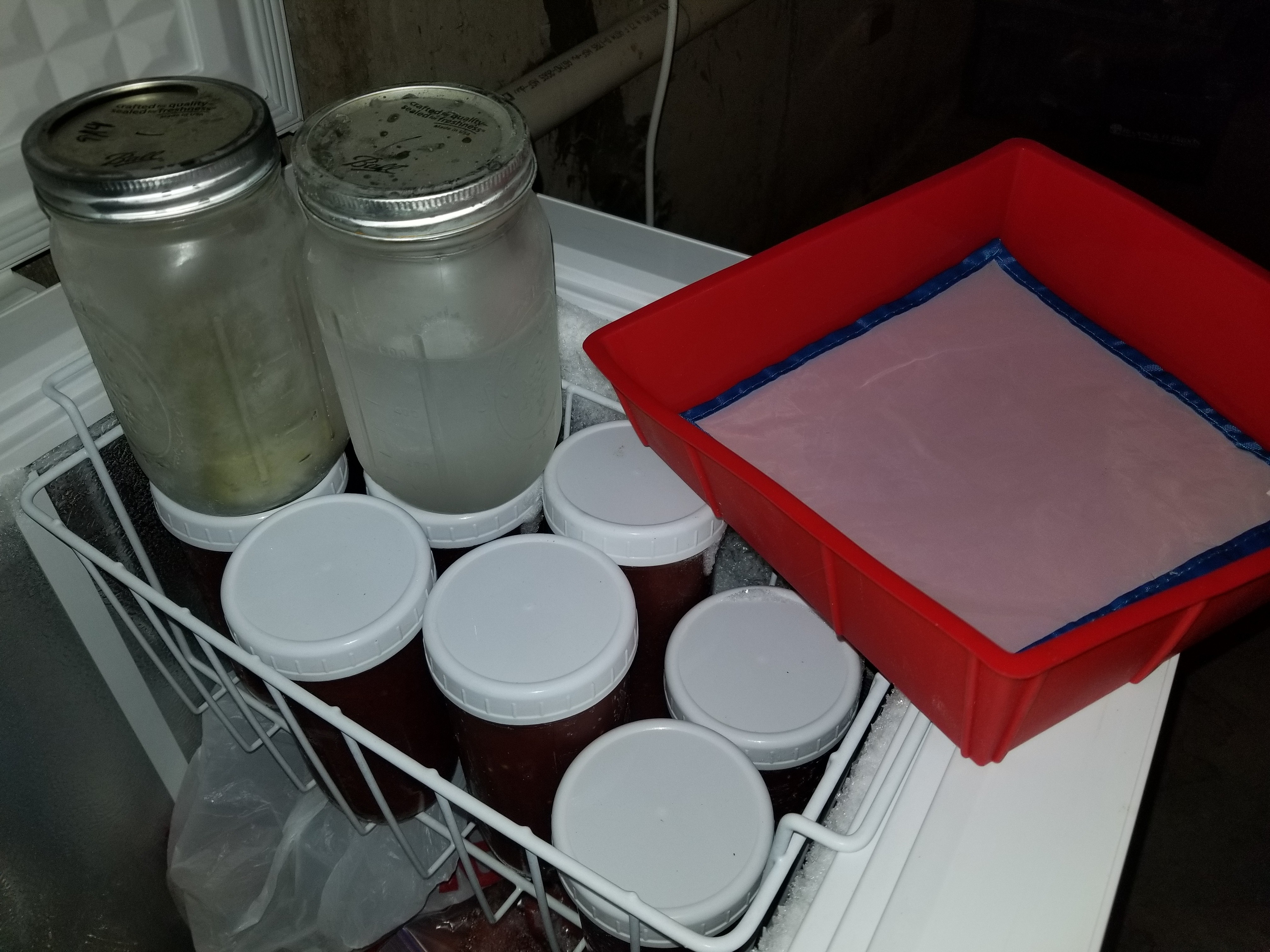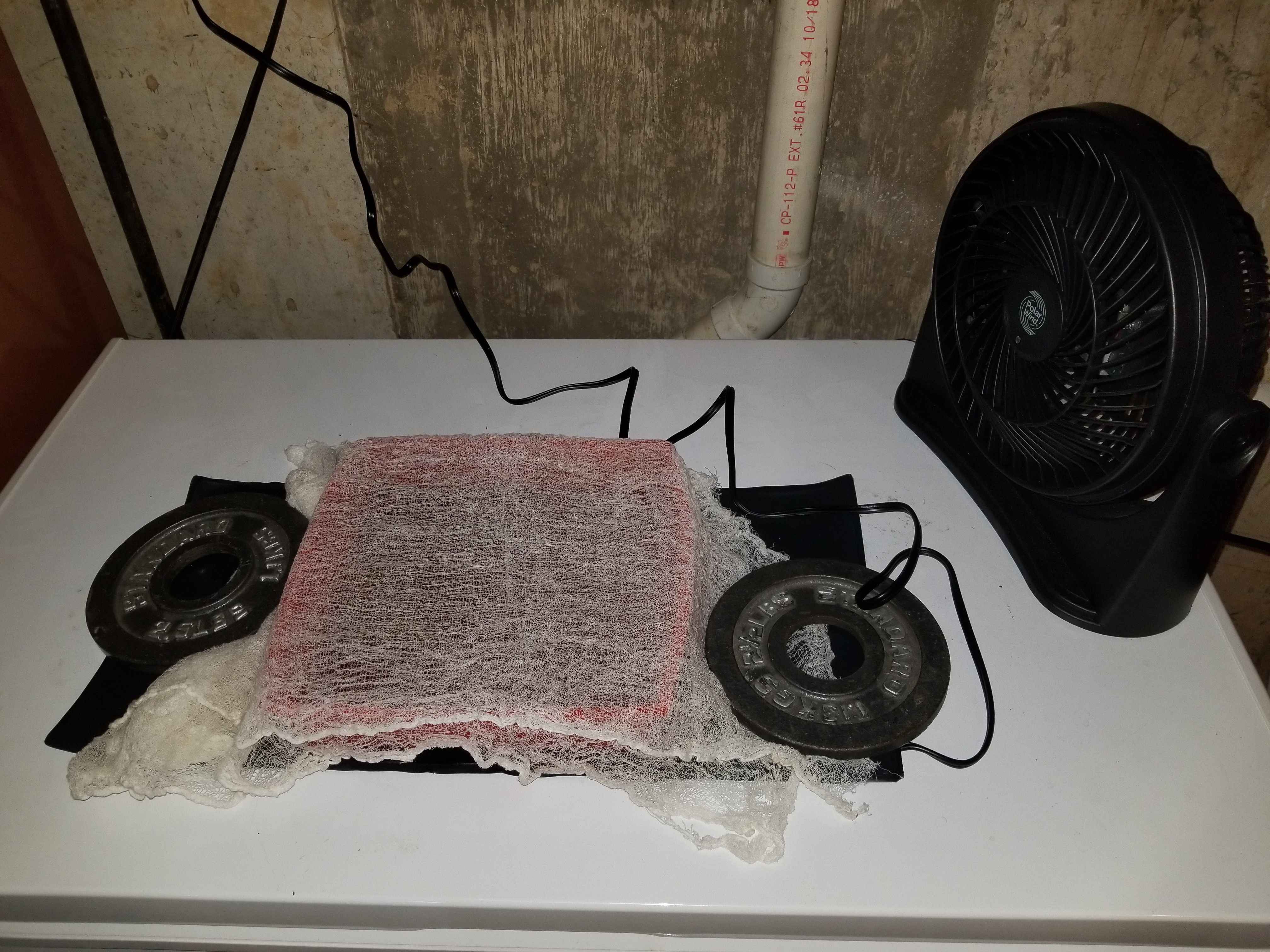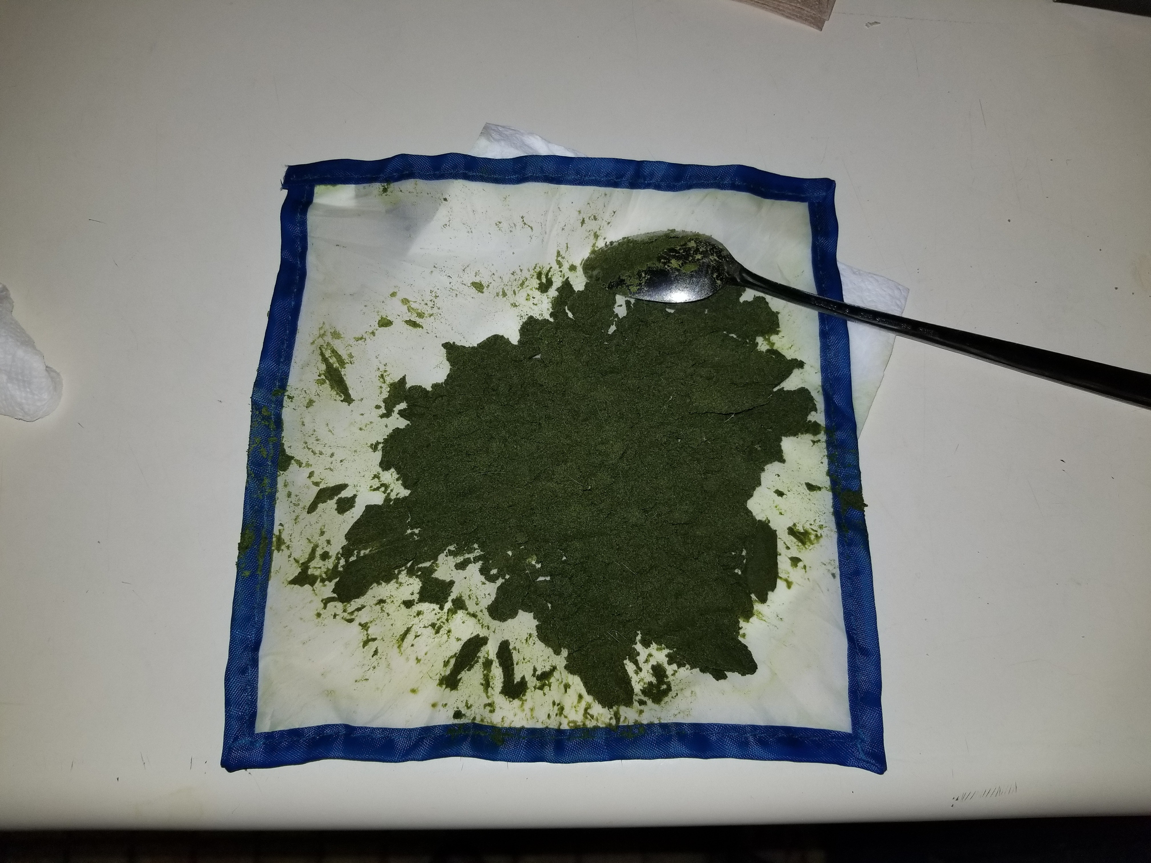 All my stuff came and I got to it right after work. I tried to work in the freezer as much as possible. First had to rig up my screen (25 micron) in my funnel, used two pinch clips for paper to hold it in place. Put on latex gloves then an insulated glove on the shaking hand. Poured the iso into the hash jar and shook for 25 seconds. Put funnel on iso jar. Poured as much as I could without going over screen. One problem I see so far is, although the plant matter won't go through the screen it is fine enough that it slows the draining process down......alot. so I took a spoon and stirred the goop around so it can drain. Did this until I finished the jar and closed the freezer lid. Came back 20 minutes later and it was basically drained. It has a slight tint of green. Problem two I see is it takes so long to drain I am picking up some chlorophyll. I poured the iso into the clean silicone baking pan, put some cheese cloth over it for dust, plugged in the seed mat, and put the fan on low blowing over the pan.