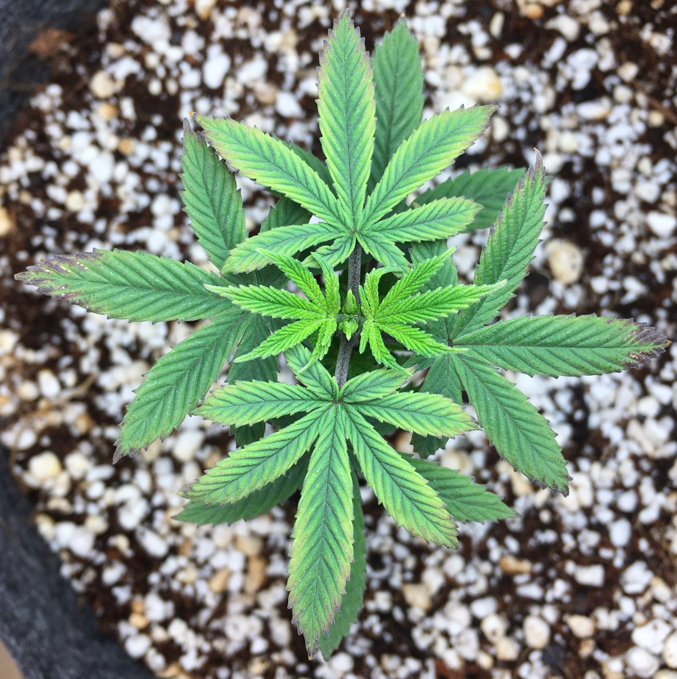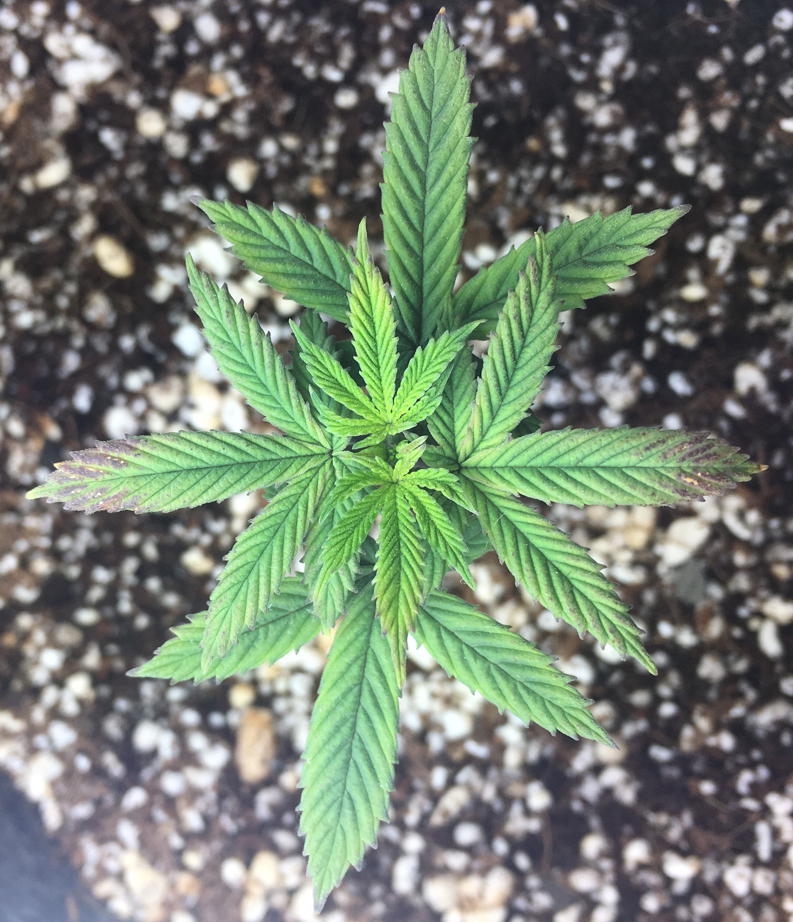 The soil I'm using is (as I later found out) definitely not ideal for growing cannabis: I used Miracle-Gro soil specialized for succulents, cacti, and citrus plants. It was what I had available within an arm's reach, and as an eager beginner I neglected to do my homework ahead of time. The soil has decent drainage and a reasonable NPK ratio of 6:4:2, but it also contains slow-releasing nutrients which led me to have to flush the soil on two different occasions. I also have not begun to monitor my soil pH yet, but I plan to buy a pH testing kit soon.