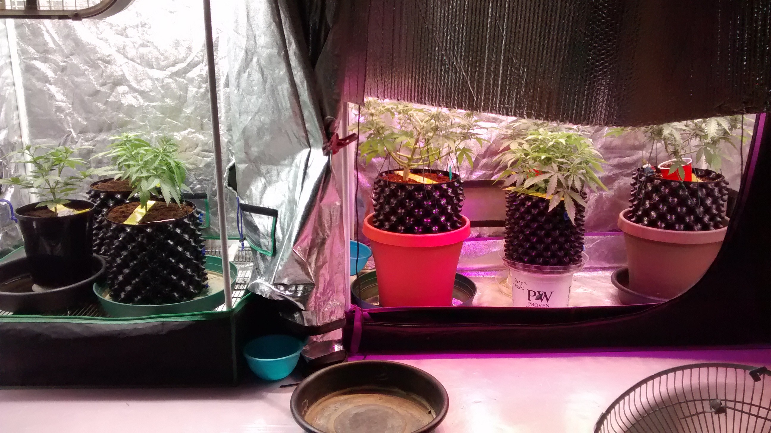 5 Star Killer 1 Terp-n-Pine "manifolds", four 7 gallon, two 5 gallon fabric, super soil, water, molasses, occasional tea or root organics HPK tea (started modified nute program beneficial waterings/amendments (no bottles) at week 3