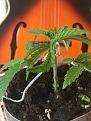 The guy came and left in about five minutes the plants were in the dark for about two hours. Before he came And after I have been a busy boy as I had to move furniture and change the set up in the living room so I wouldn’t bring attention to the T5 deck underneath my wine bar incubator LOL . So before he came I lollipoped all 4 plants. Then I put them to bed for a nap. After he left before I moved the furniture back to the way it was I transplanted the three remaining plants into 1 gallon containers with new LOS Living Organic Soil, worm castings and Lobster Compost. When I transplanted them I also had to adjust the light. I’ve got them hanging on Zip ties. I got Rid of the crates and put them inside a rolling drawer that comes in and out easily from underneath the light. I’m going downtown tonight to hear some music so I’m going to leave in about an hour, hopefully all will be well when I get home after midnight.