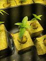 2/27/18​​​​​​ put seed in damp paper towel, in a sandwich bag, then on my router for some heat. A week later and it's ready to be put in a rockwool plug. Plug was soaked in ph'd water, 5.5, with 20 ml of rhizotonic/ gallon. Put it in the dome with the others and now I wait for it to pop it's head out of the plug...