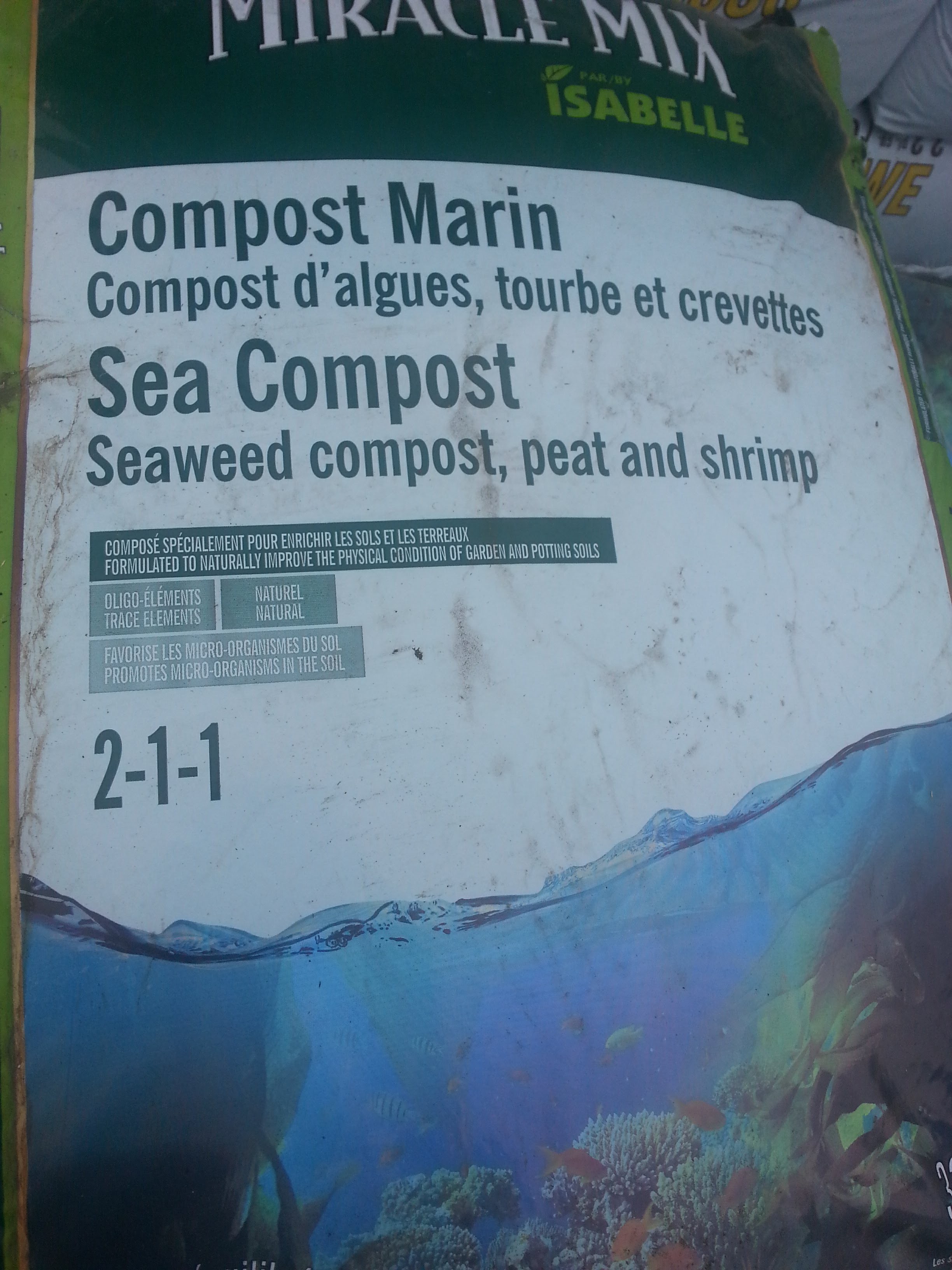 Then I added some compost (~25%), because I make my own by throwing any food leftover in a bin. (That takes time though, around 6 months i'd say, maybe more, maybe less. You need to get the bottom of course. It's even better if that compost is against the ground and not in a bin. Just made a square of cinderblock and threw everything, everyday, in there.)